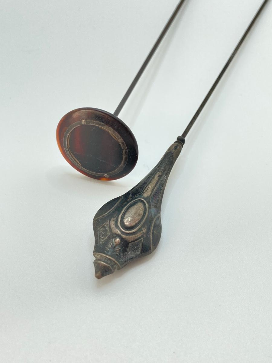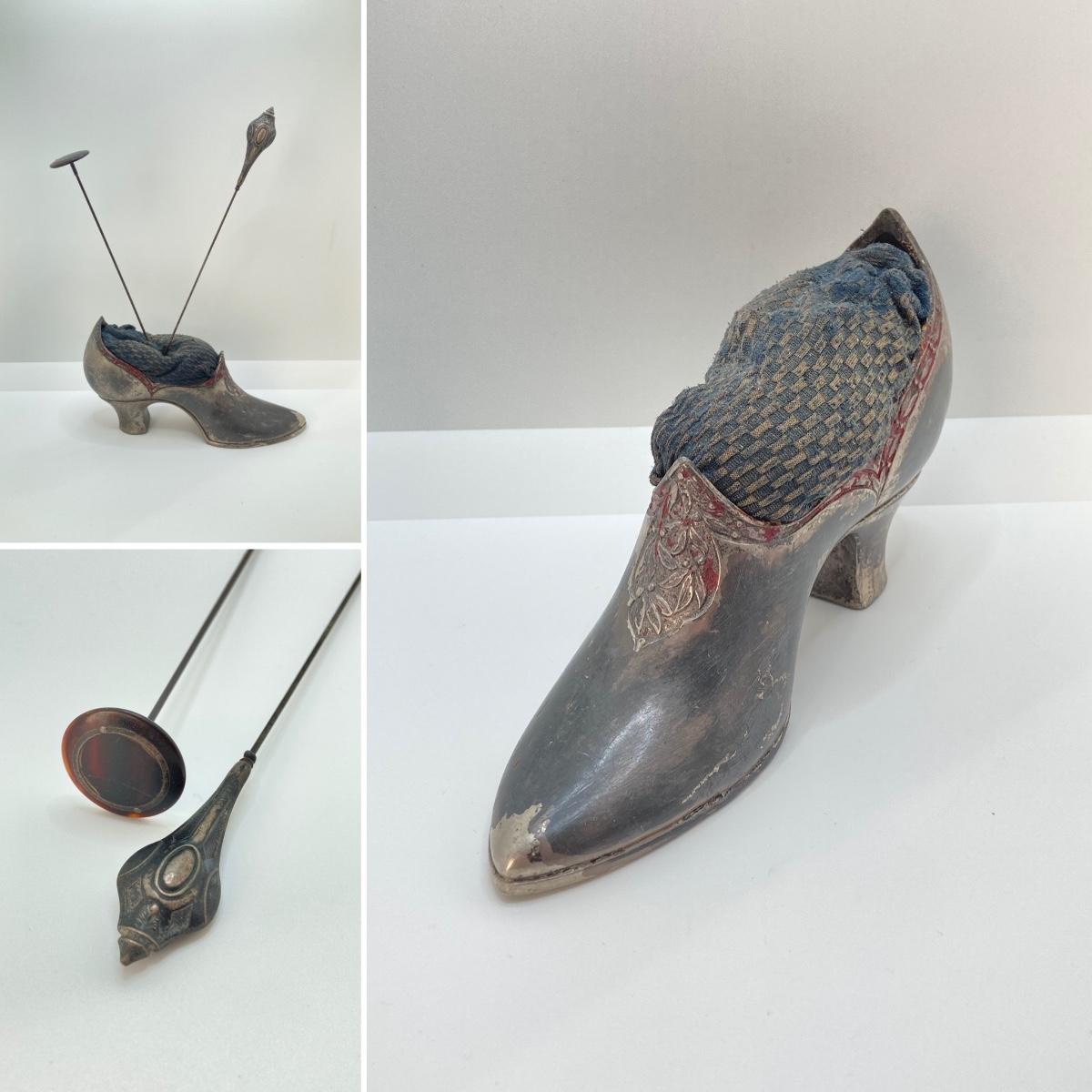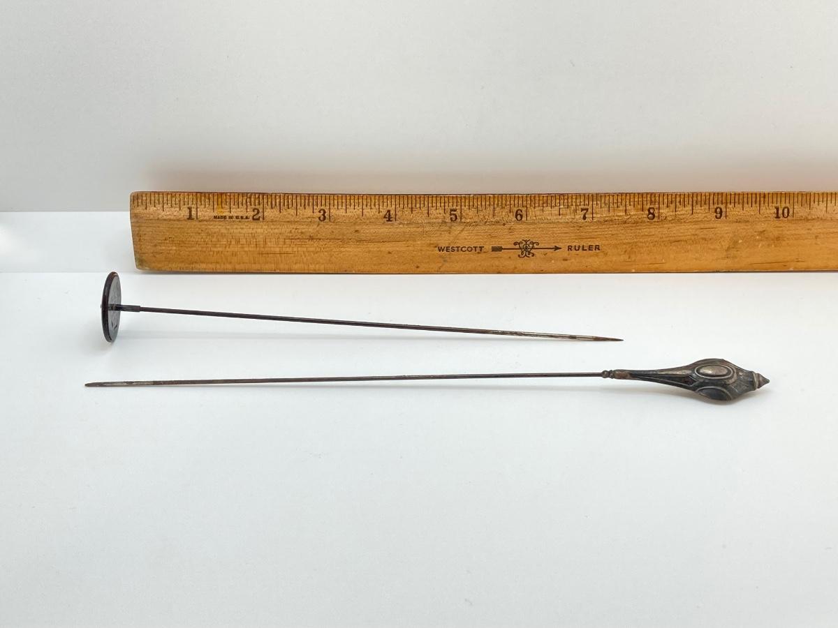 LOT 67: Vintage Sterling Silver Hat Pins & Vintage Silver-Plated Shoe Pin Cushion