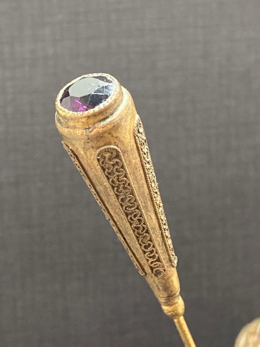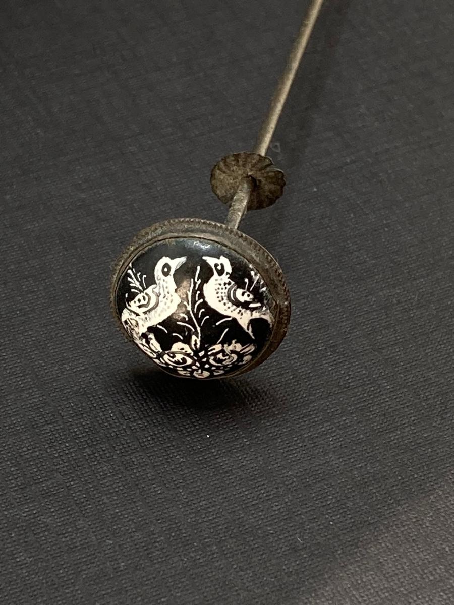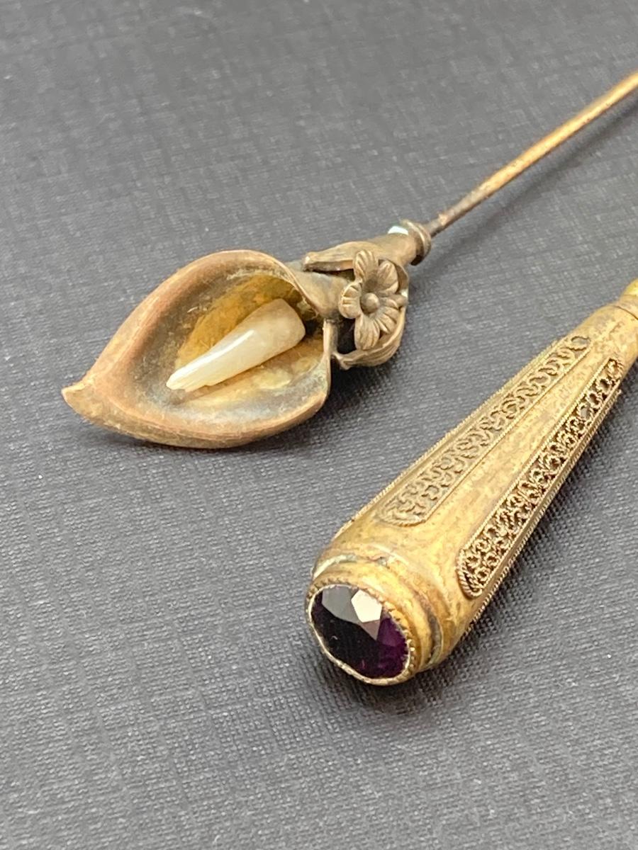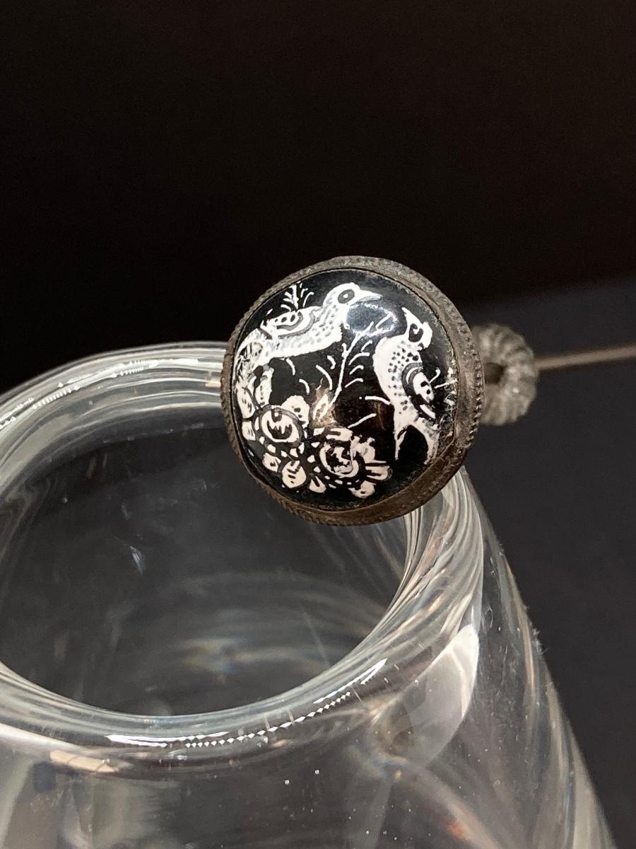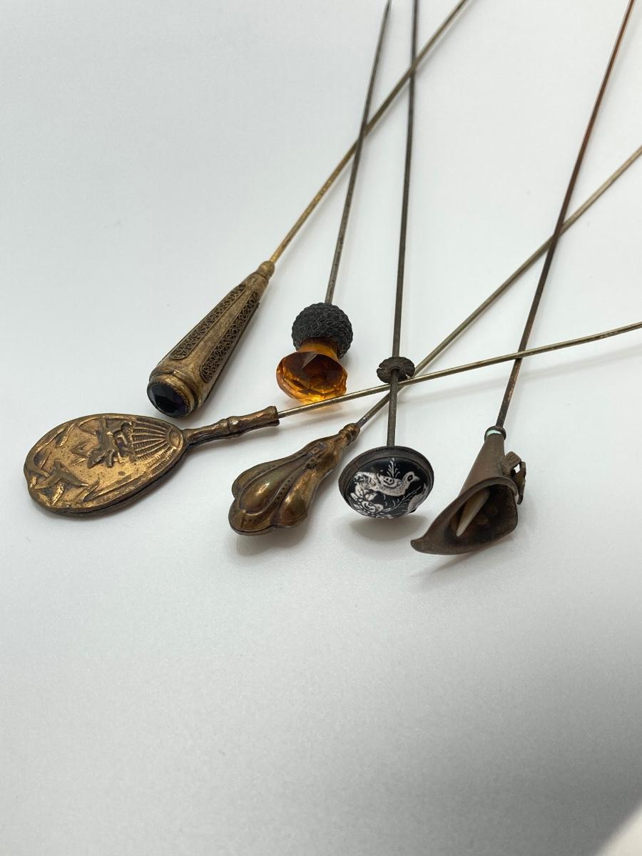 LOT 68: Vintage Hat Pin Collection with Etched Crystal Vase