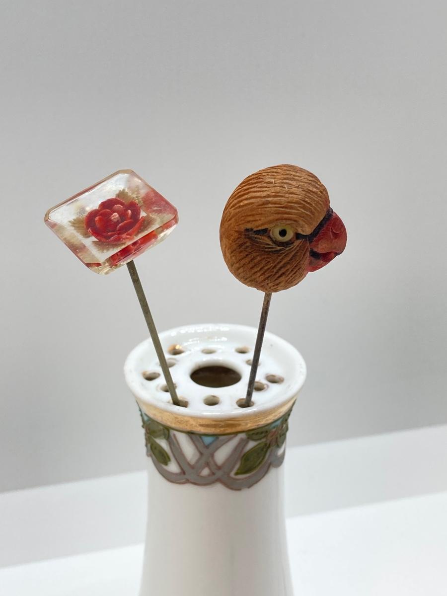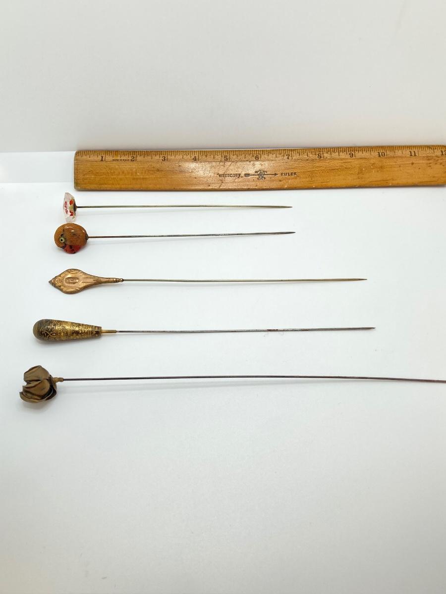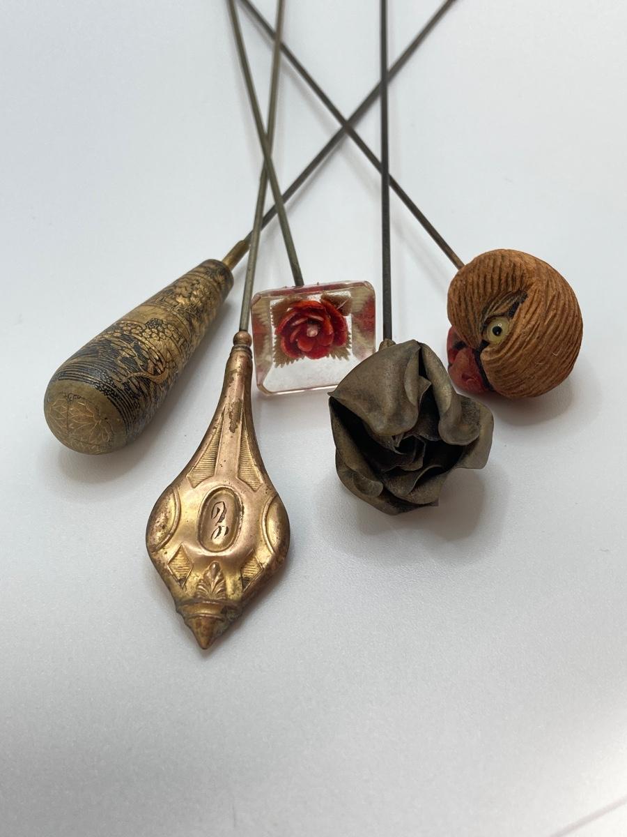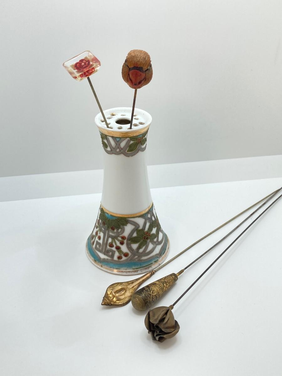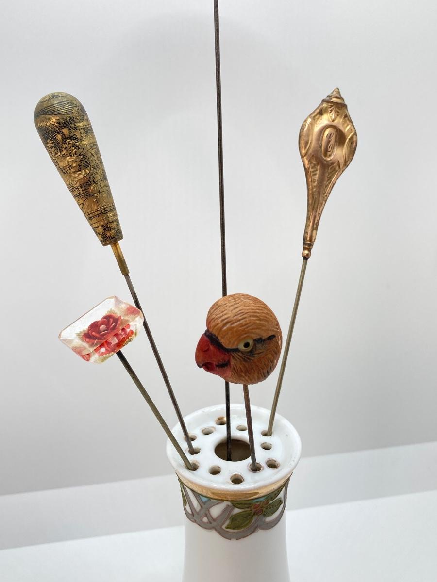 LOT 69: Collection of 5 Vintage Hat Pins & Nippon Hand Painted Hat Pin Holder