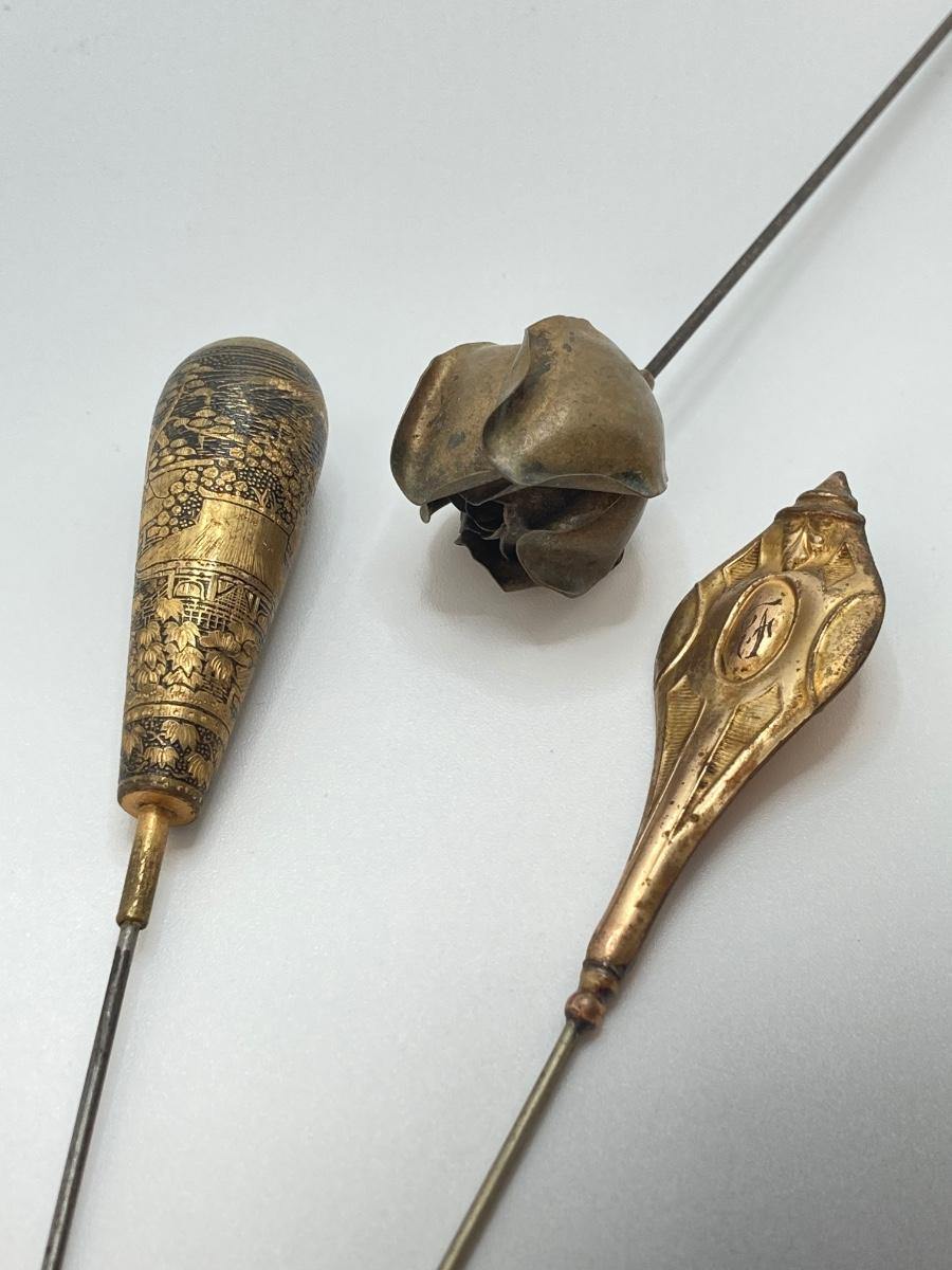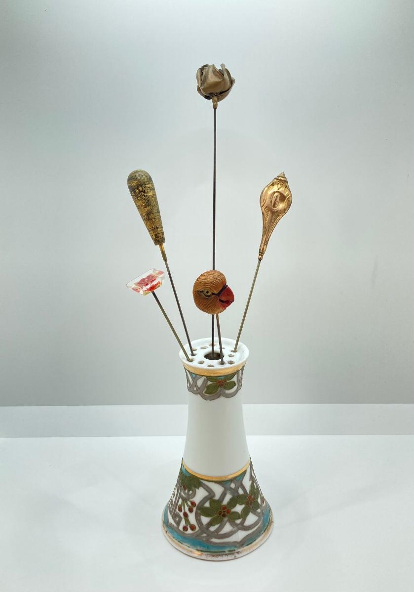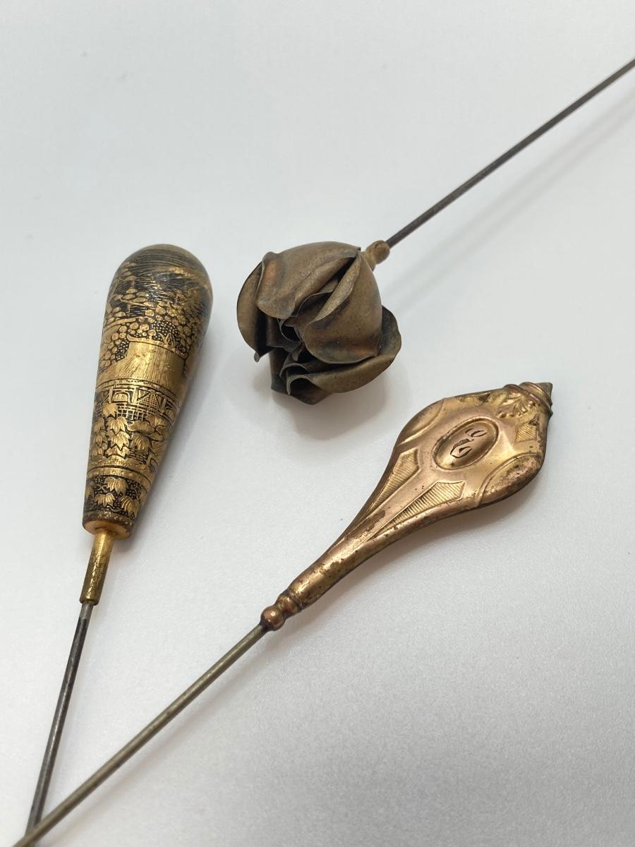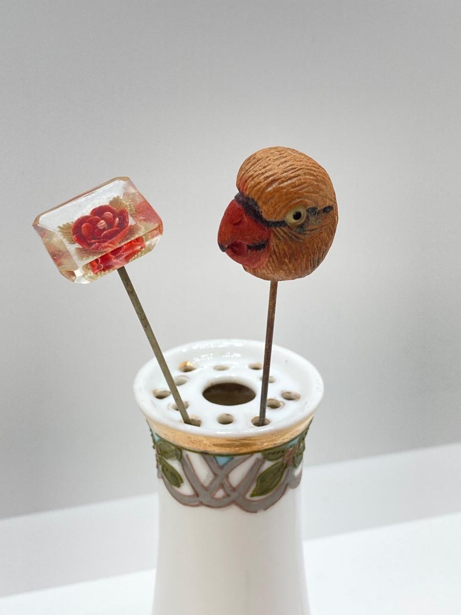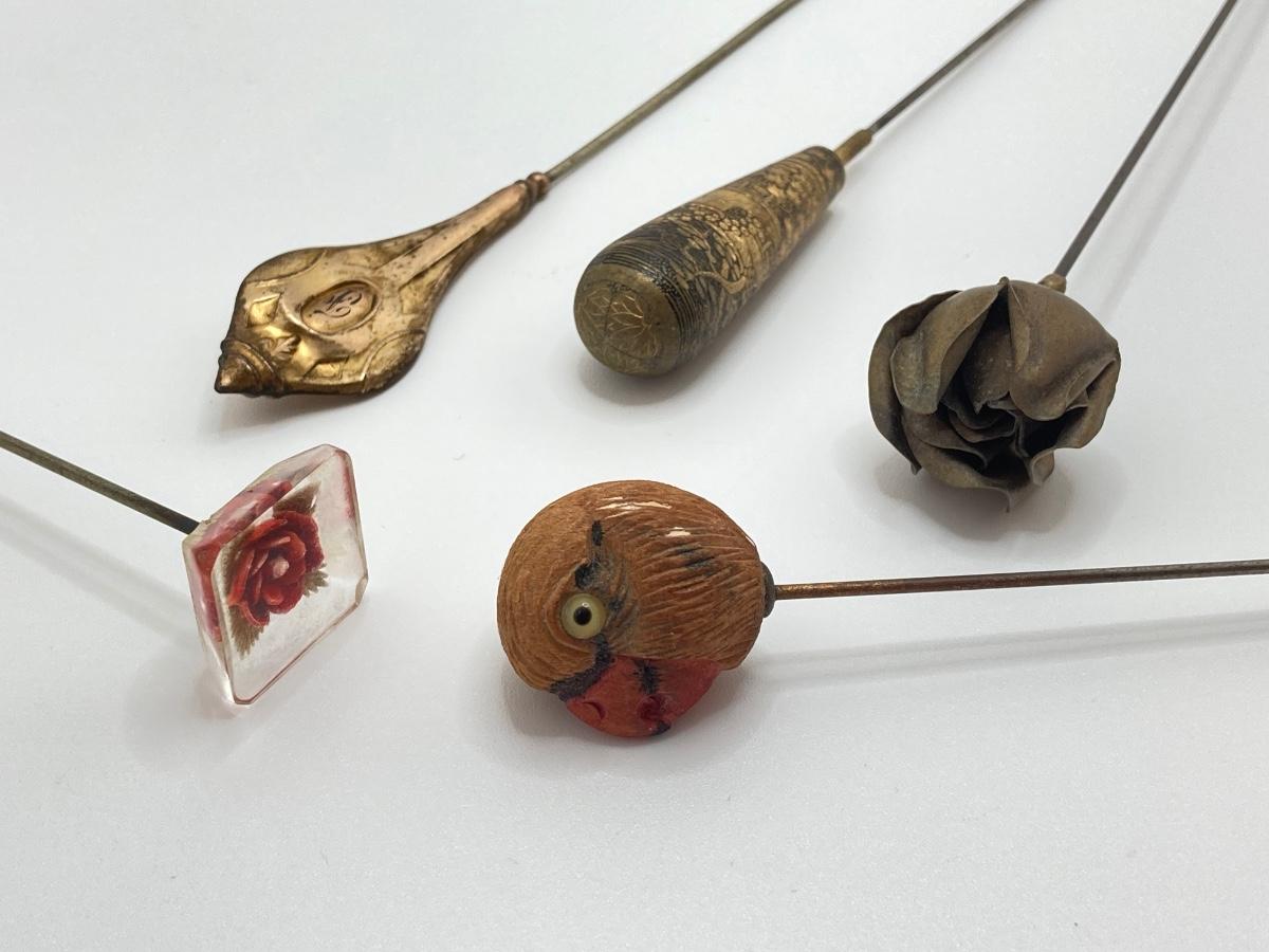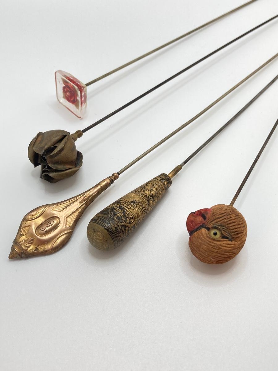 LOT 69: Collection of 5 Vintage Hat Pins & Nippon Hand Painted Hat Pin Holder