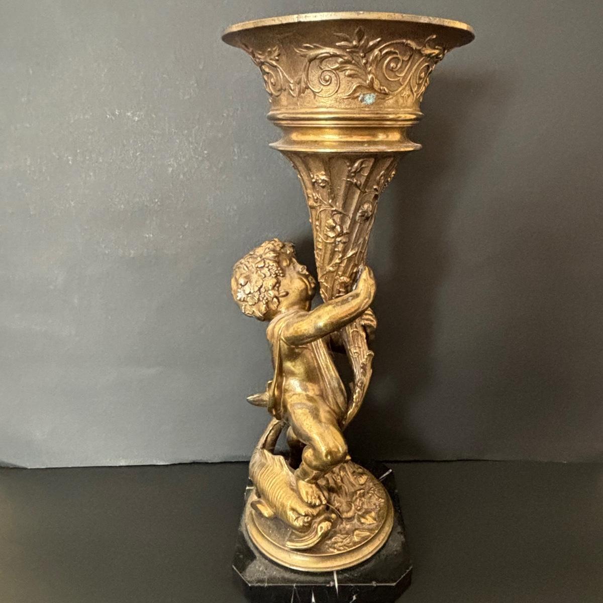 LOT 82: Vintage Bronze Planter/Vase Statue on Marble Base