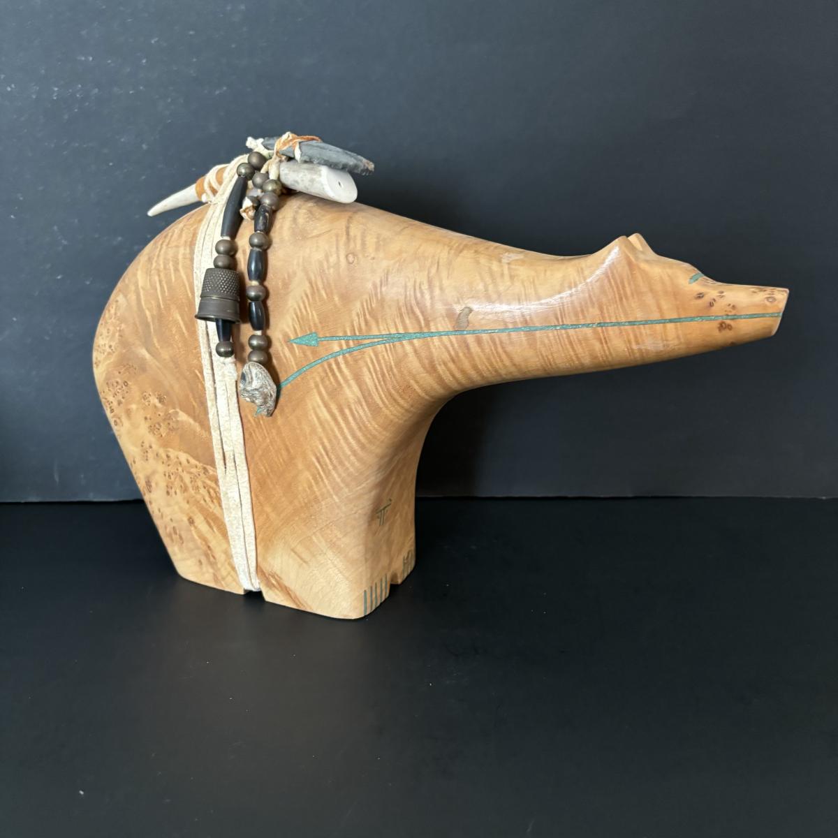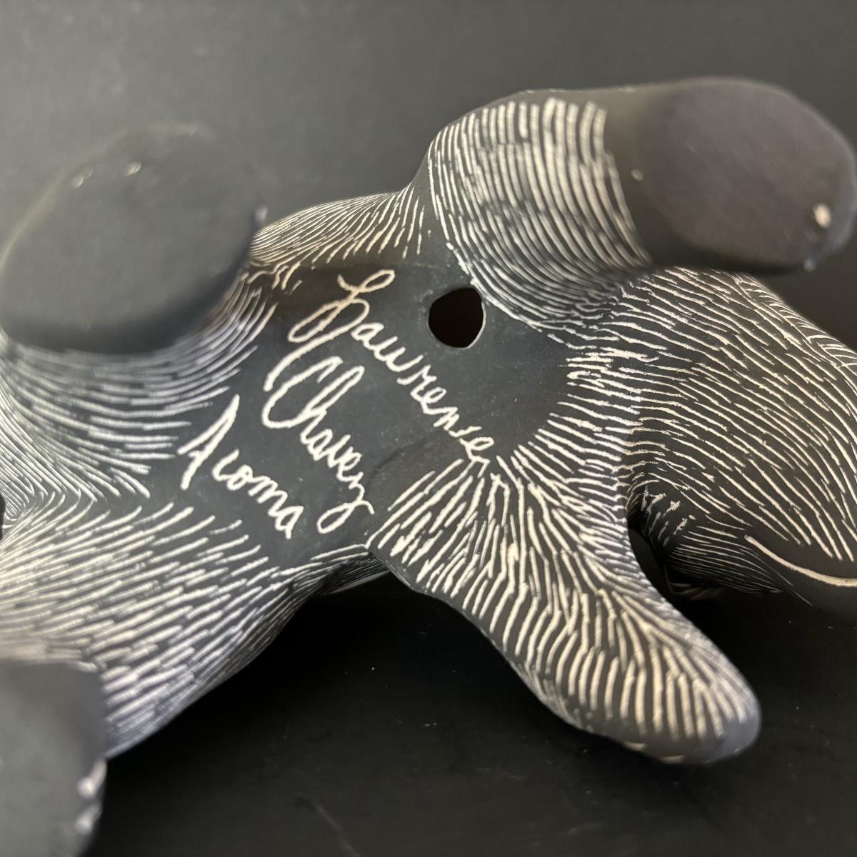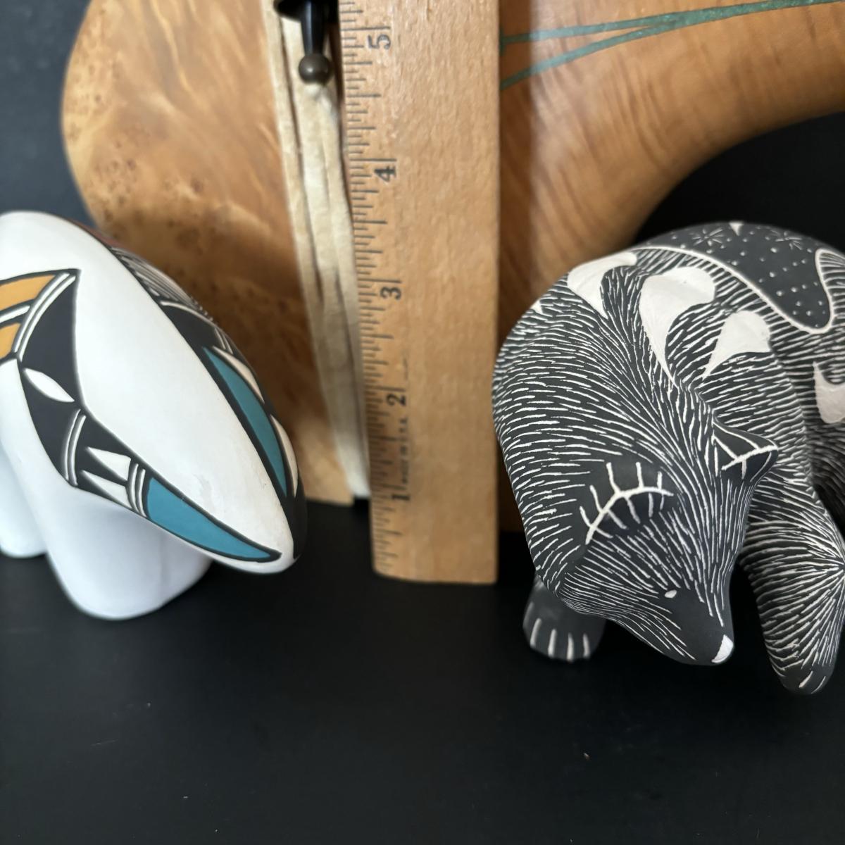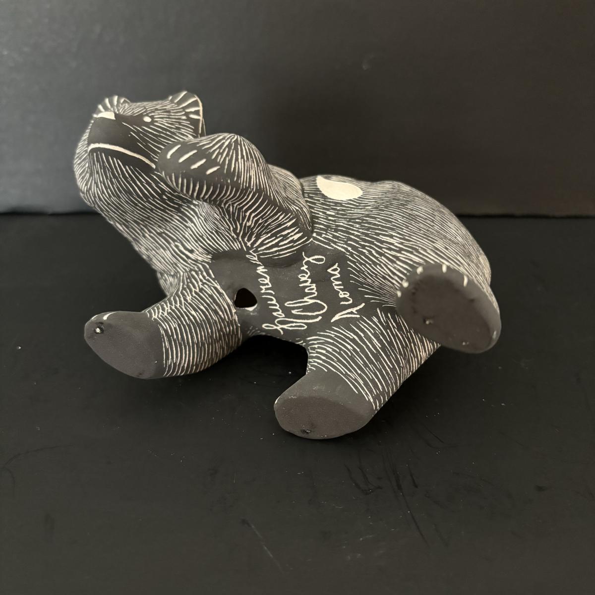 LOT 84: Lawrence Chavez Pueblo Pottery Bear Moon, Stars & Claw Figure, Acoma Pueblo Pottery Bear Figure & Vintage Native Amercian Bear Carving w/Turquoise,