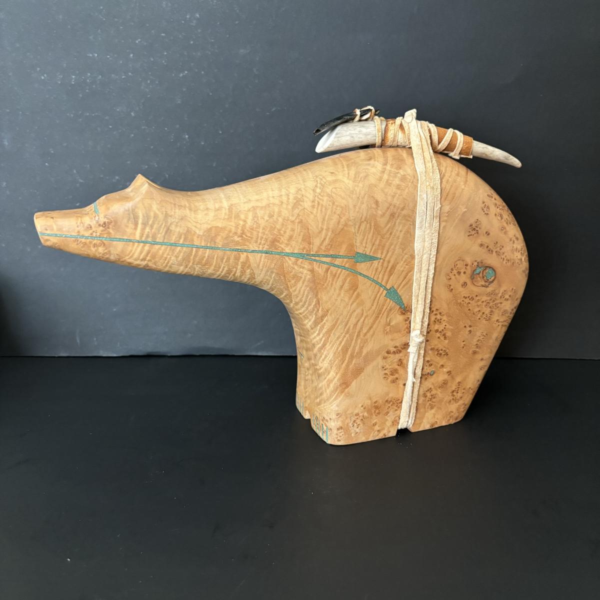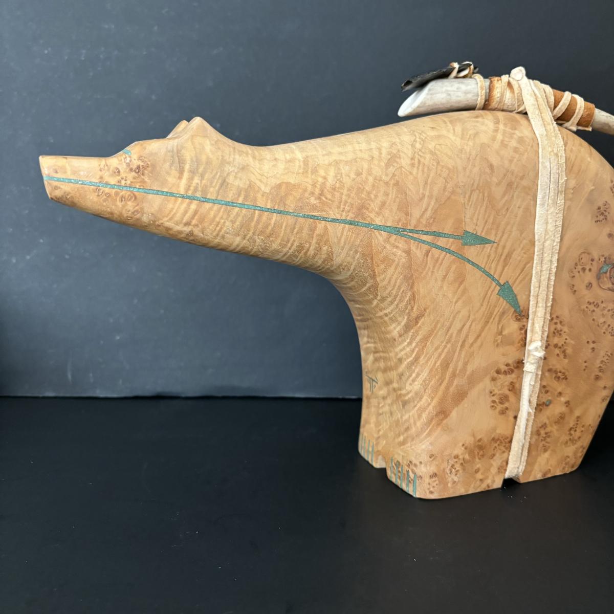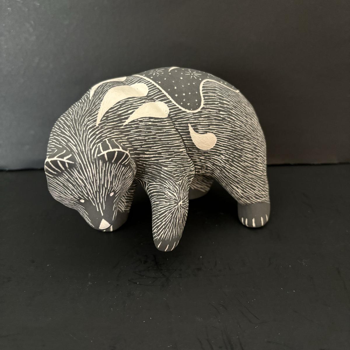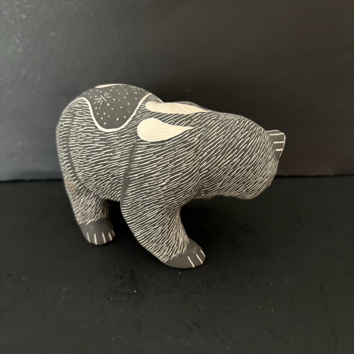 LOT 84: Lawrence Chavez Pueblo Pottery Bear Moon, Stars & Claw Figure, Acoma Pueblo Pottery Bear Figure & Vintage Native Amercian Bear Carving w/Turquoise,