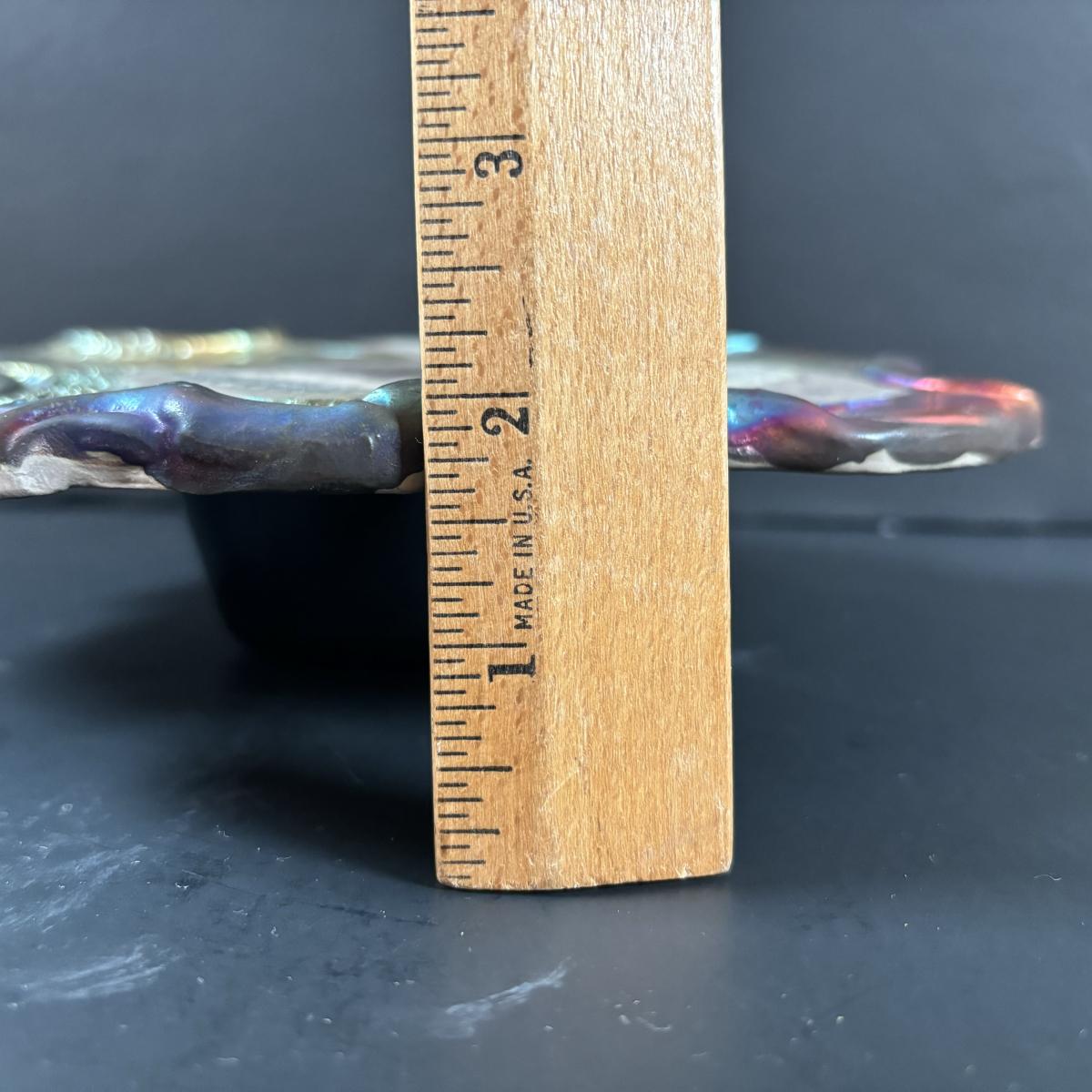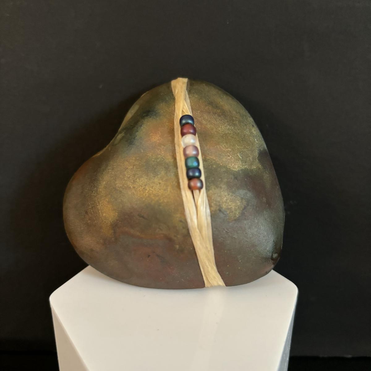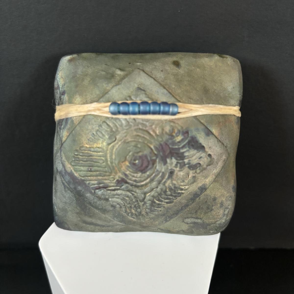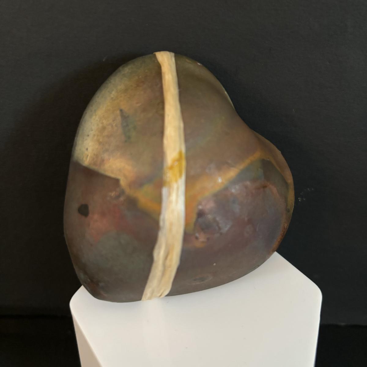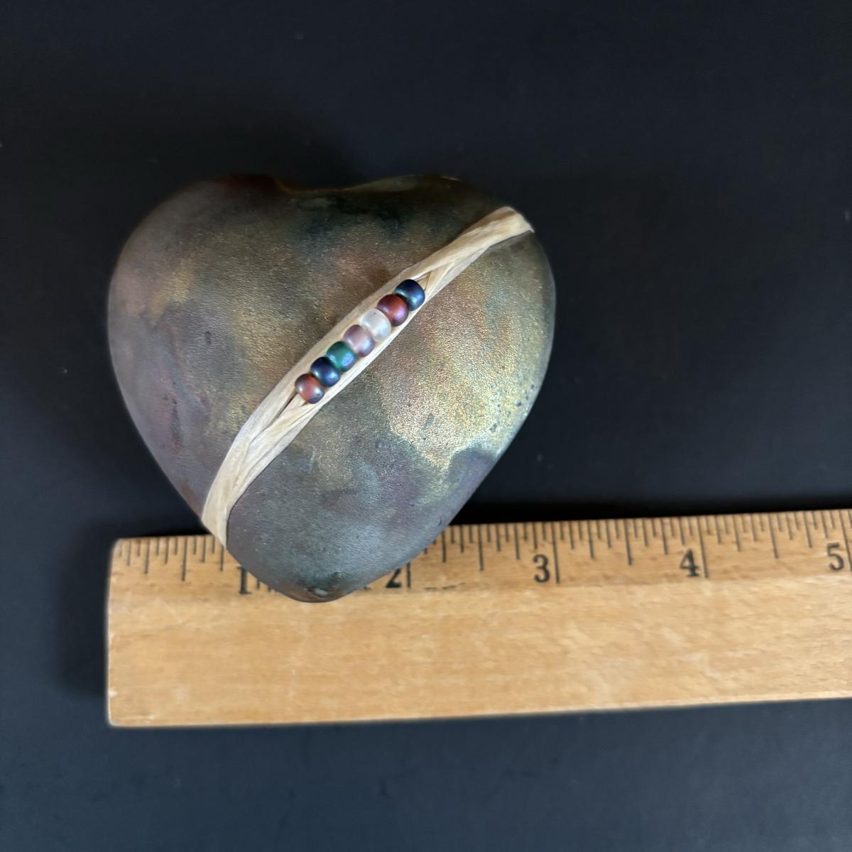 LOT 87: Raku Art Studio Pottery Floral Vasen w/Flower Frog along with Raku Square & Heart Spirit Shaker Rattles