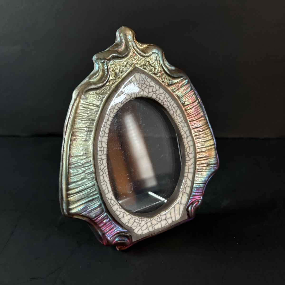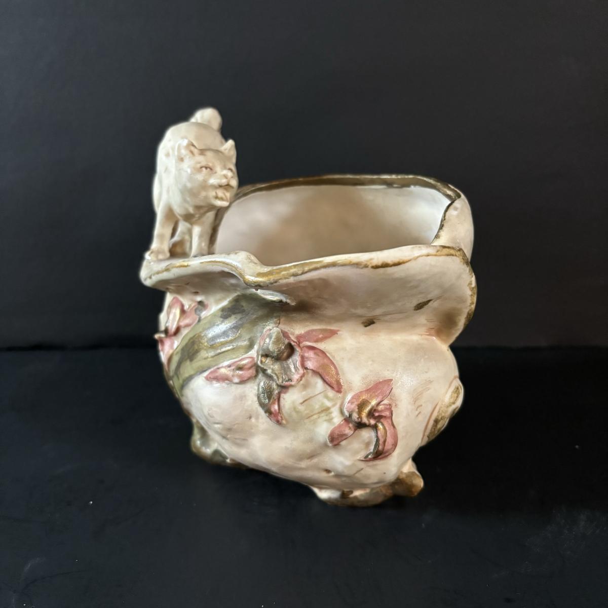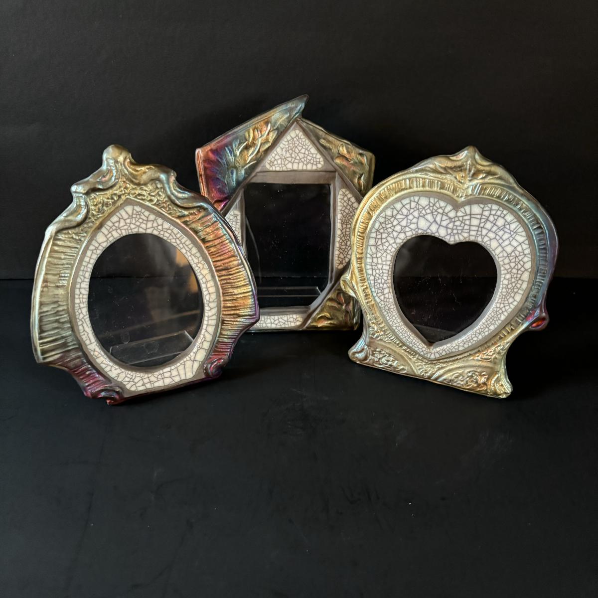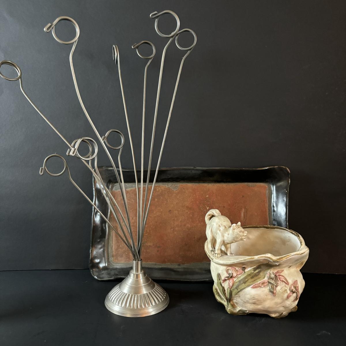 LOT 88: Raku Art Studio Pottery Flat Cat Figures, Raku Picture Frames, Cat Pottery Planters, Card/Picture Holder & Pottery Tray