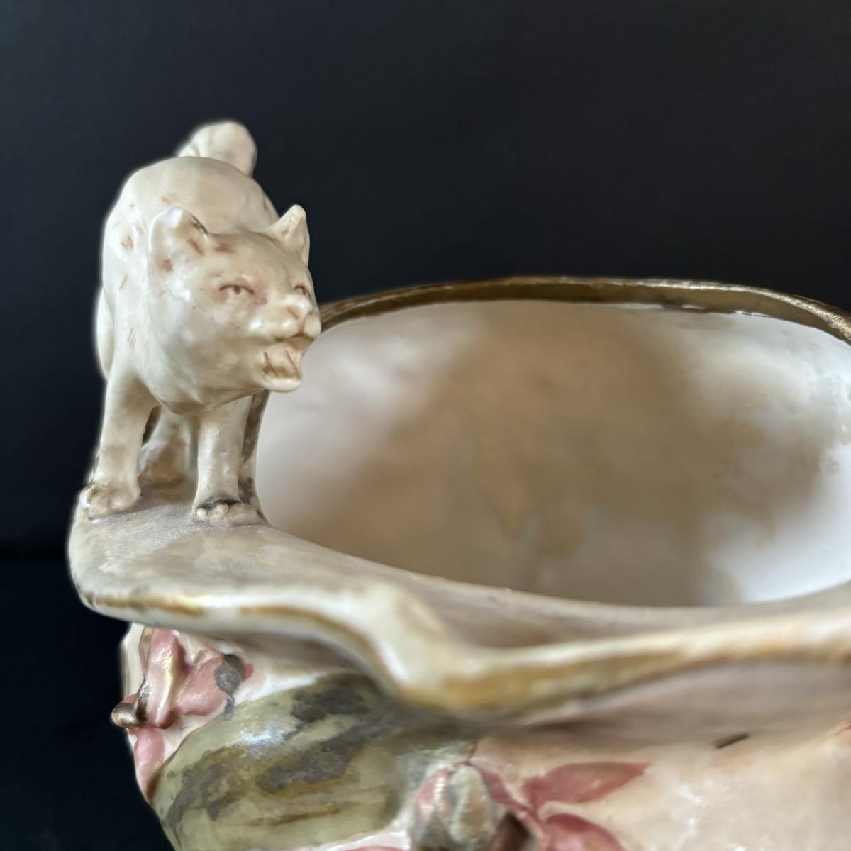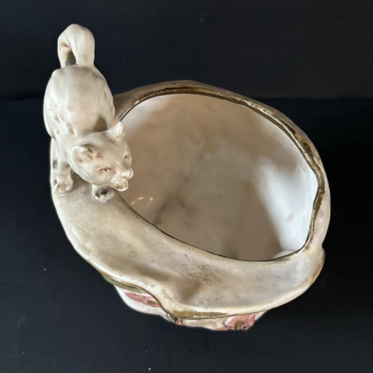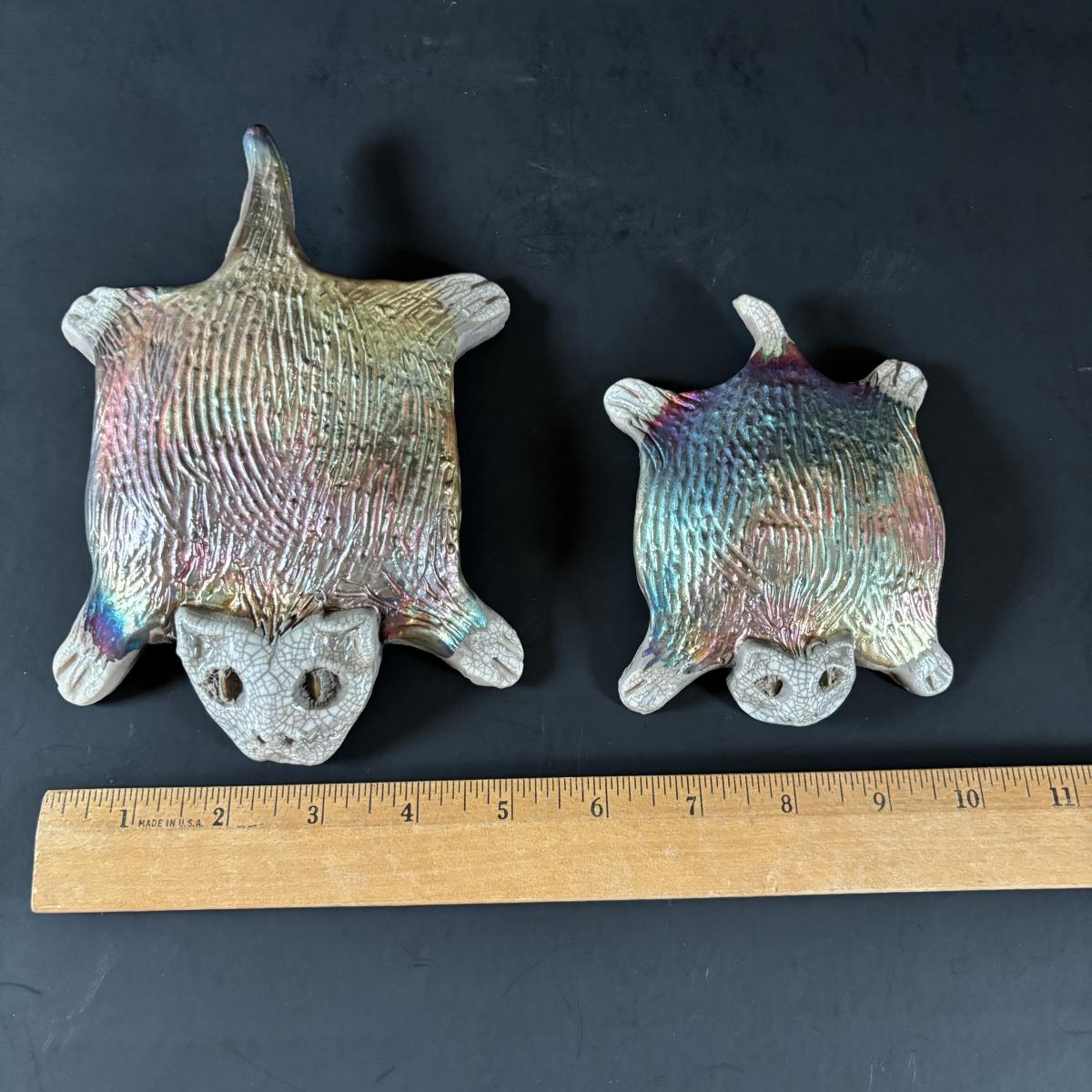LOT 88: Raku Art Studio Pottery Flat Cat Figures, Raku Picture Frames, Cat Pottery Planters, Card/Picture Holder & Pottery Tray
