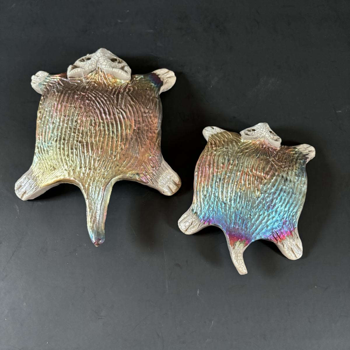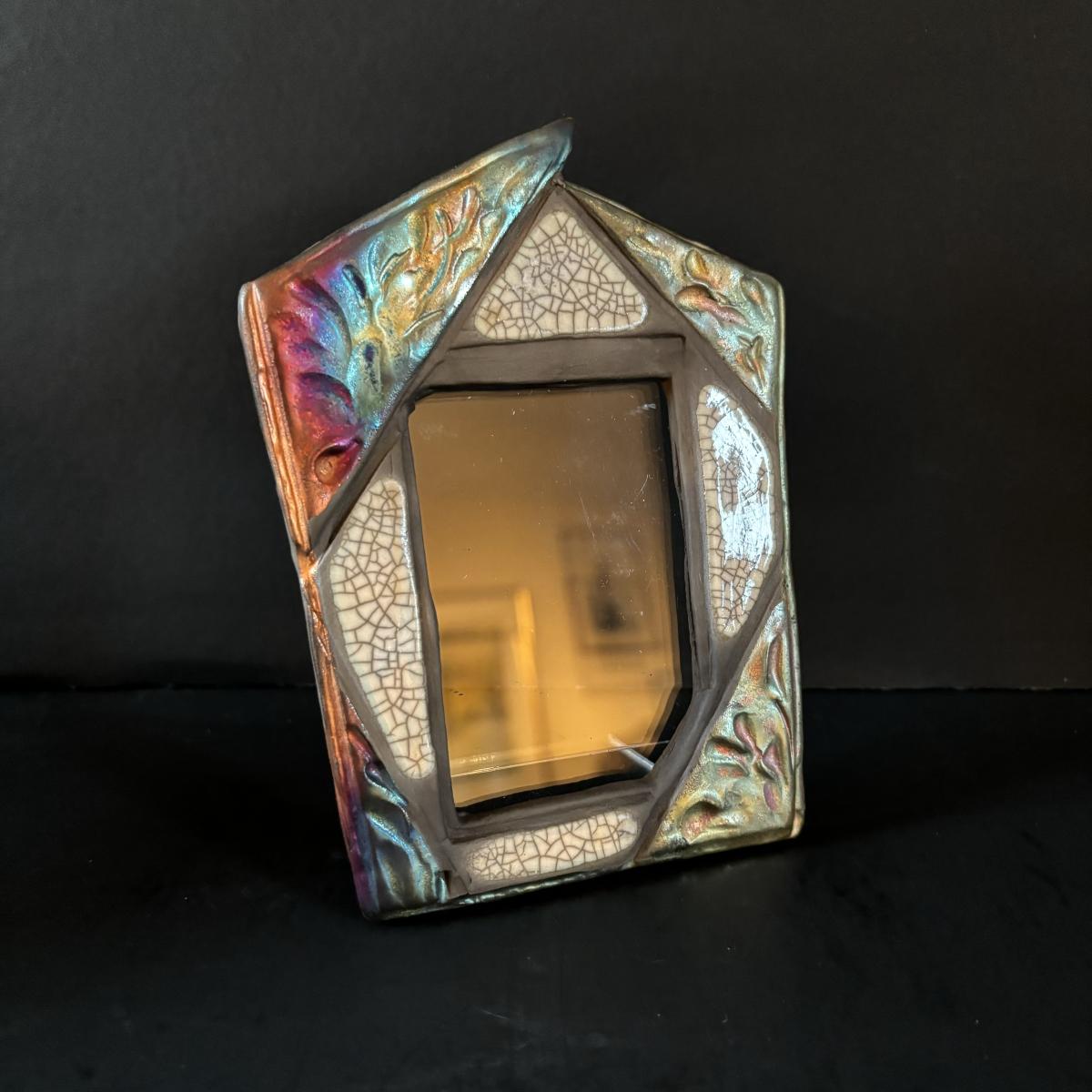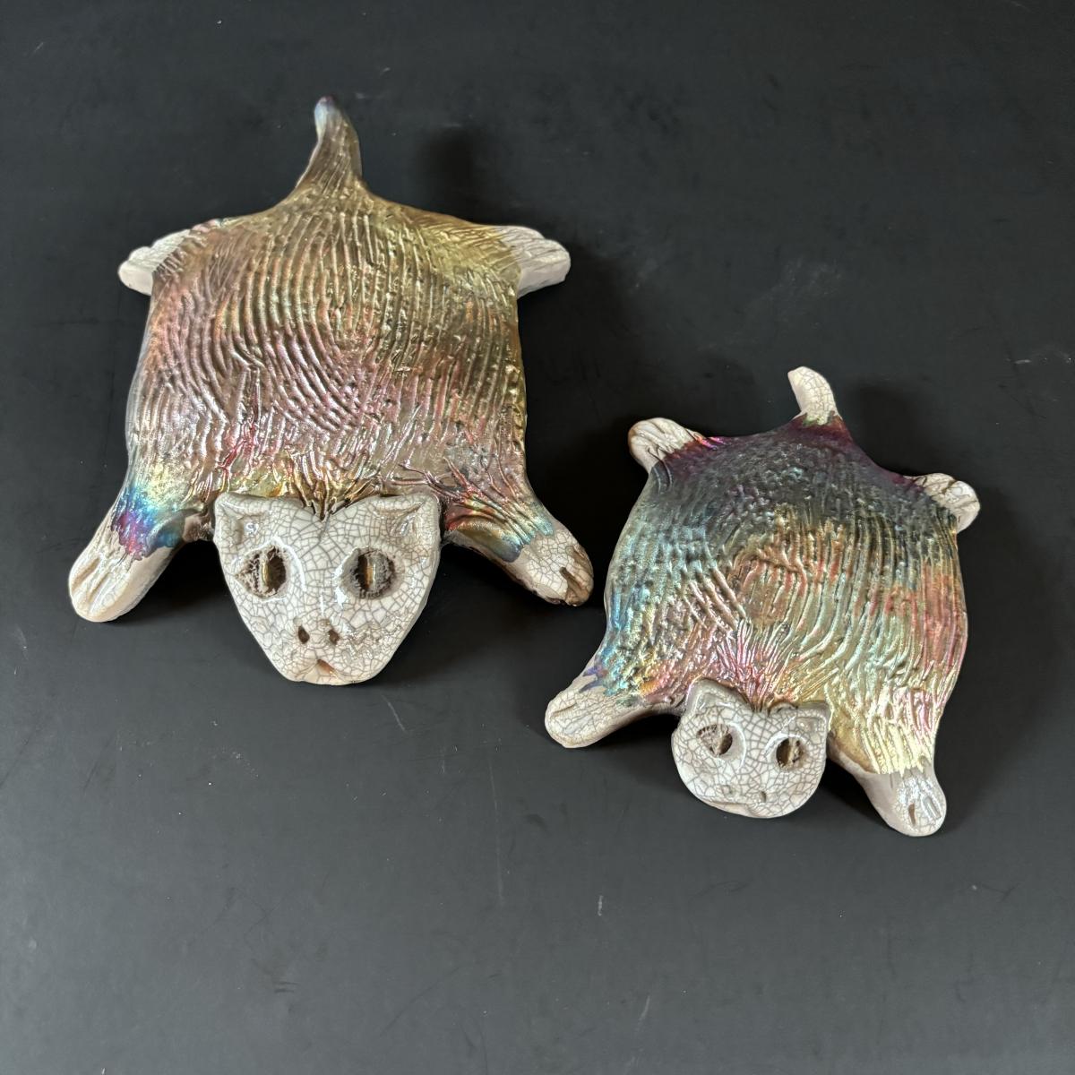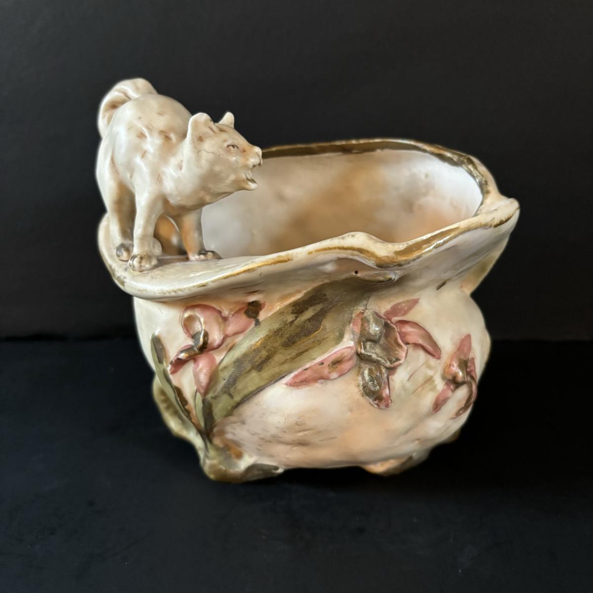 LOT 88: Raku Art Studio Pottery Flat Cat Figures, Raku Picture Frames, Cat Pottery Planters, Card/Picture Holder & Pottery Tray