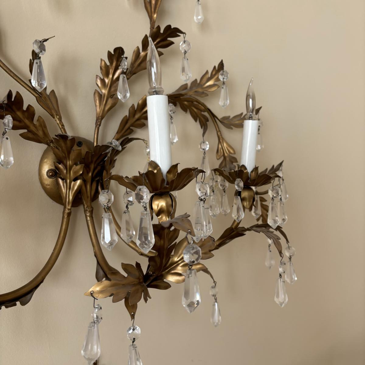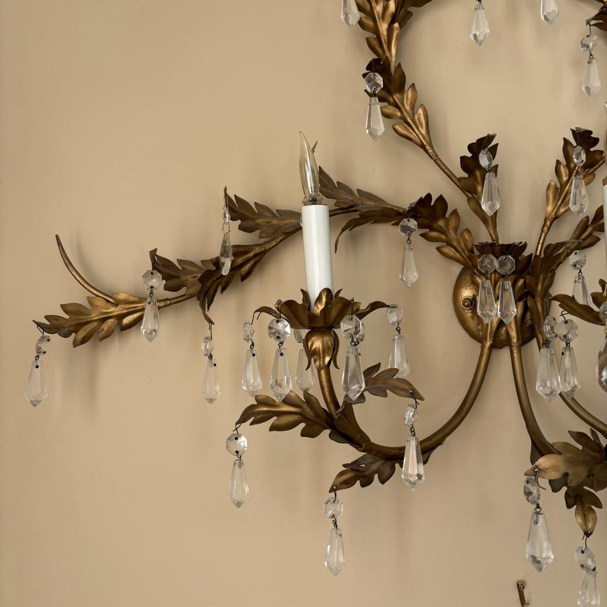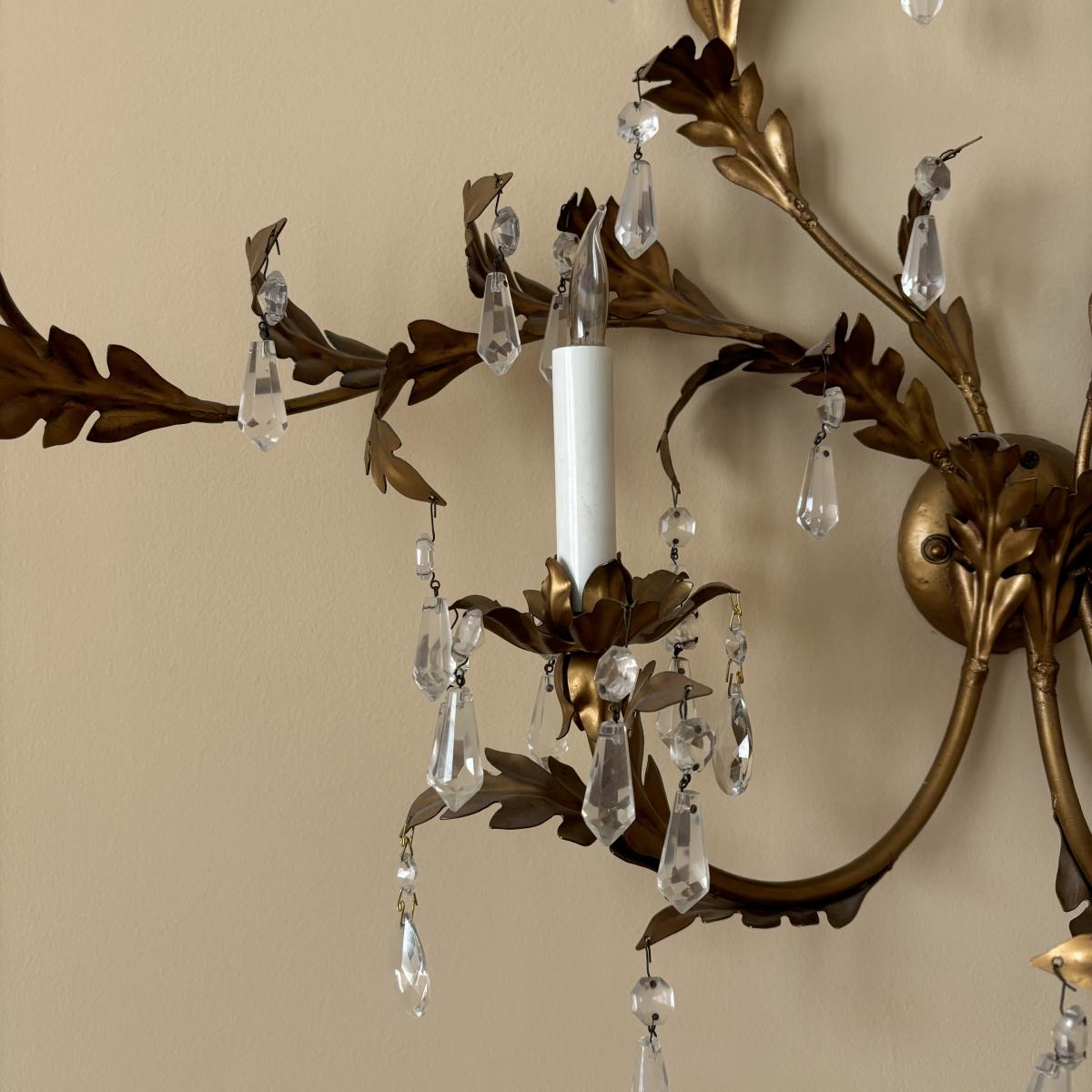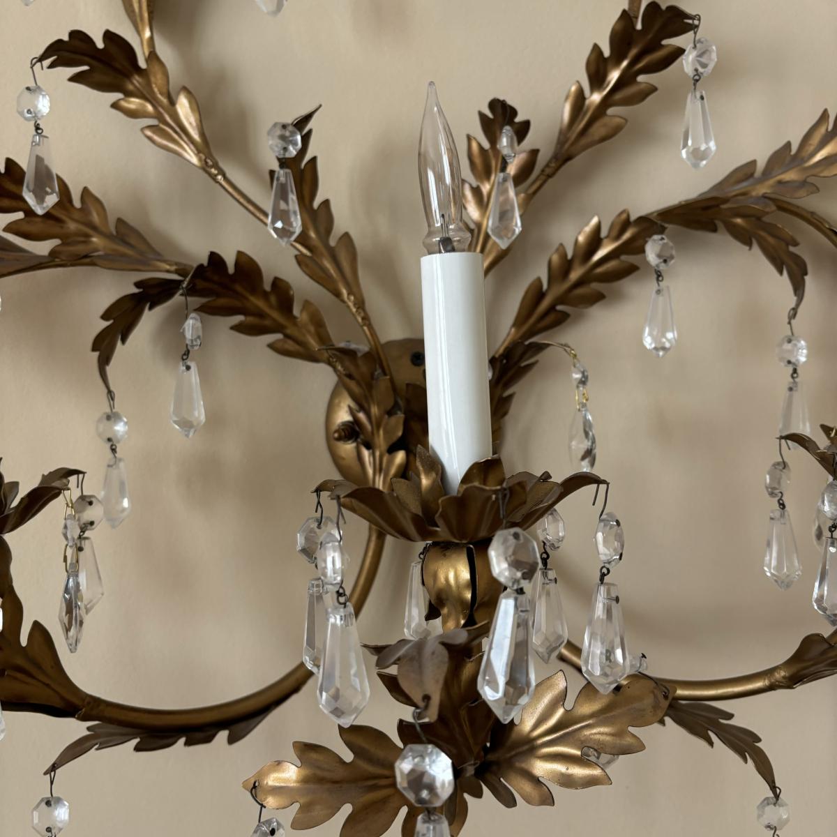 LOT 89: Pair of Matching Ornate Electric Candelabra Wall Sconces w/Crystals