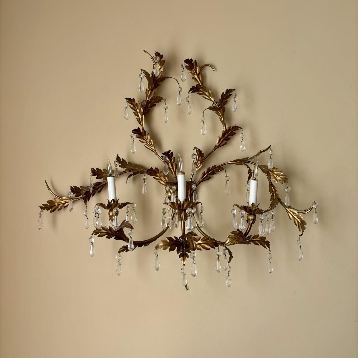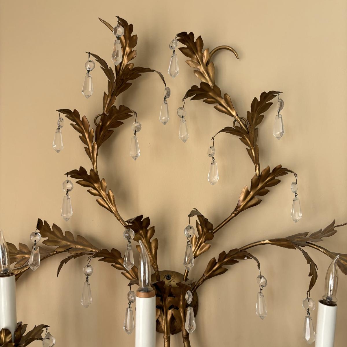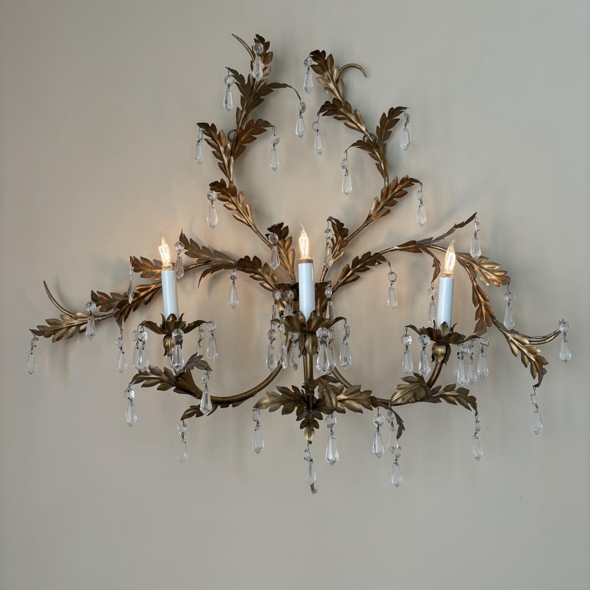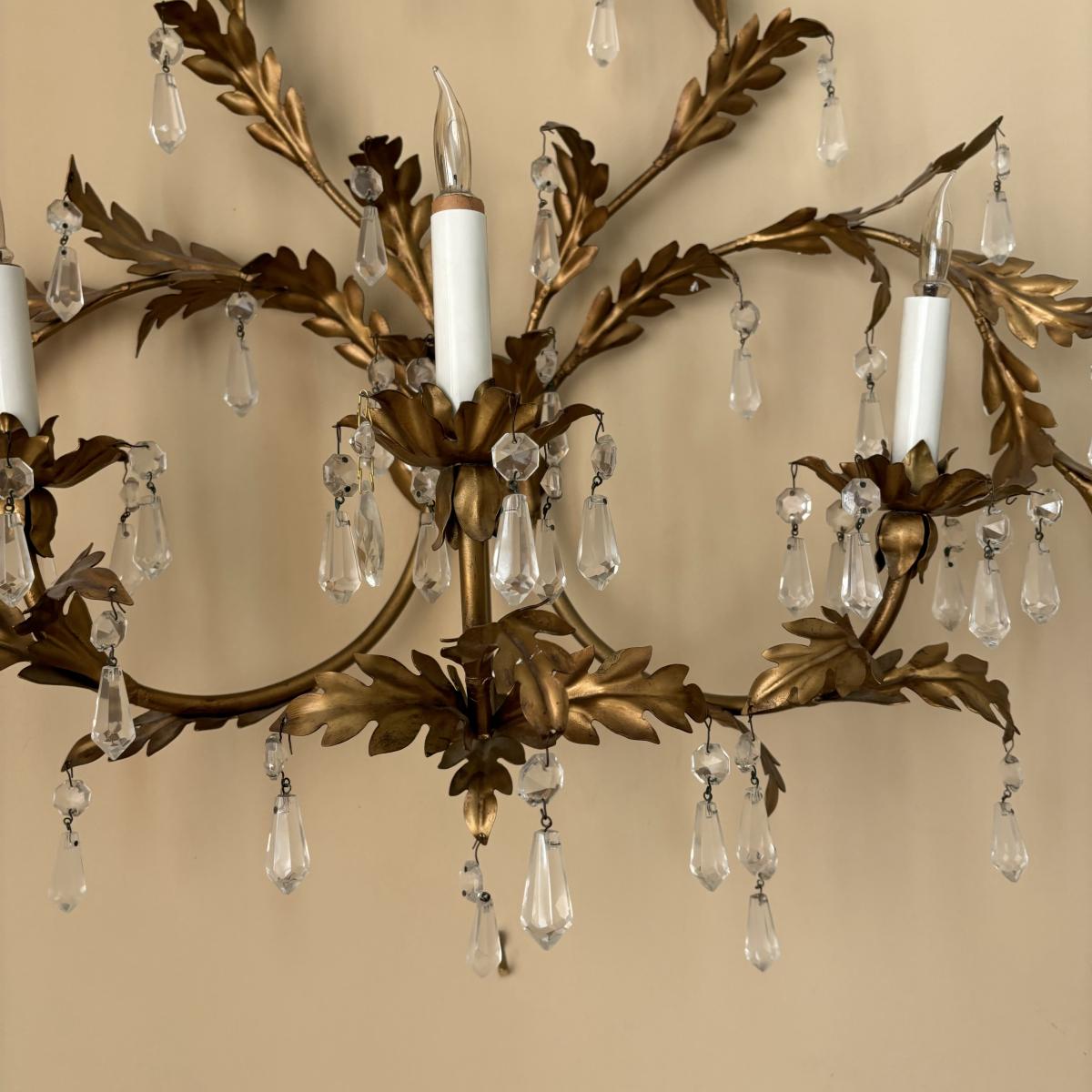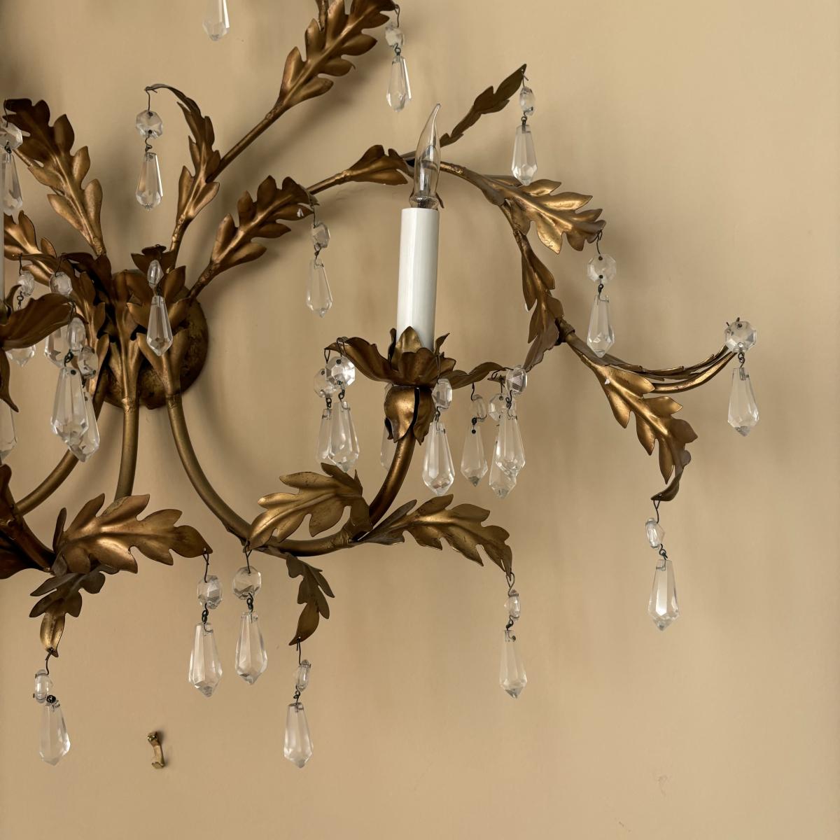 LOT 89: Pair of Matching Ornate Electric Candelabra Wall Sconces w/Crystals
