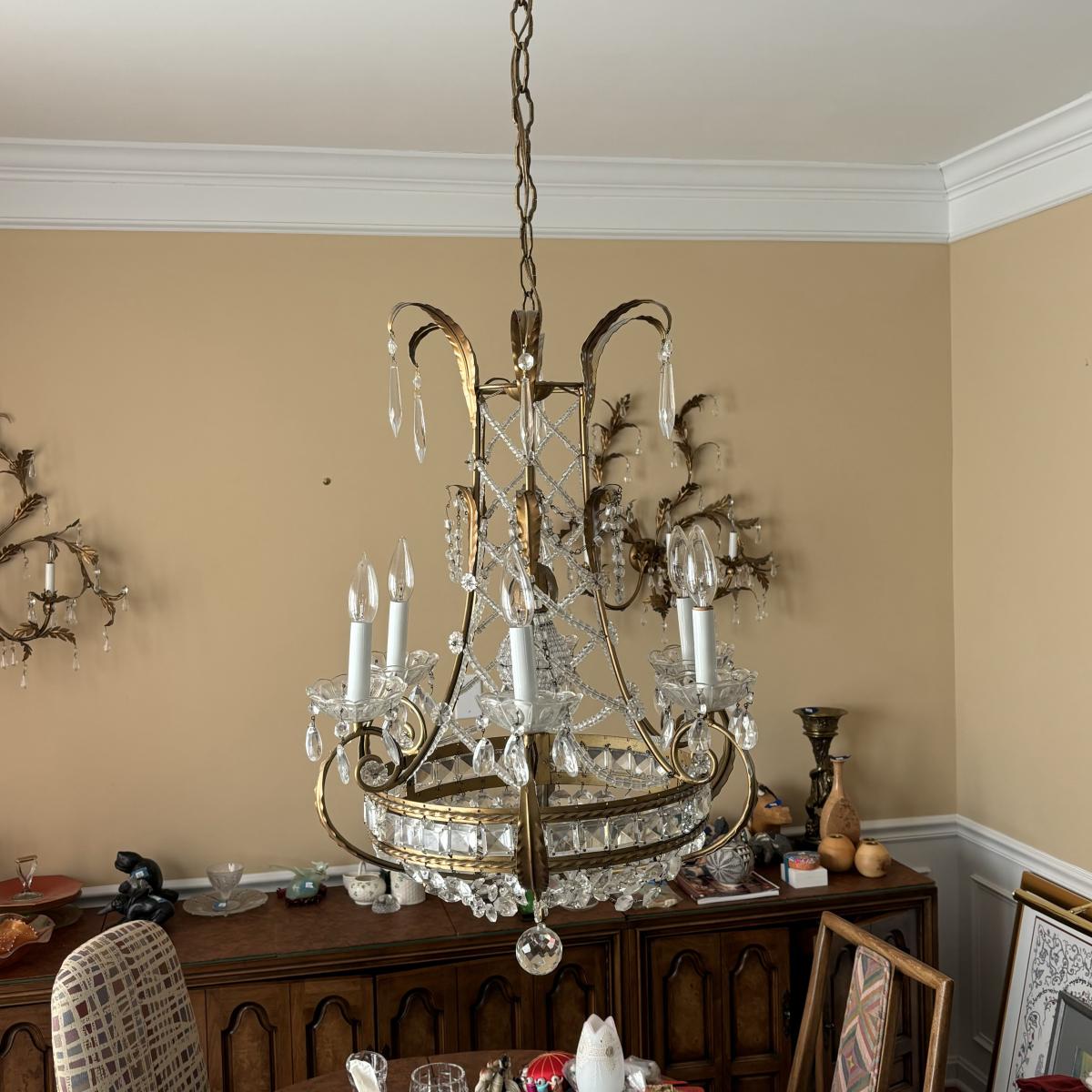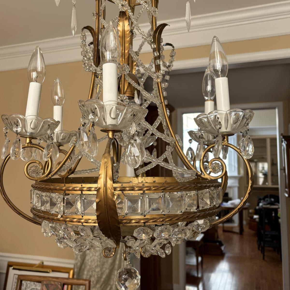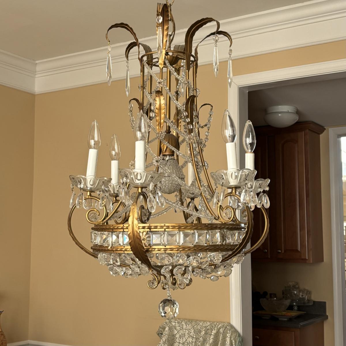 LOT 90: Beautiful 6 Light Ornate Crystal Chandelier