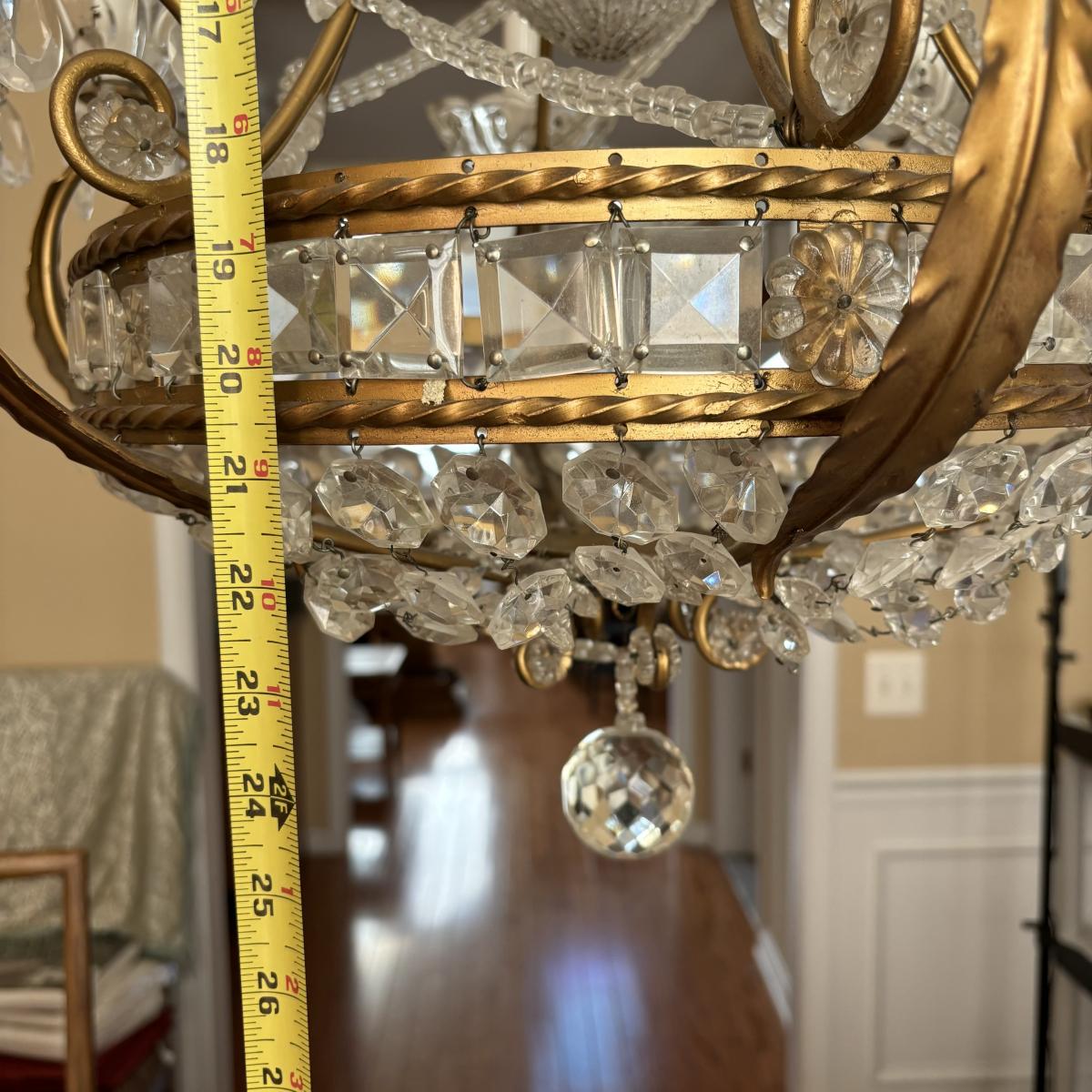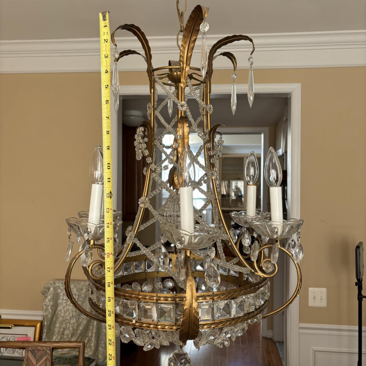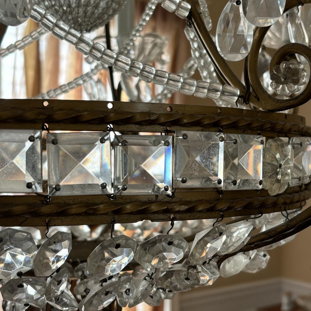 LOT 90: Beautiful 6 Light Ornate Crystal Chandelier
