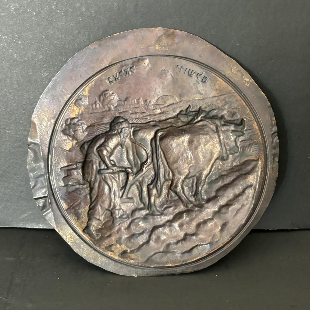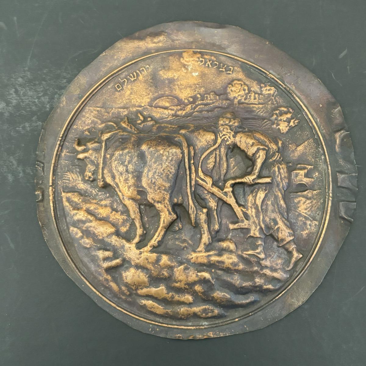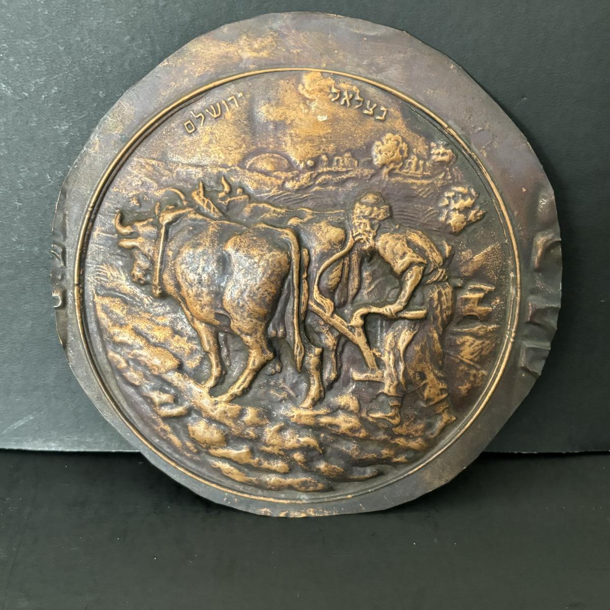 LOT 92: Vintage Judaica 6" Copper Relief Art