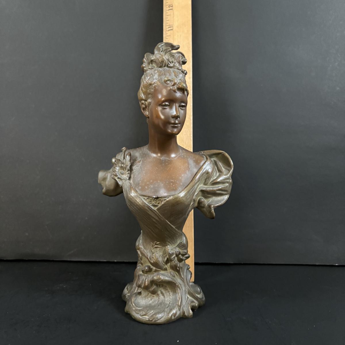 LOT 105: Vintage Bronze Bust of Woman, Royal Copenhagen Candle Sticks, Royal Doulton, Royal Crown Derby