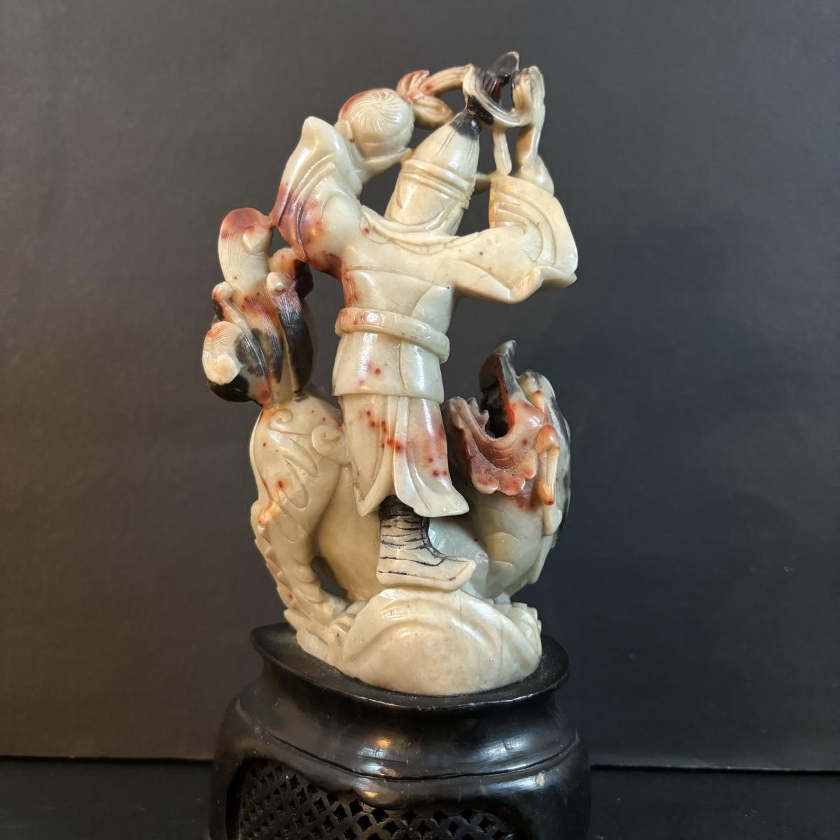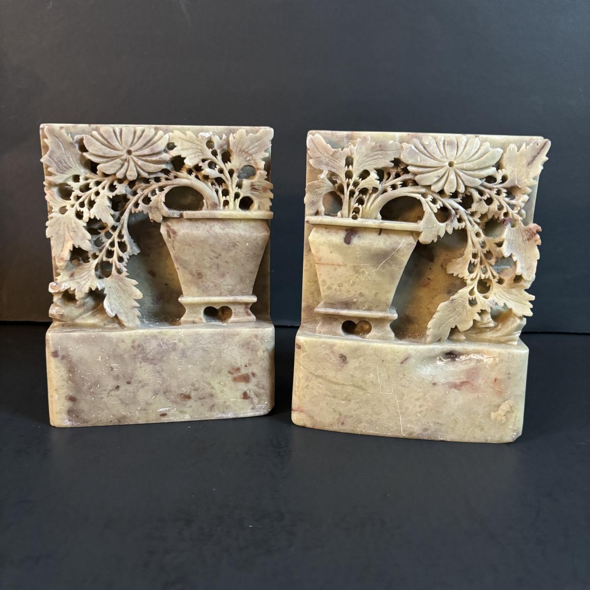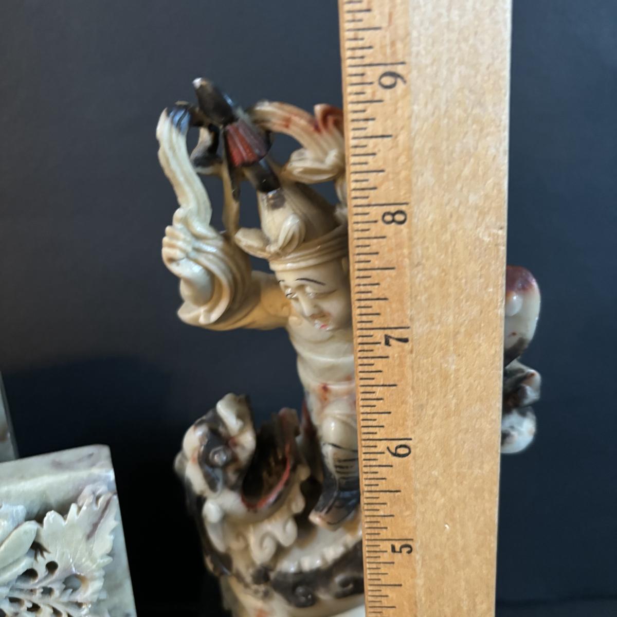 LOT 108: Carved Asian Soapstone Stature & Bookends/Statues
