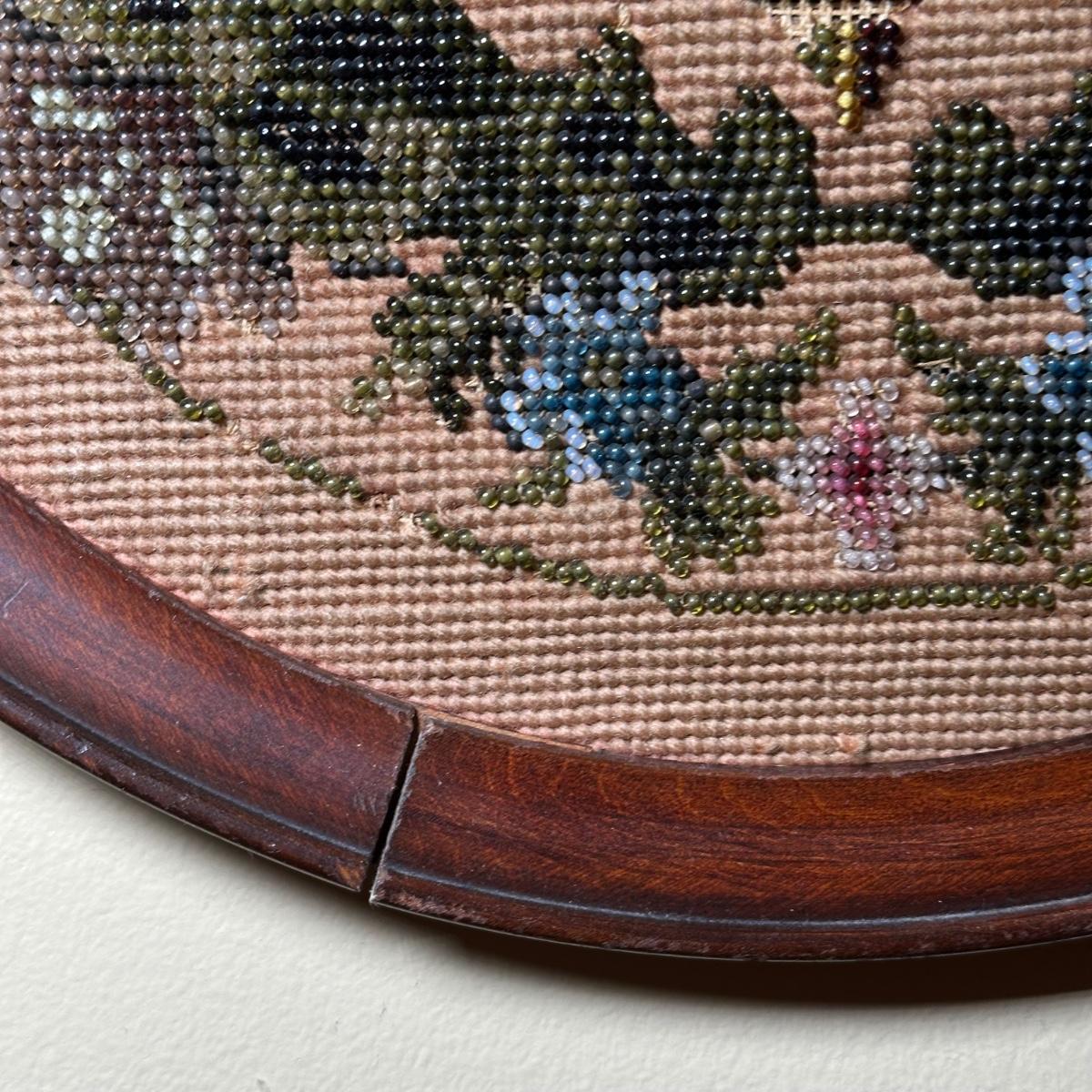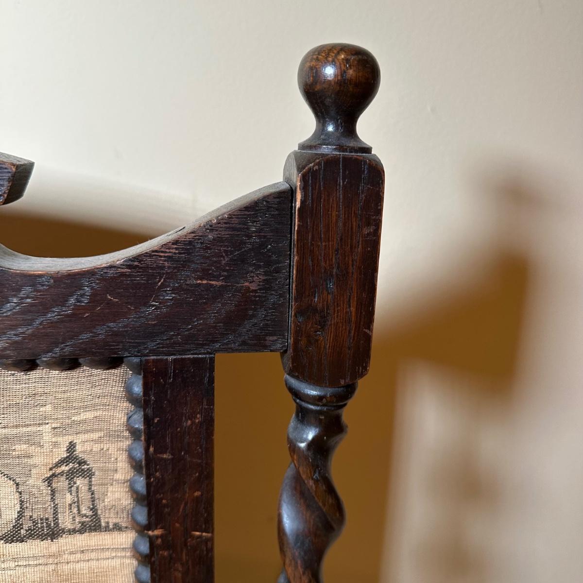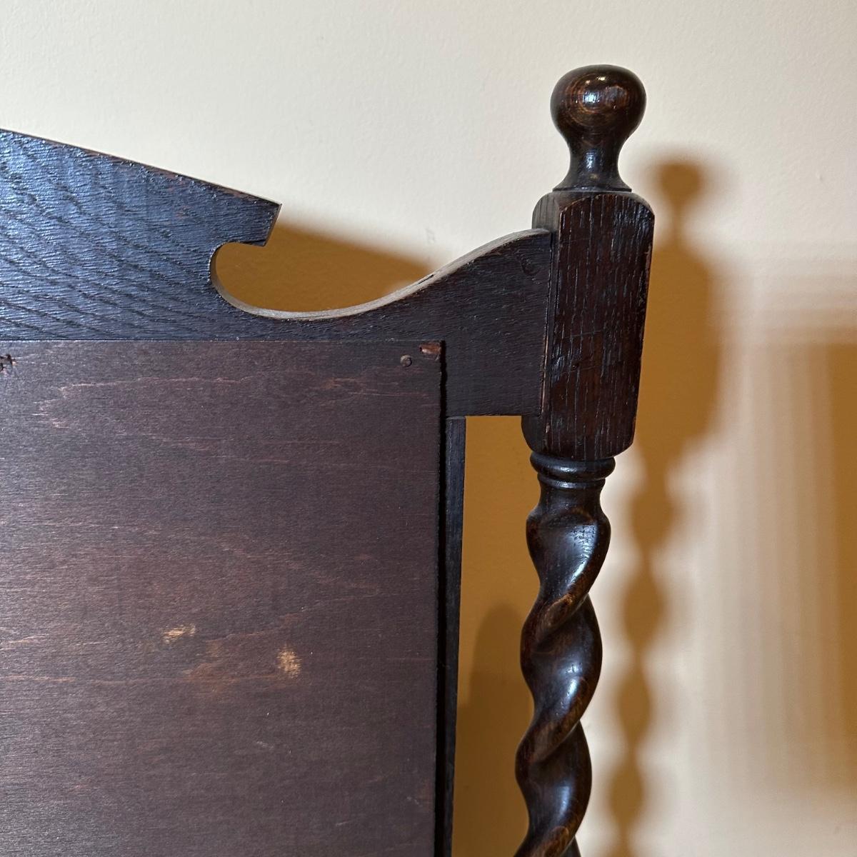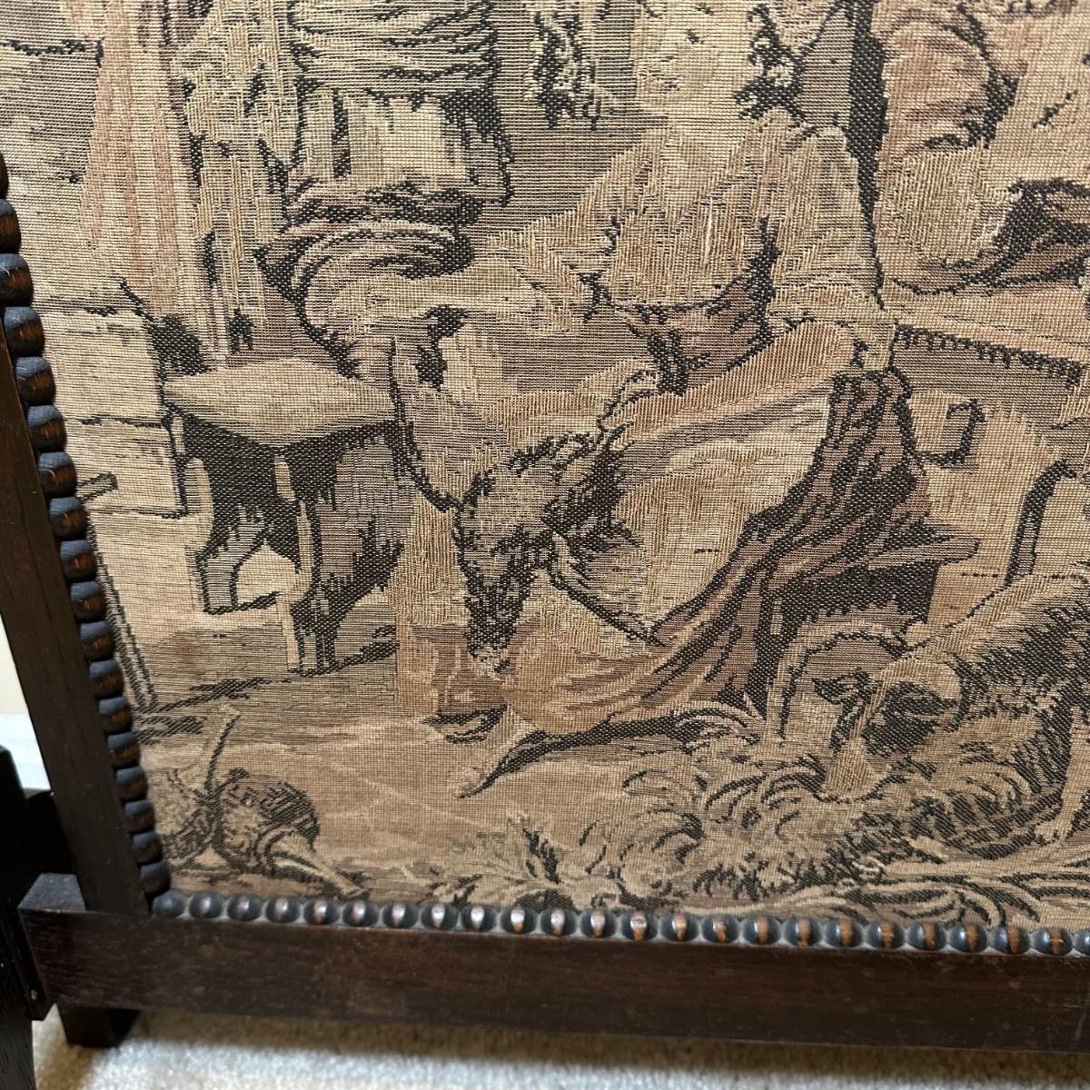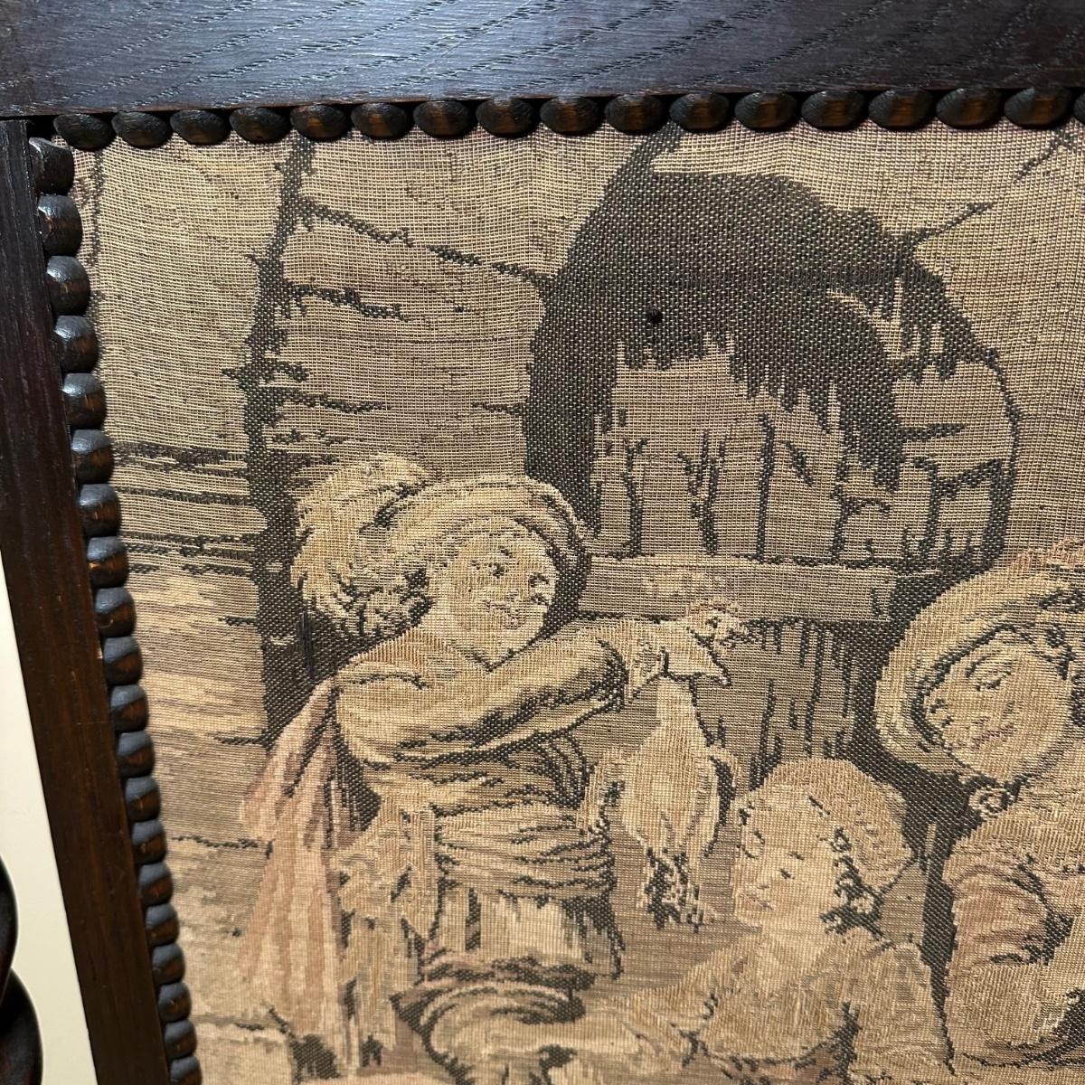 LOT 109: Barley Twist Oak Framed Tapestry Fire Screen w/ Framed Floral Beadwork Tapestry
