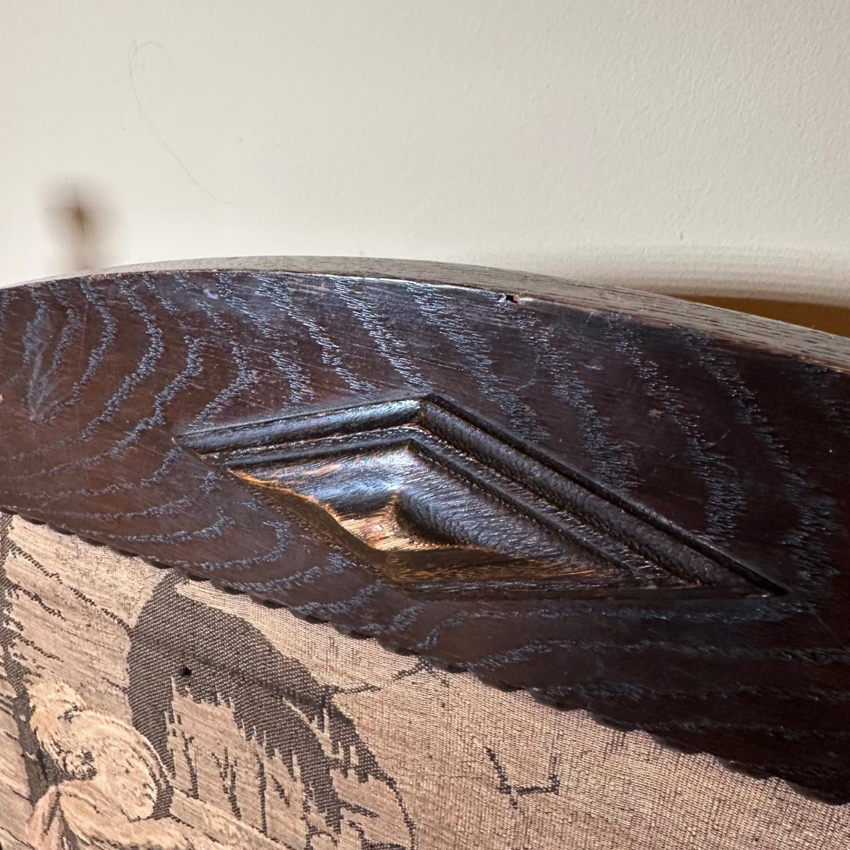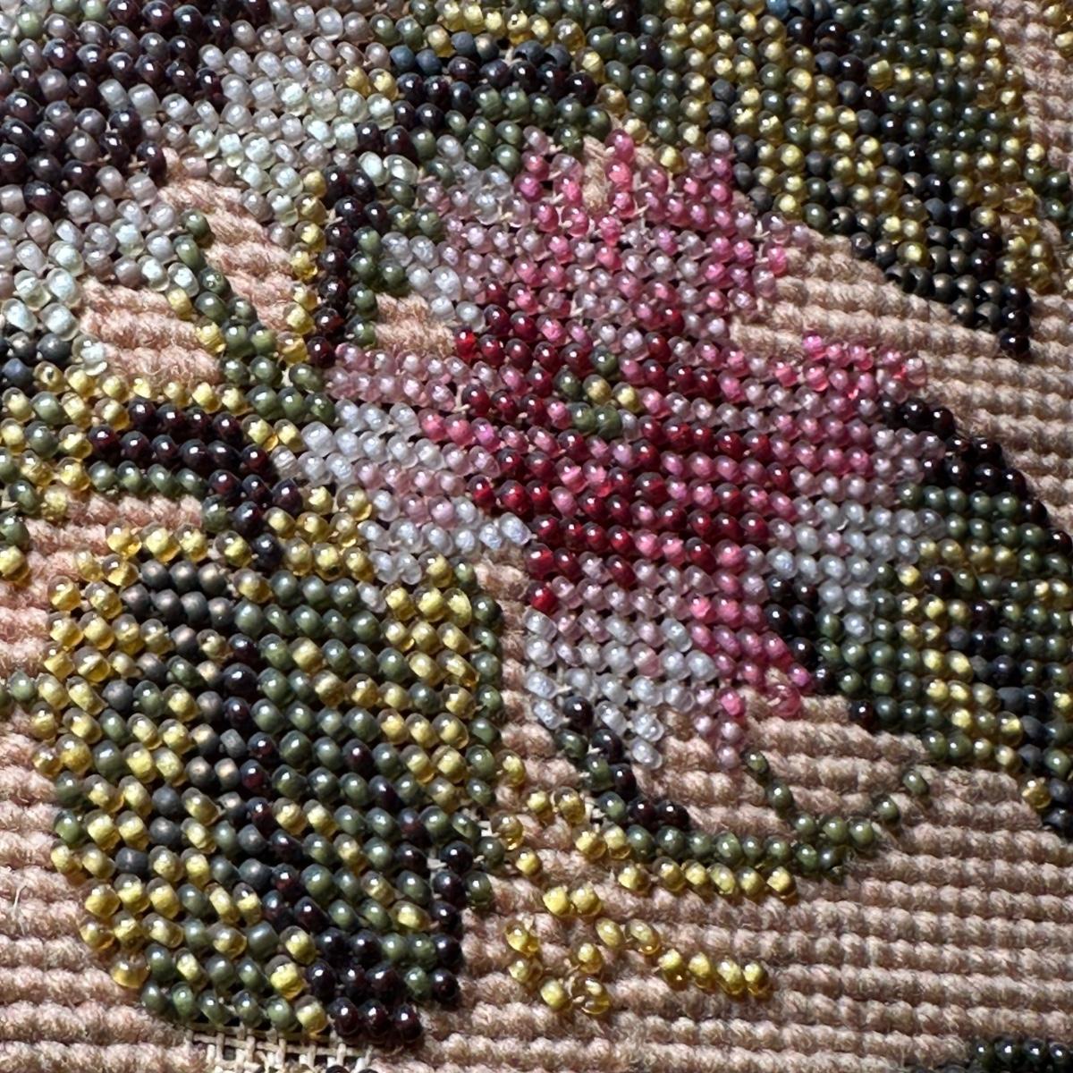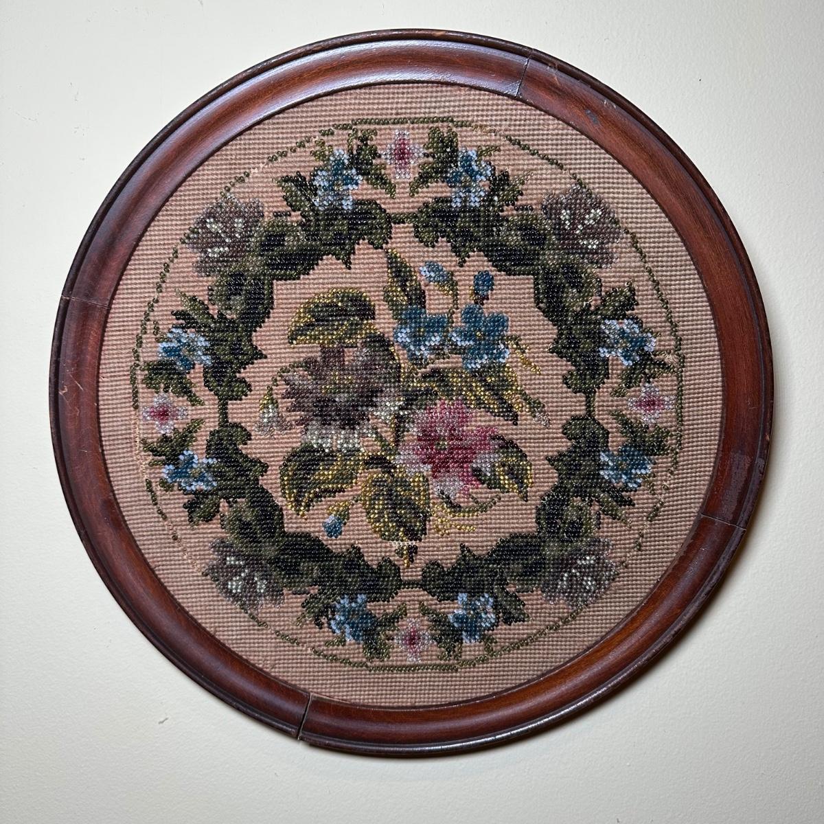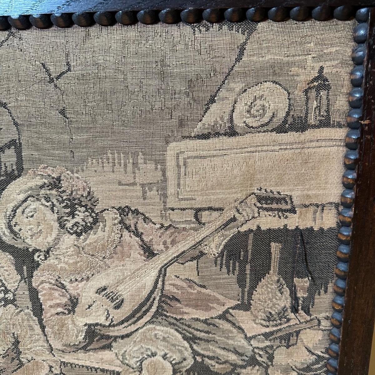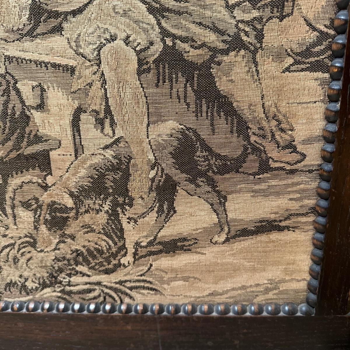 LOT 109: Barley Twist Oak Framed Tapestry Fire Screen w/ Framed Floral Beadwork Tapestry