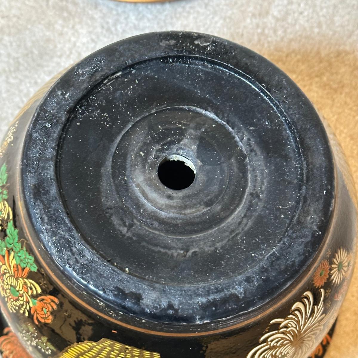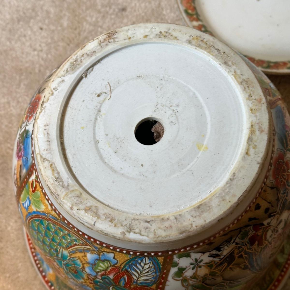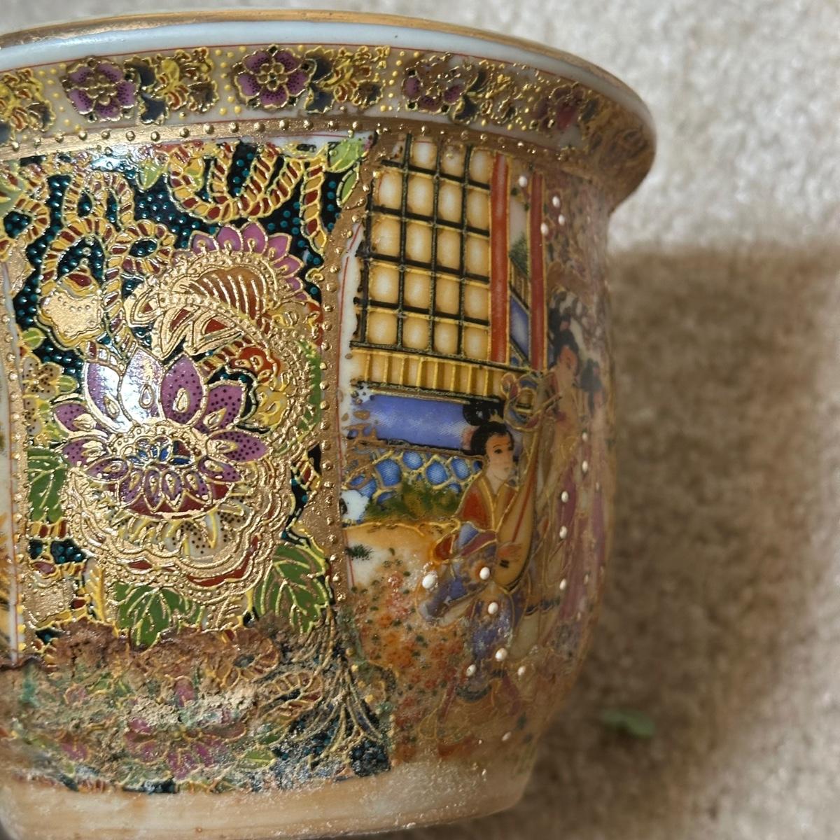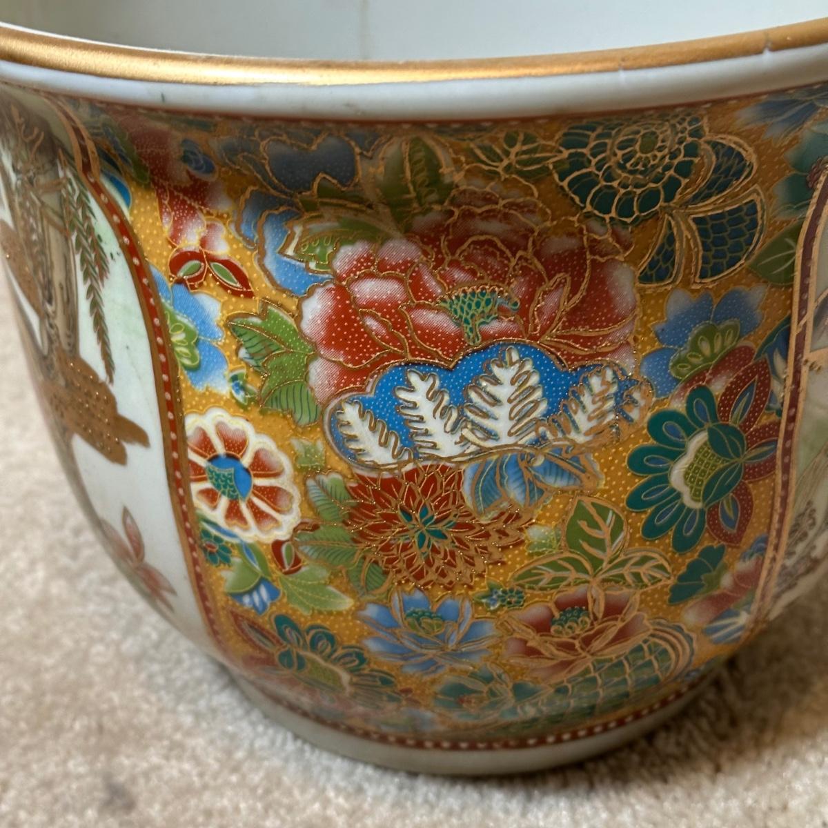 LOT 114: Vintage Asian Planters w/ Wrought Iron Plant Stand