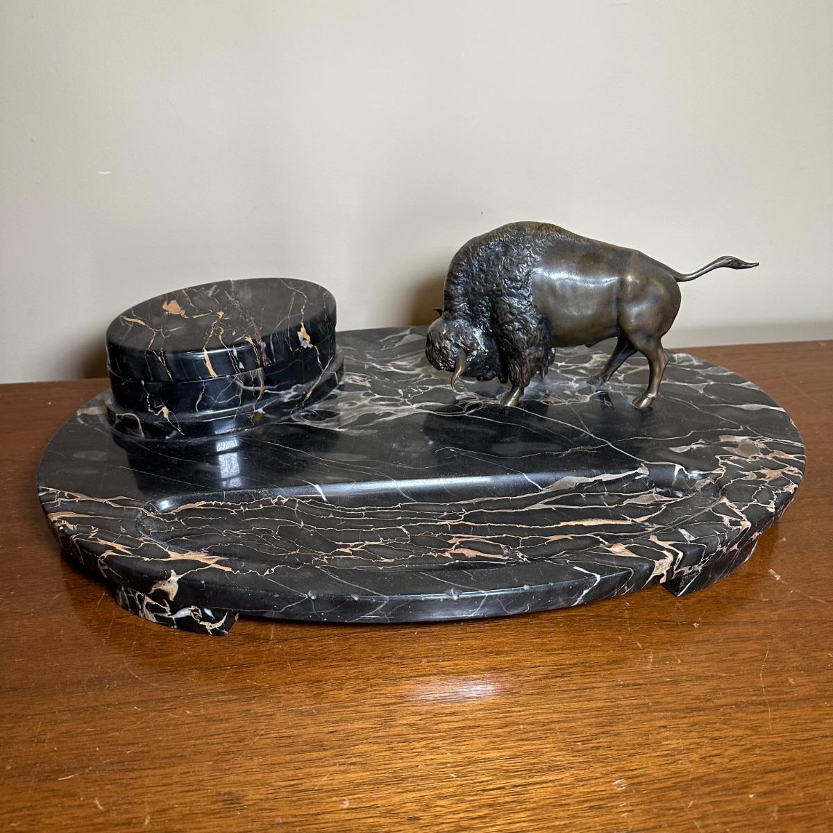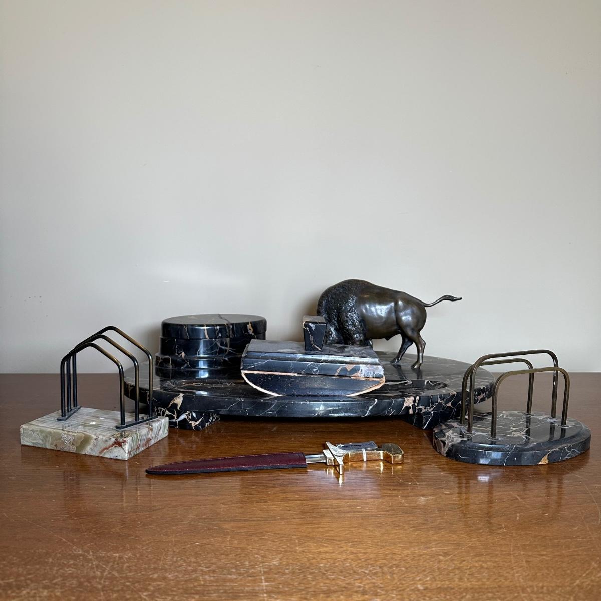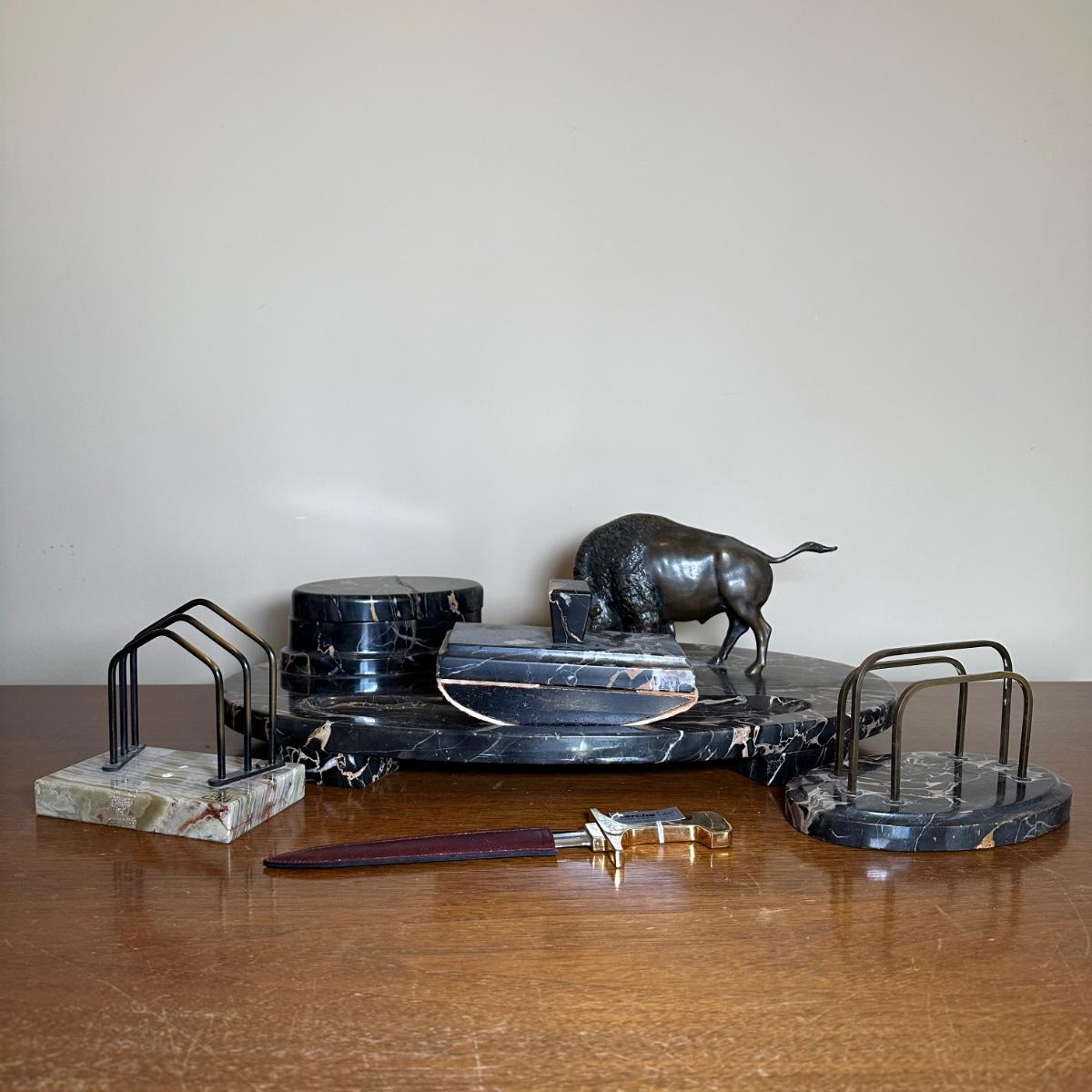 LOT 115: Vintage Art Deco Marble Desk Set w/ 22k Gold Plated Letter Opener & More