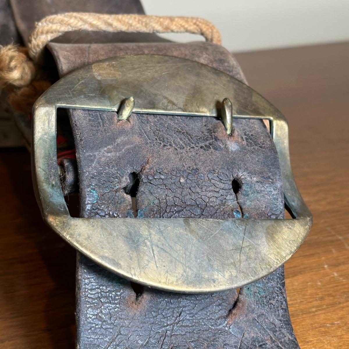 LOT 117: Vintage European Brass Cowbell w/ Leather Strap