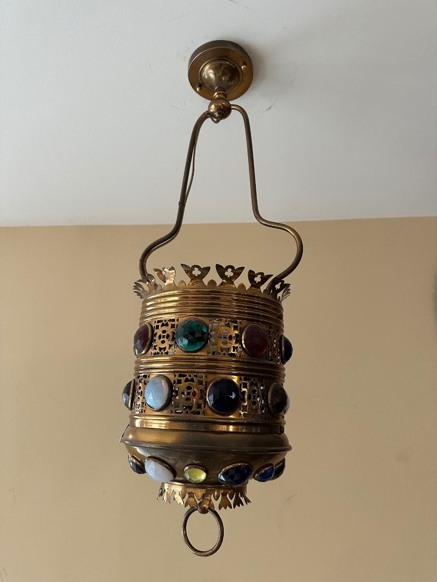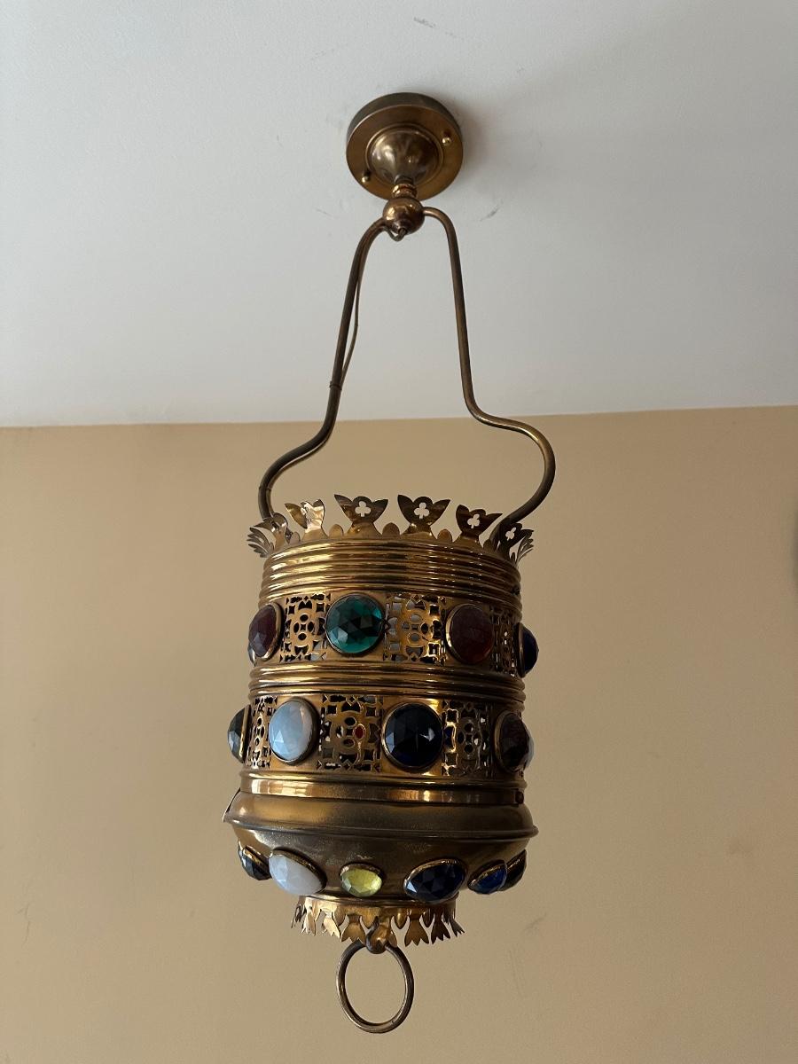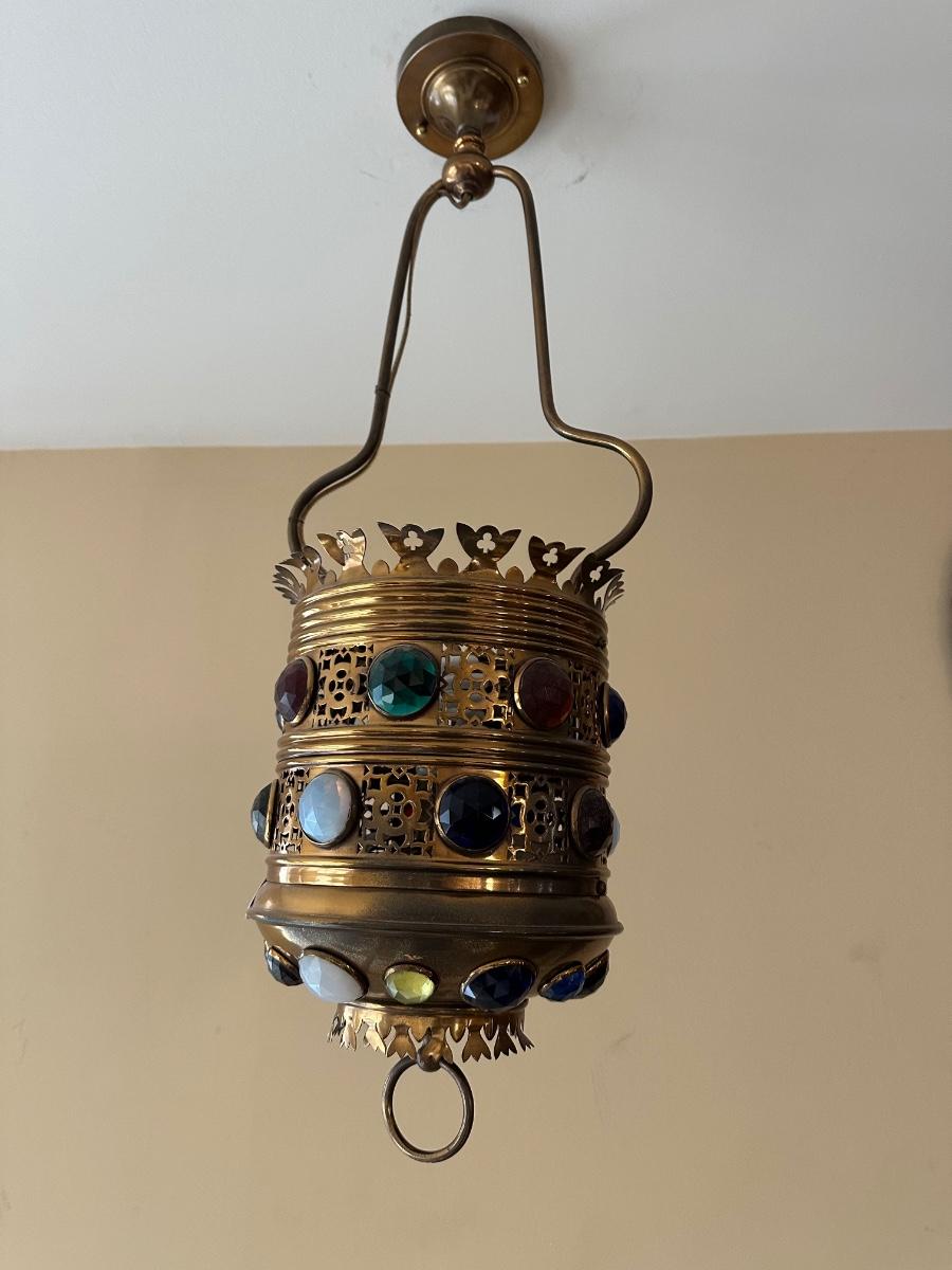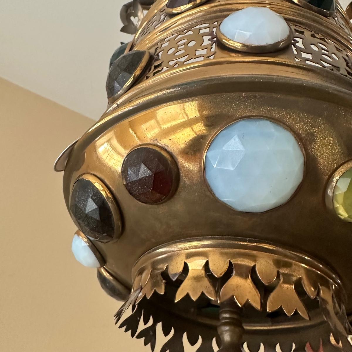 LOT 119: Beautiful Pierced Brass Jeweled Light Fixture