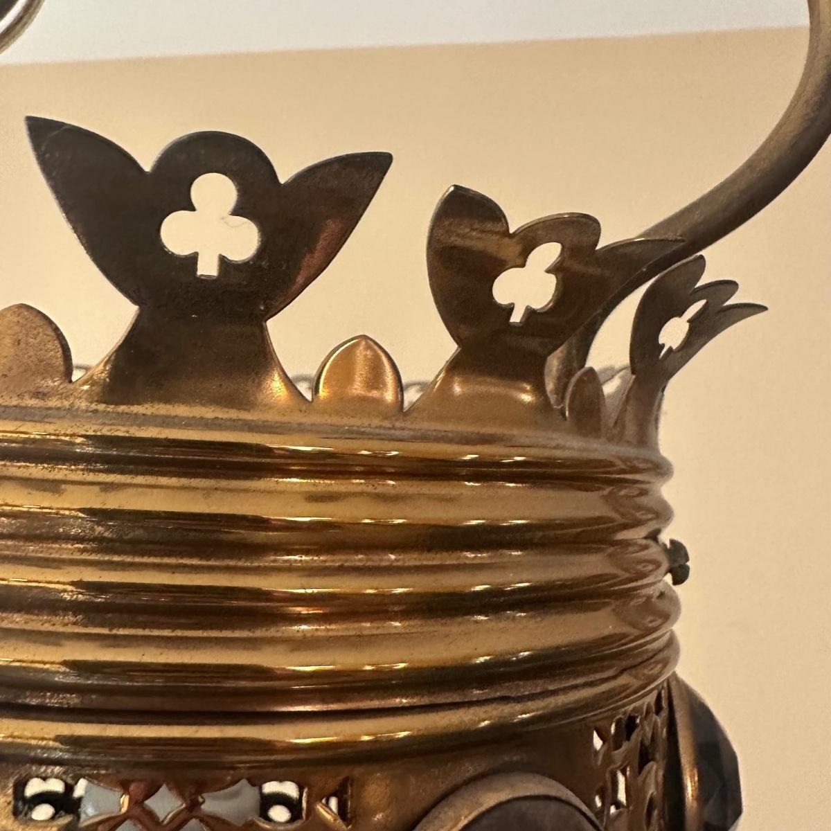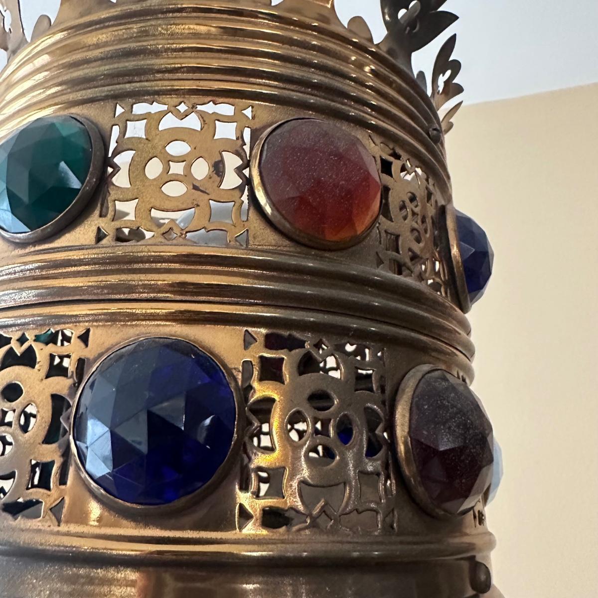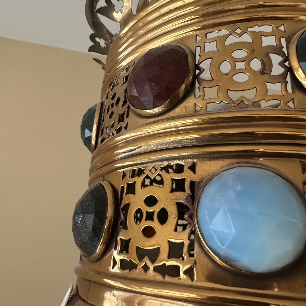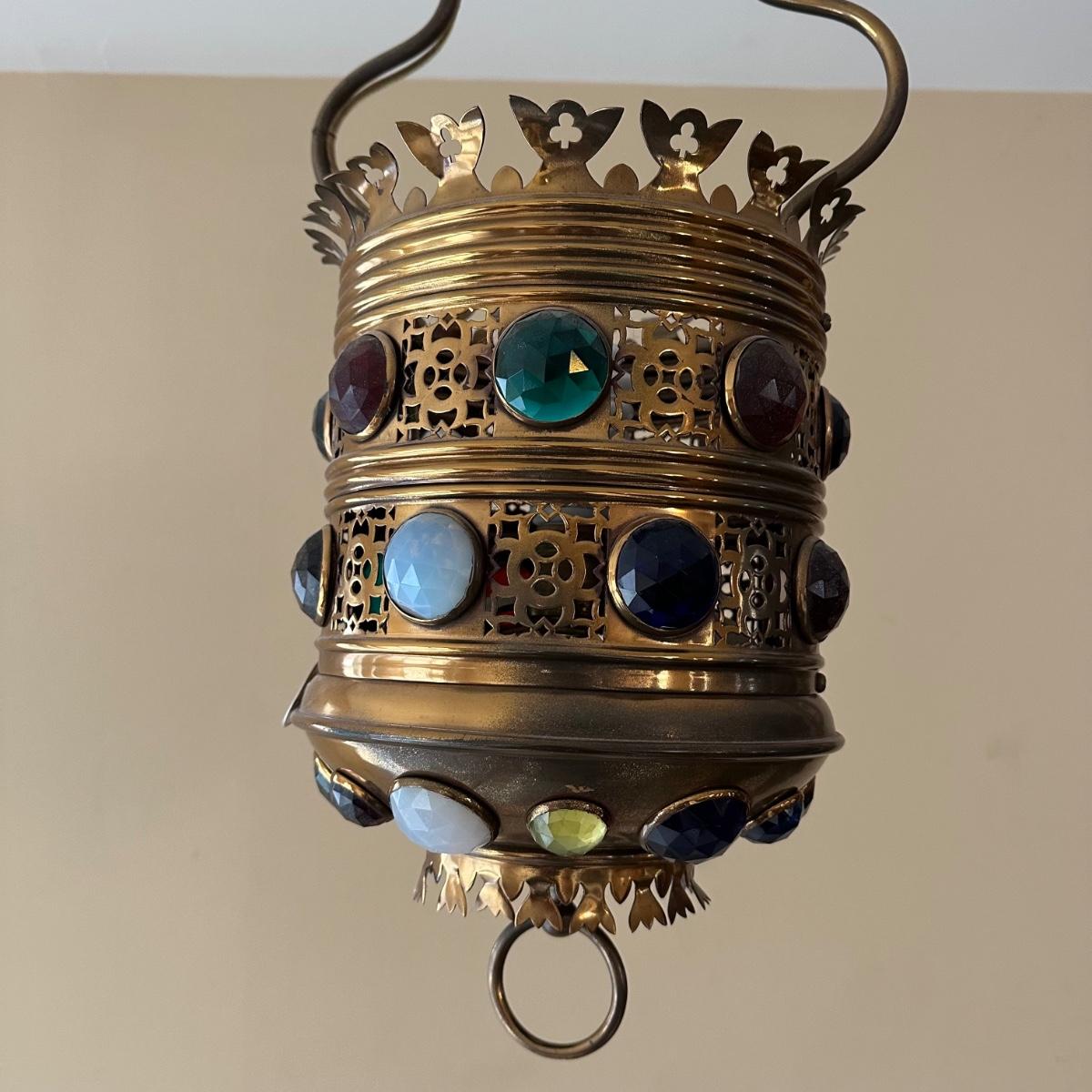 LOT 119: Beautiful Pierced Brass Jeweled Light Fixture