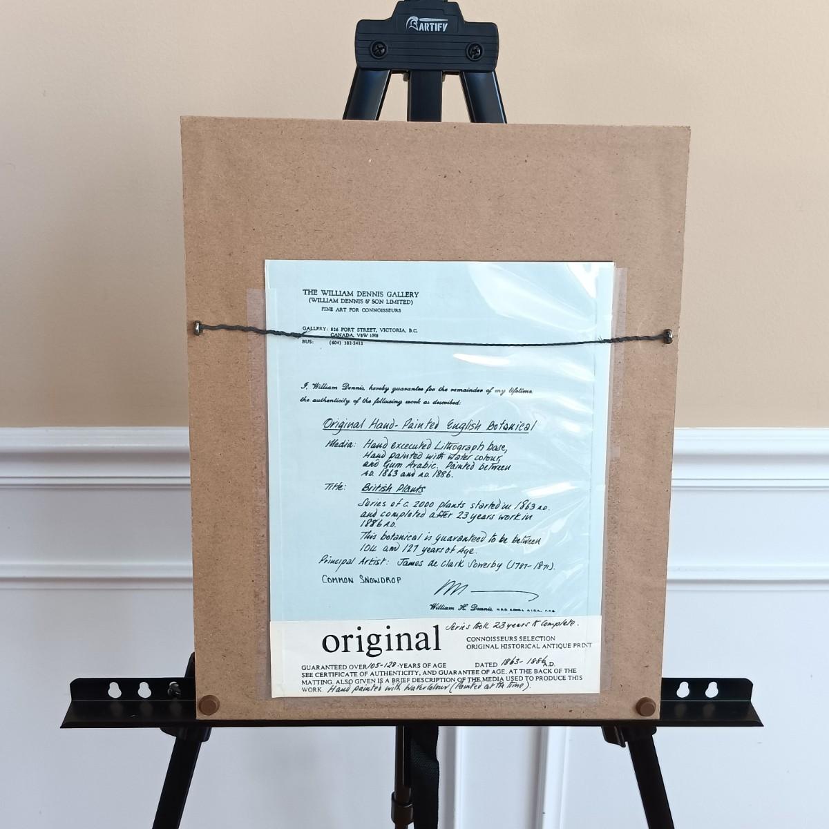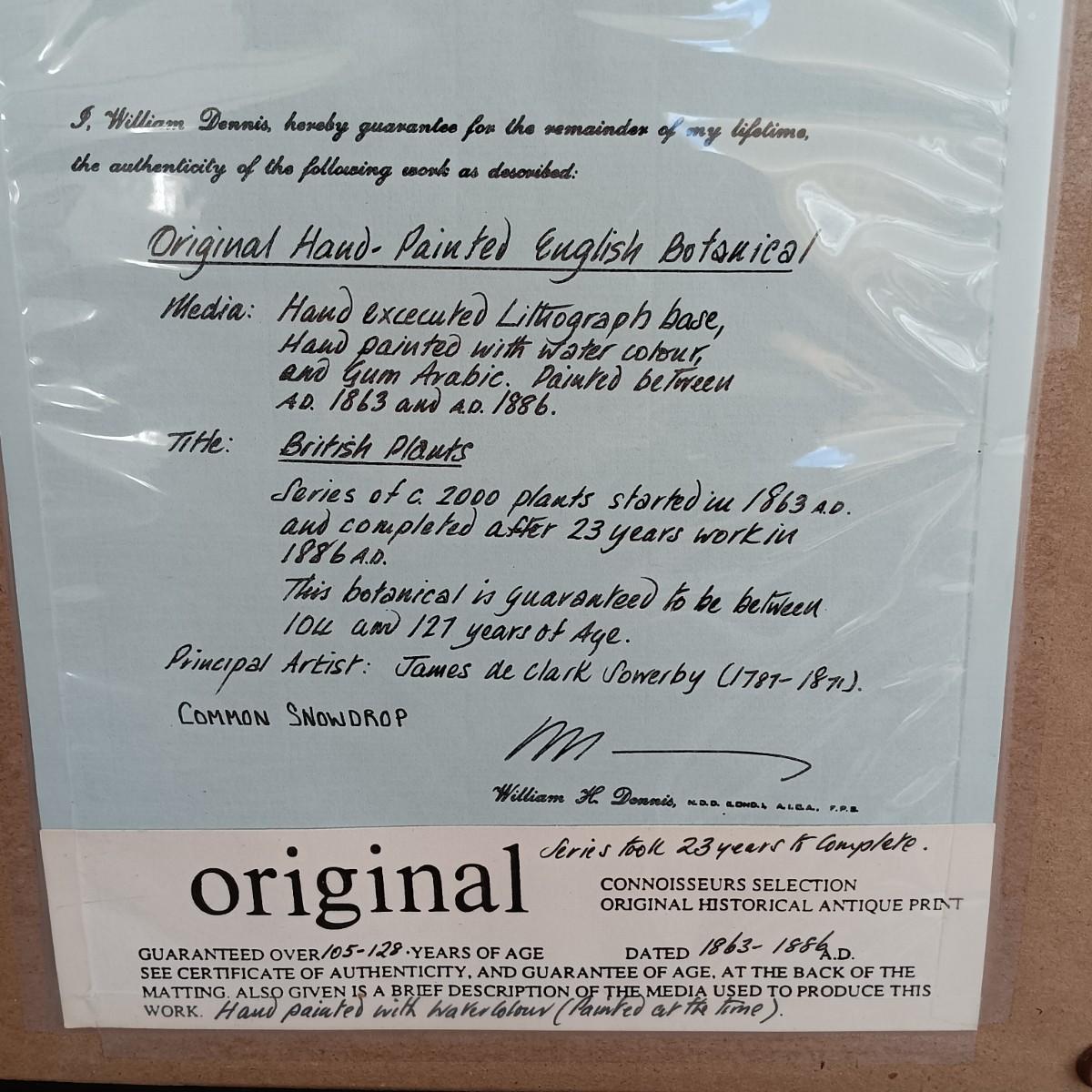 LOT 142: Antique Original Handpainted Botanical Lithograph 'Common Snowdrop' by James de Clark Sowerby with COA