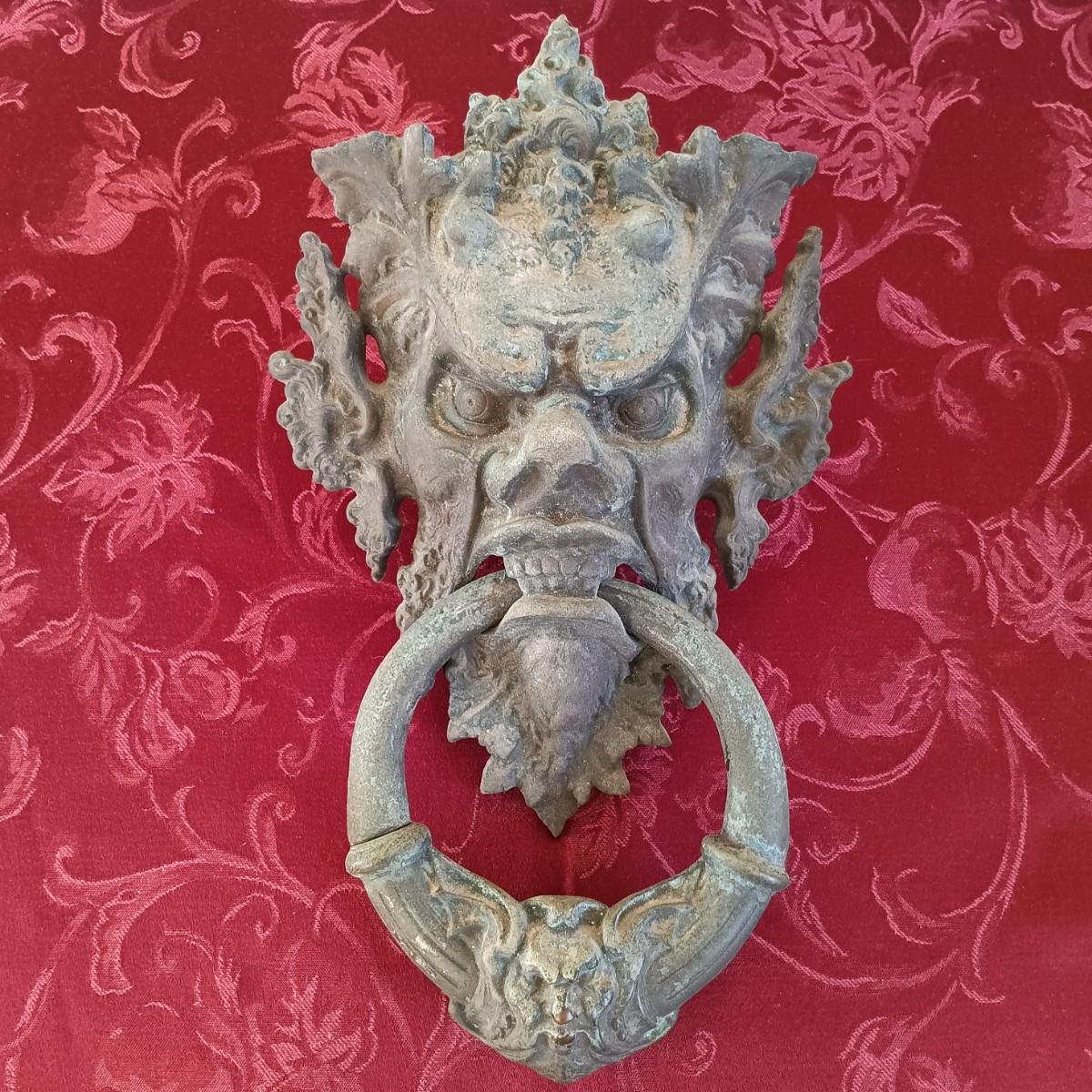 LOT 148: Antique Cast Iron Medieval Devil Face Figural Door Knocker