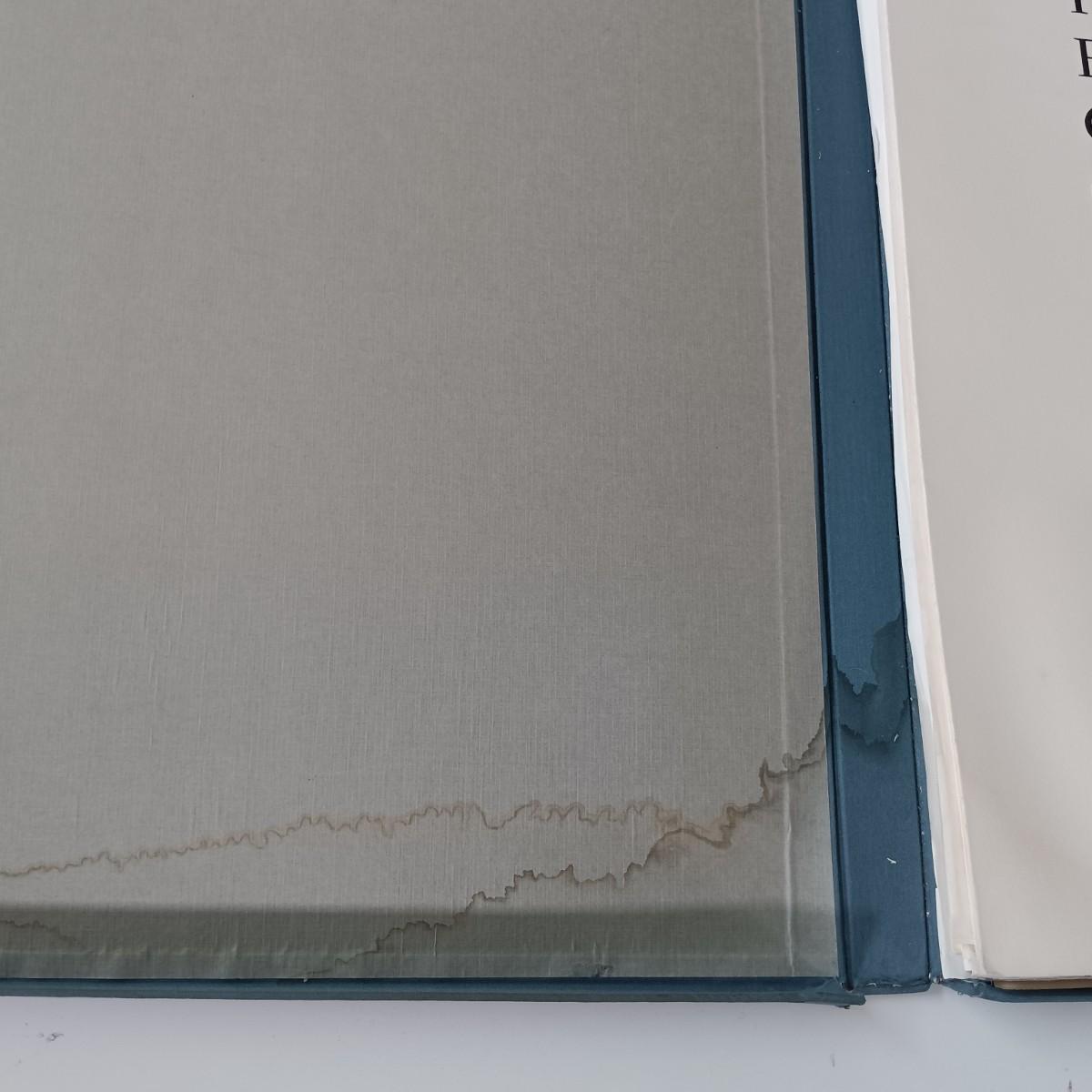 The box and some of the story pages have water damage lines, but the lithographs do not.
