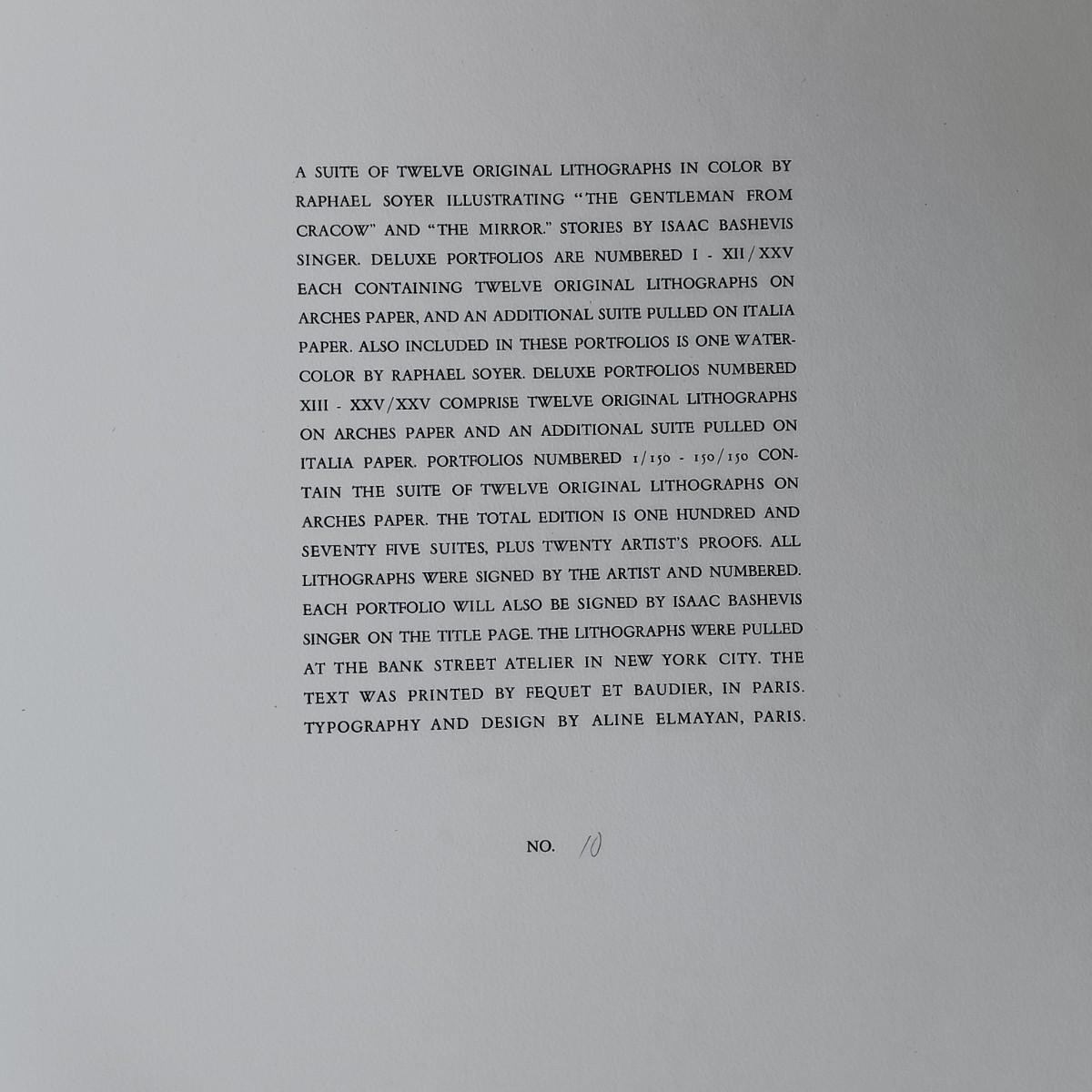 LOT 155: Signed and Numbered 1970 Raphael Soyer The Mirror and The Gentleman of Cracow Portfolio of 12 Lithograph Illustrations