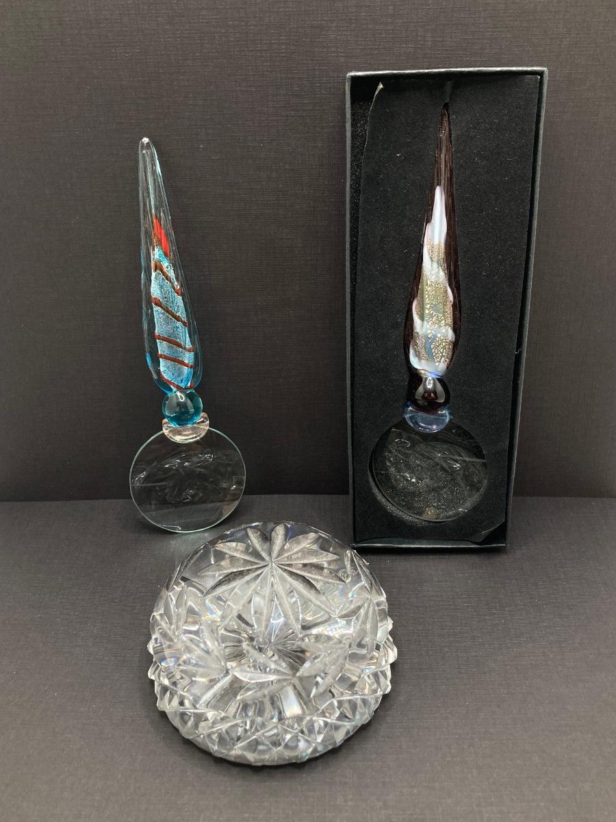 LOT 166: Va Bene Murano Glass Magnifiers and Galway Signed Crystal Paperweight