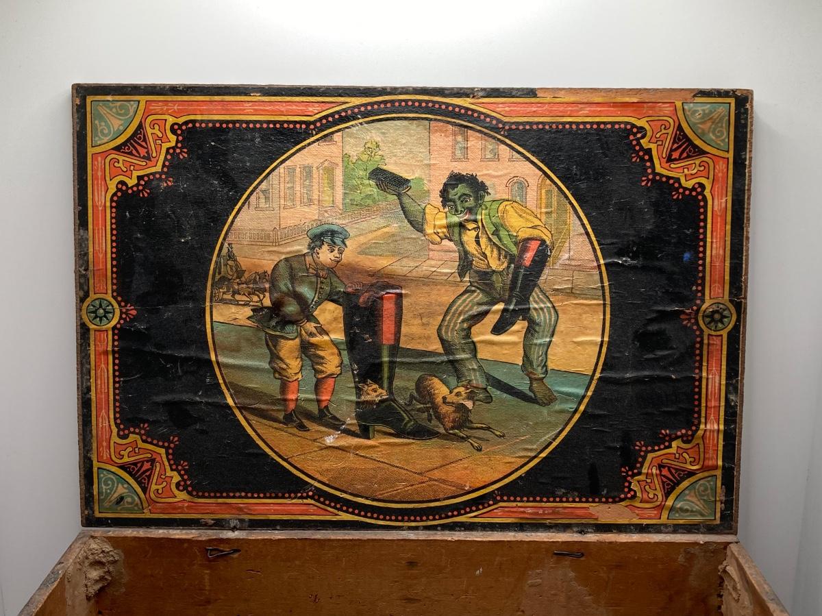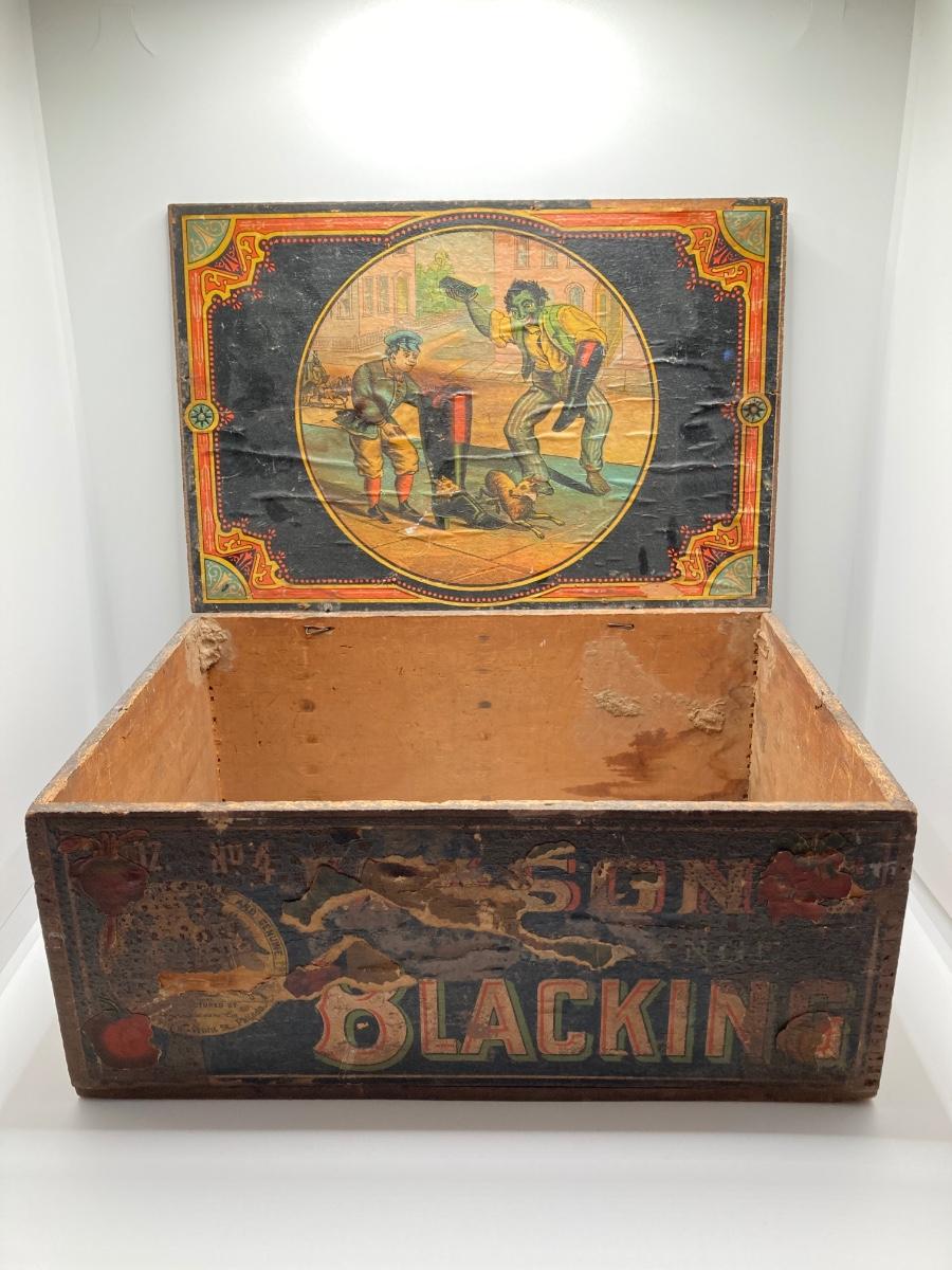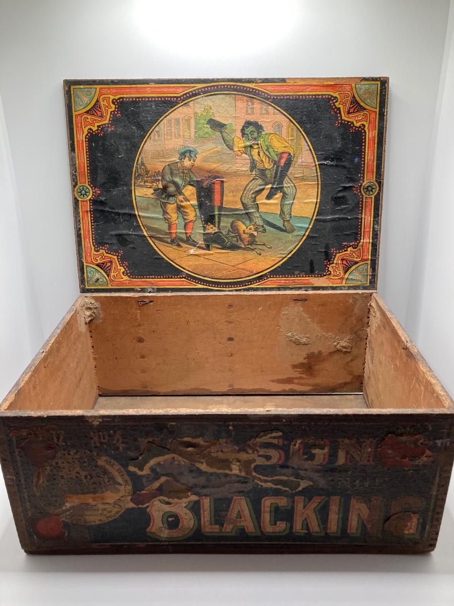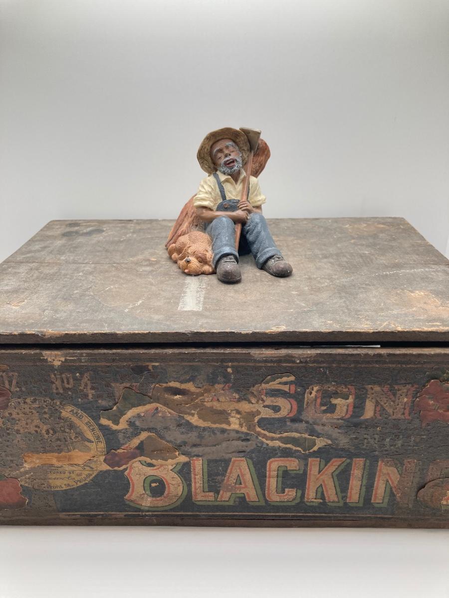 LOT 168: Black Americana Antique / Vintage Shoe Shine Box and Vantage Point Black American Worker Figurine