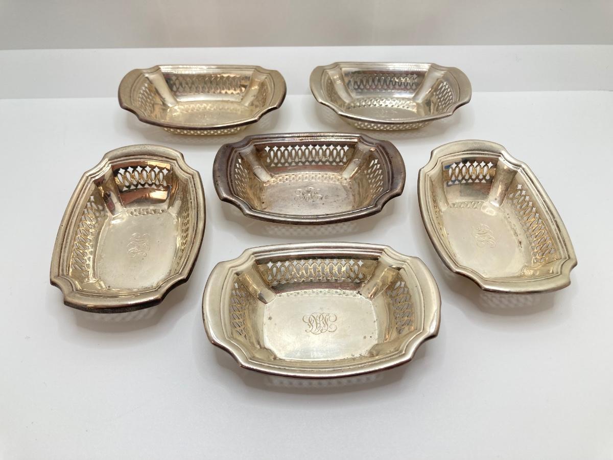LOT 171: Set of Six Monogrammed Gorham Sterling Miniature Baskets - TW 110.61g