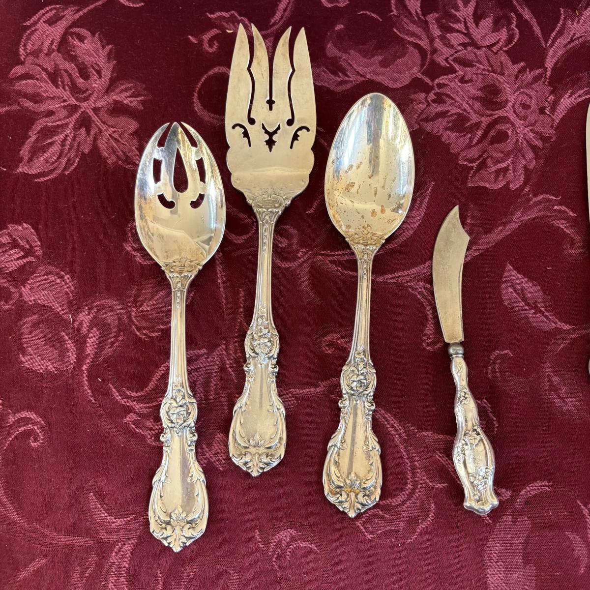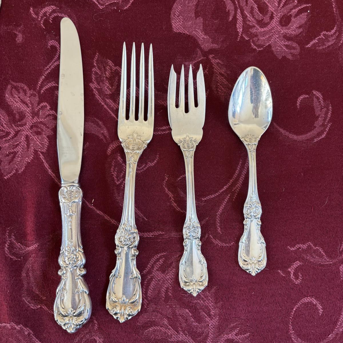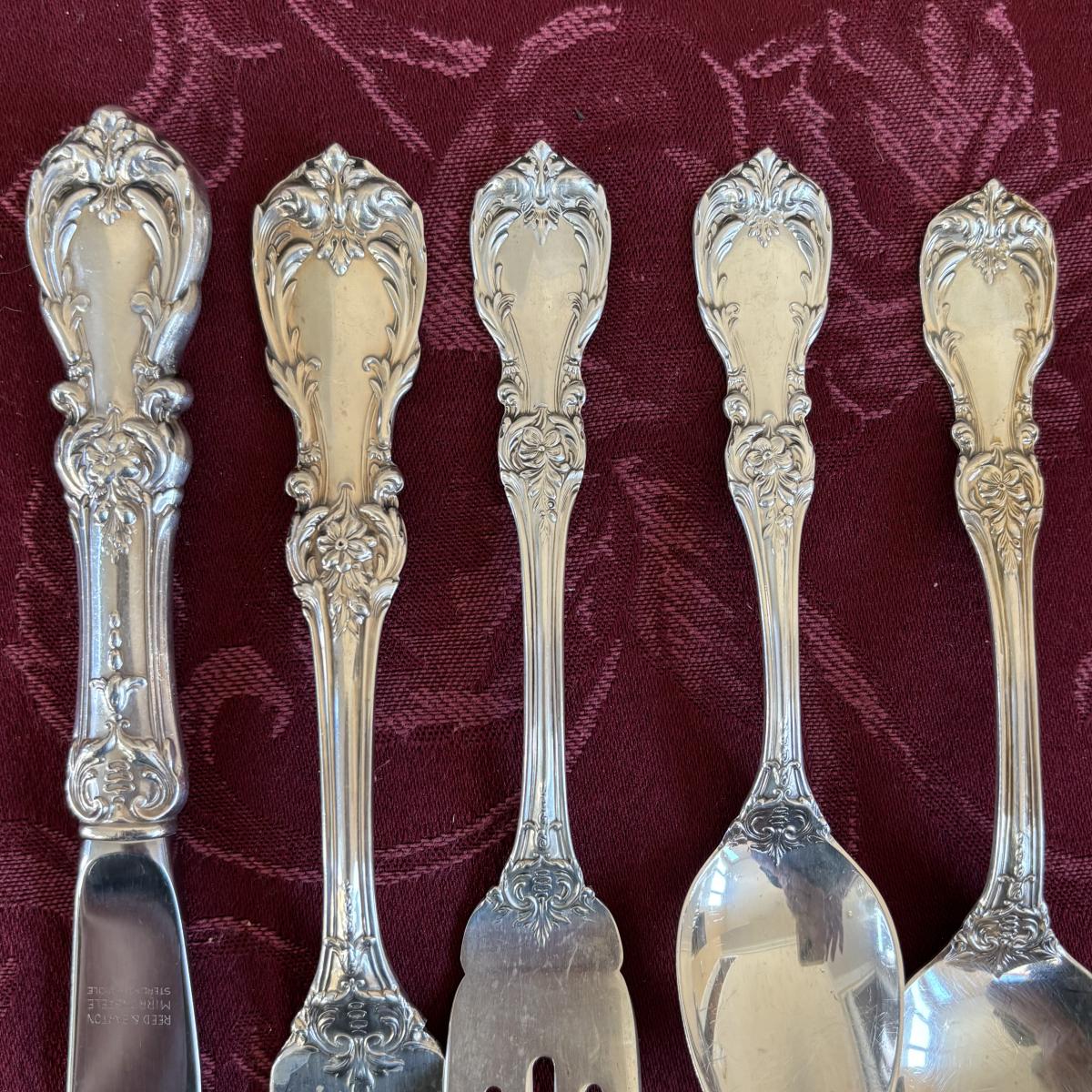 LOT 179: Vintage Reed and Barton Sterling "Burgundy" Flatware Set - TW 4269.89g