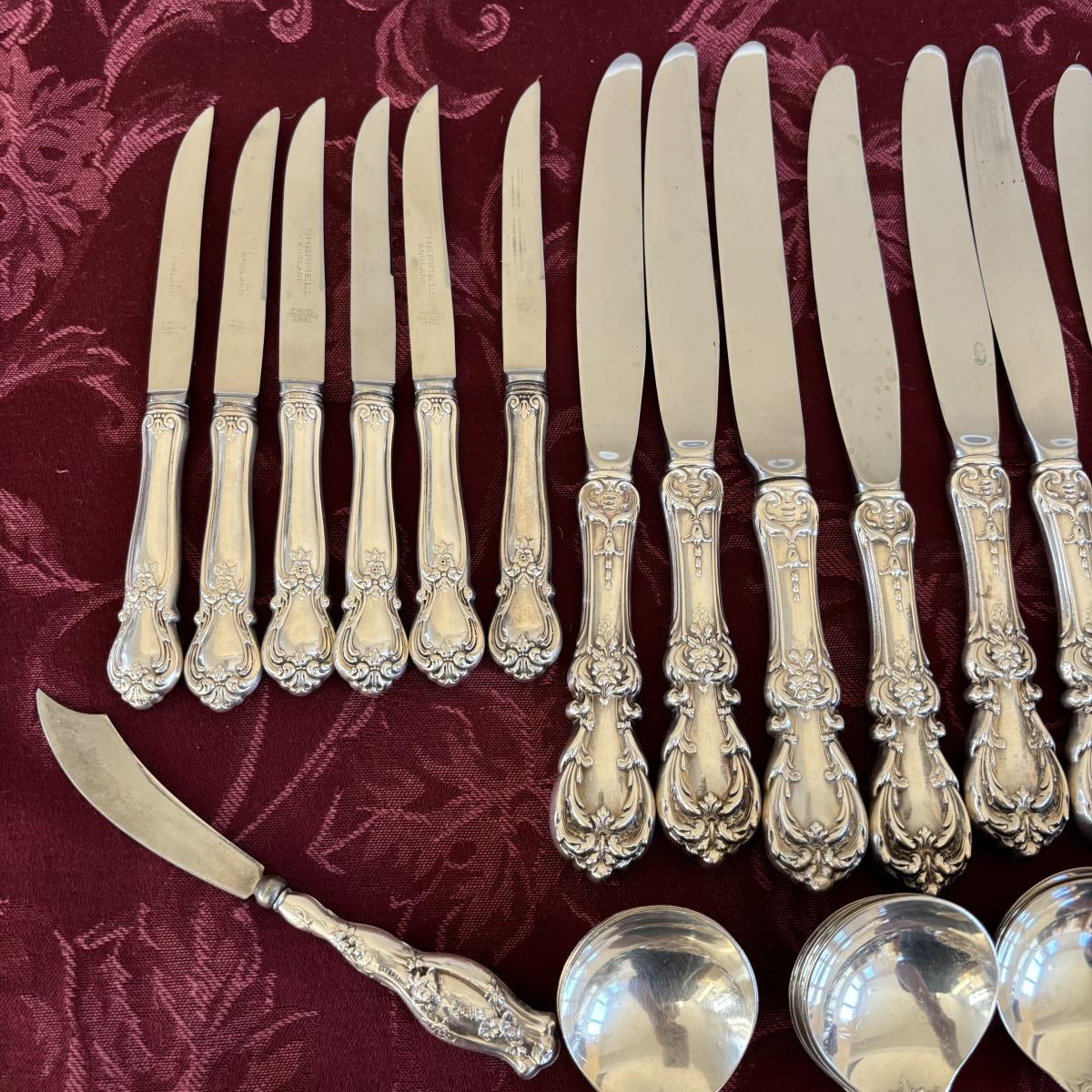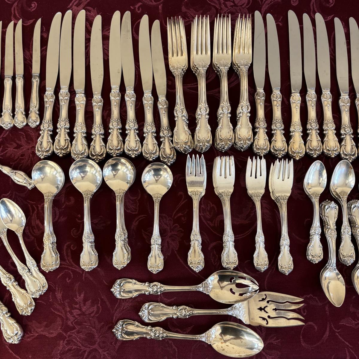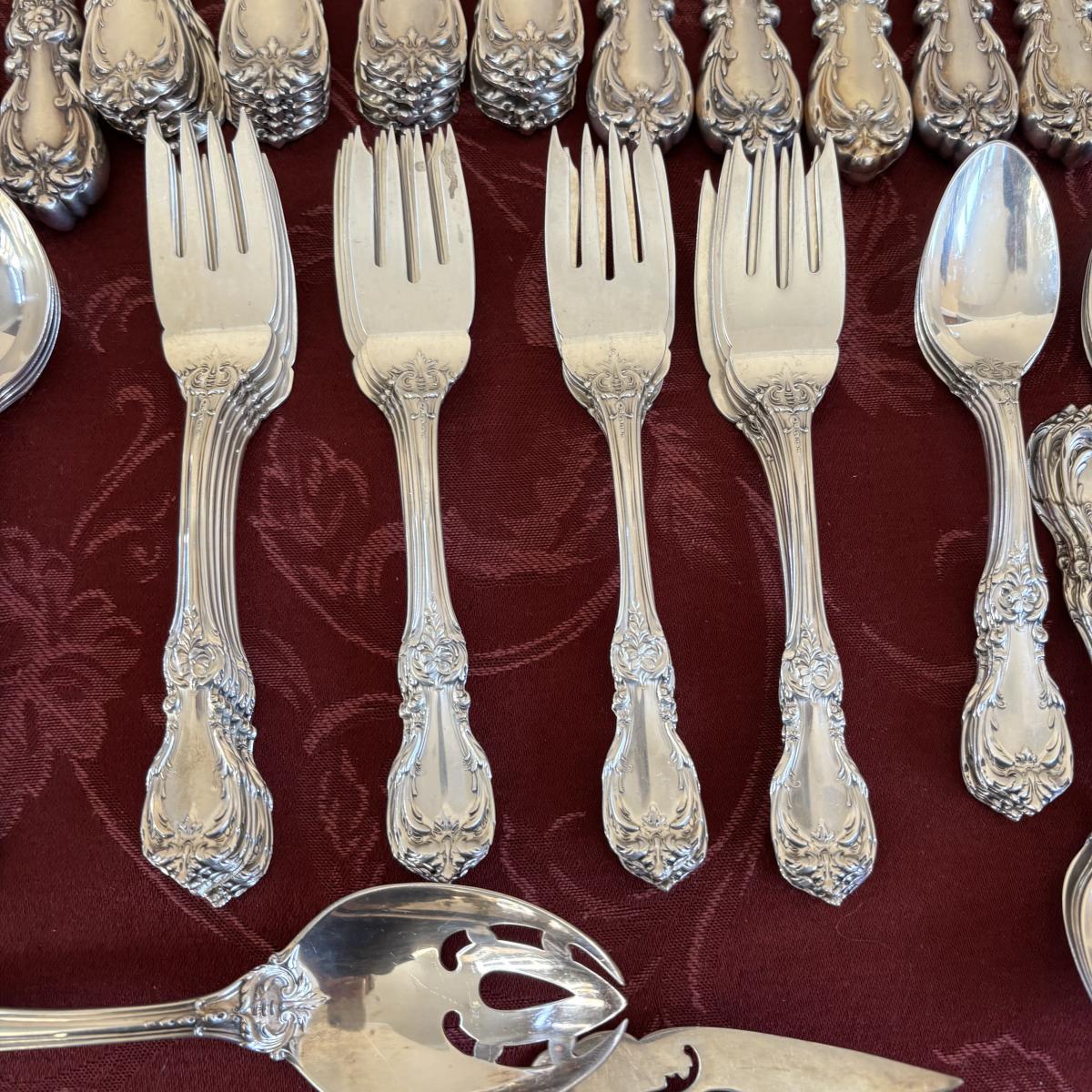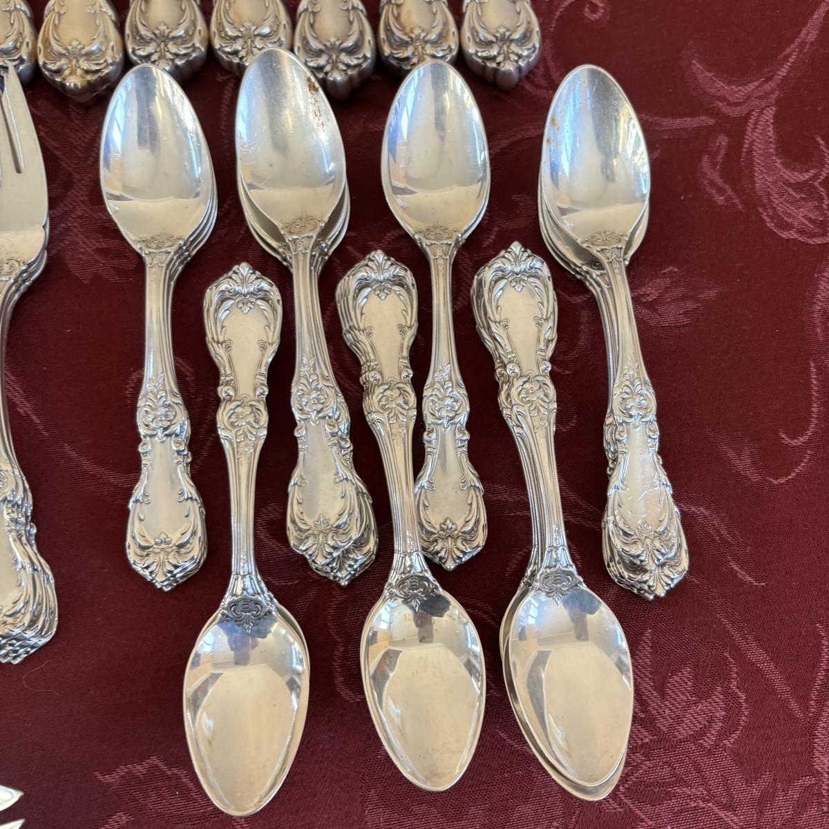 LOT 179: Vintage Reed and Barton Sterling "Burgundy" Flatware Set - TW 4269.89g