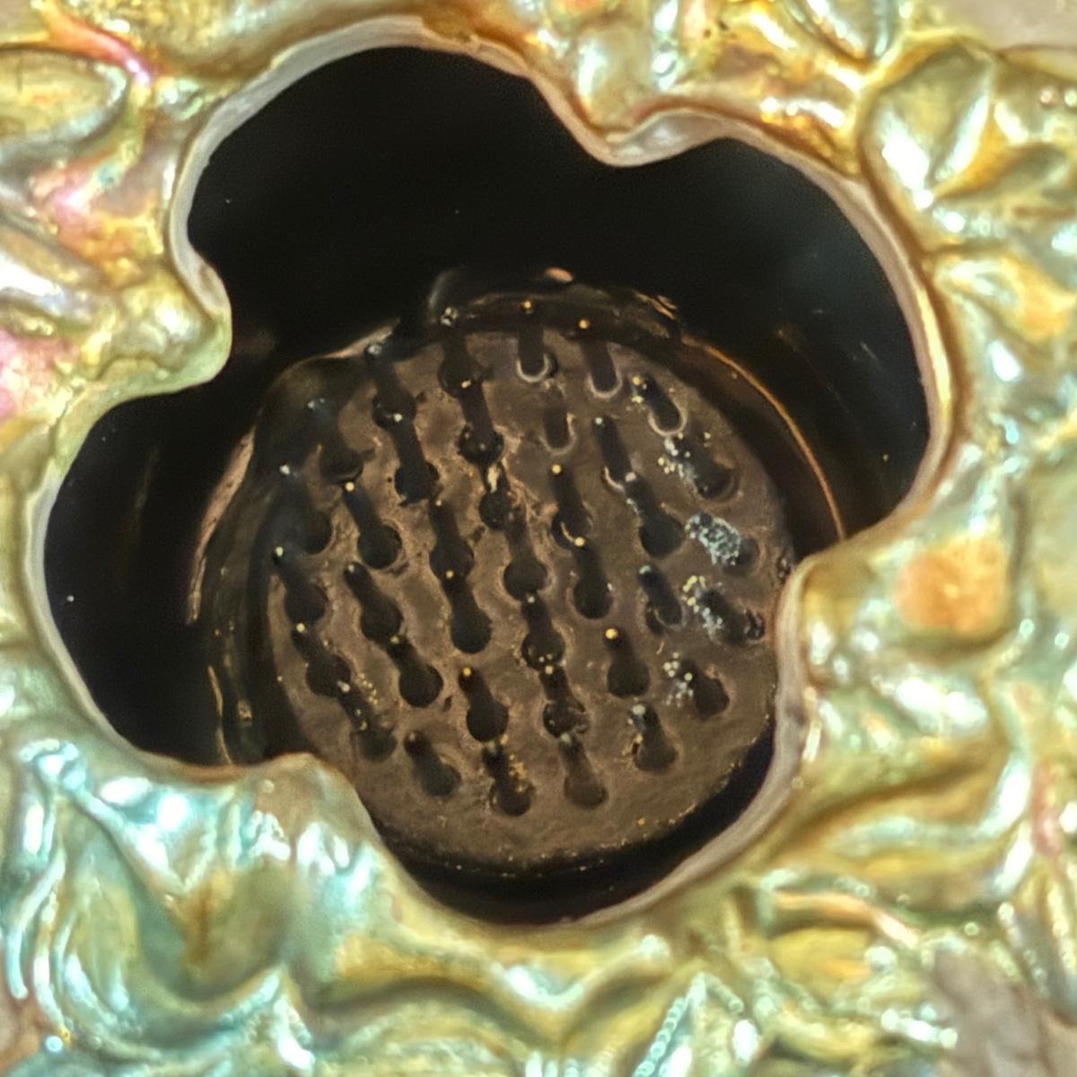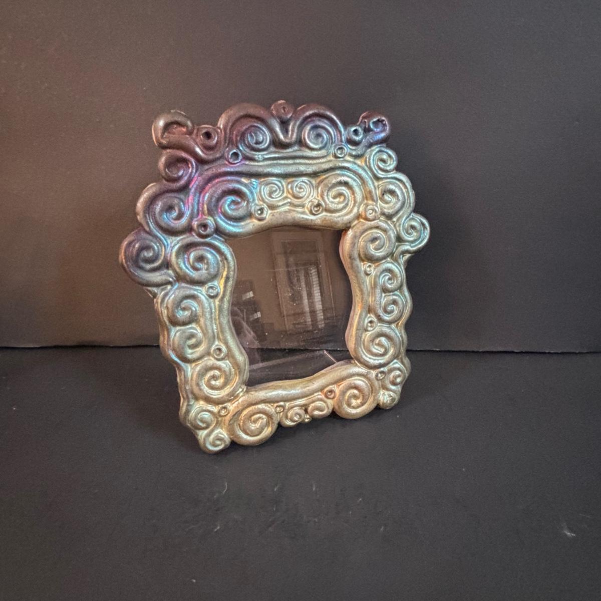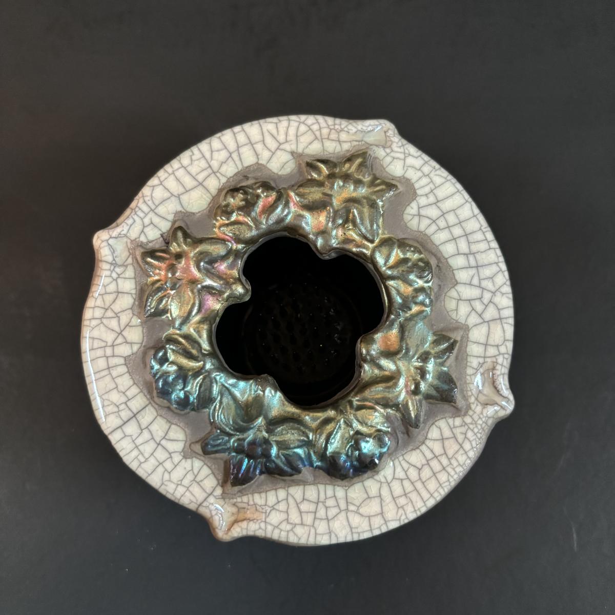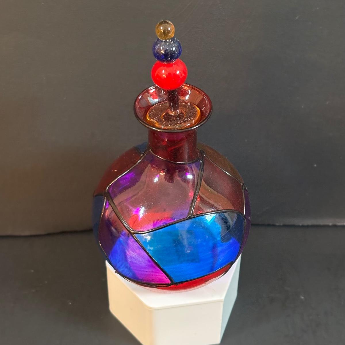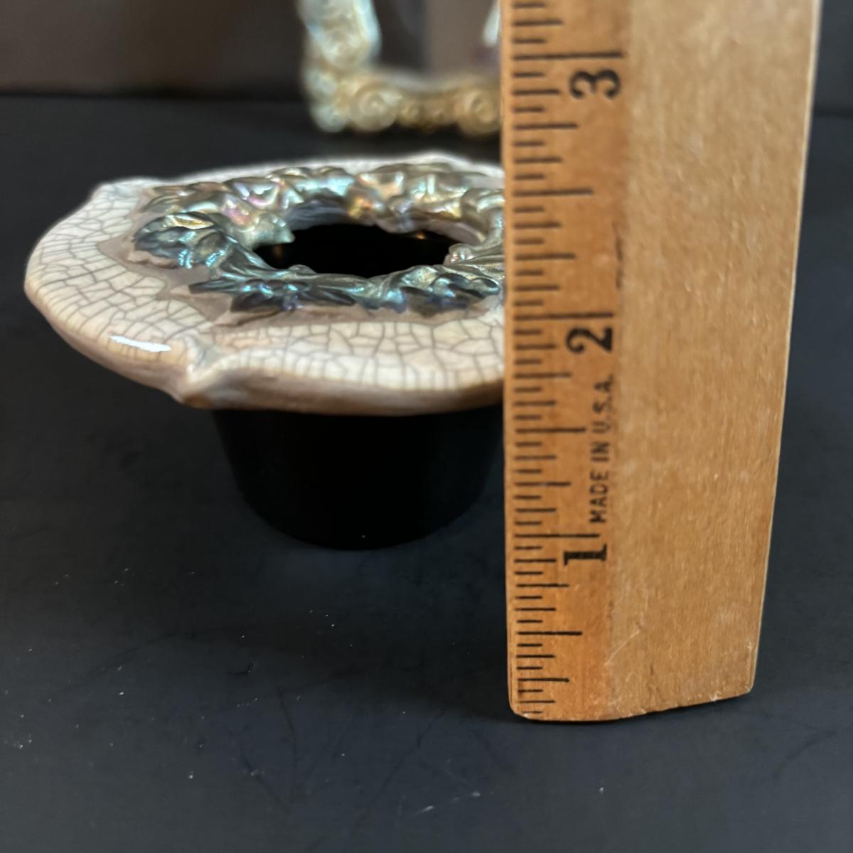LOT 190: Raku Art Studio Pottery Floral Vases w/Flower Frog & Picture Frame, Hand Blown Flame Glow Glass Mosiac Perfume Bottle, Mosiac Heart Paperweight