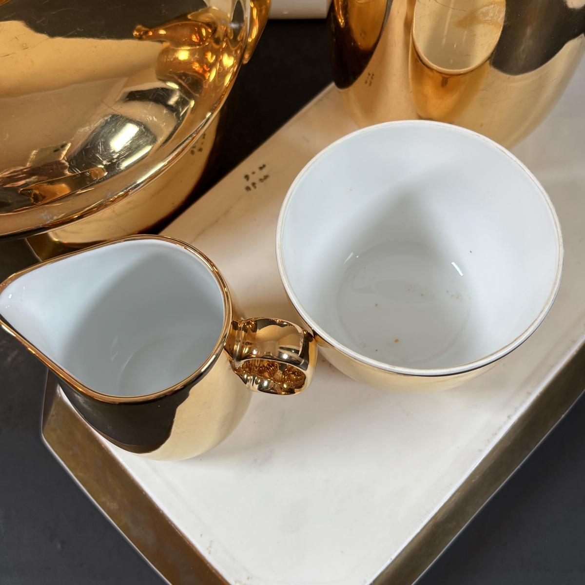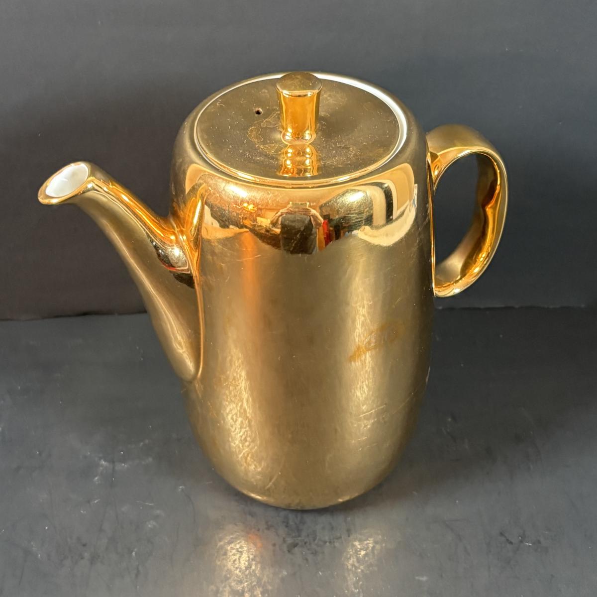 LOT 202 Royal Worcester Gold Lustre Coffee Pot, Creamer & Sugar, Fireproof Casserole Shape 23 Size 7 1/2 & Rectangular Baking Dishes