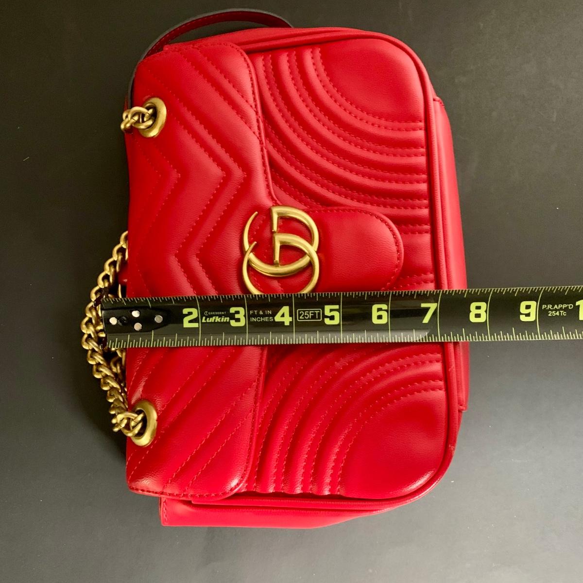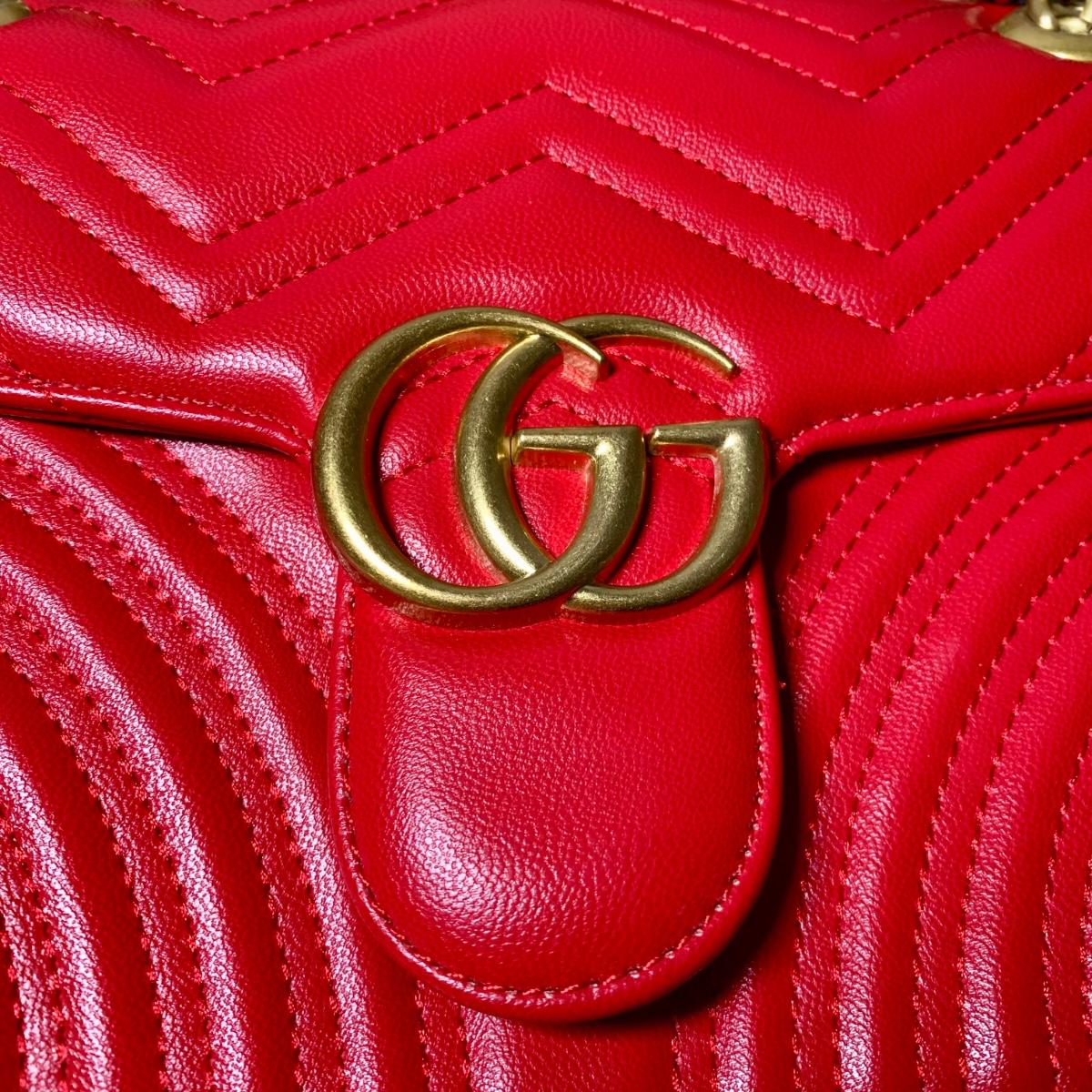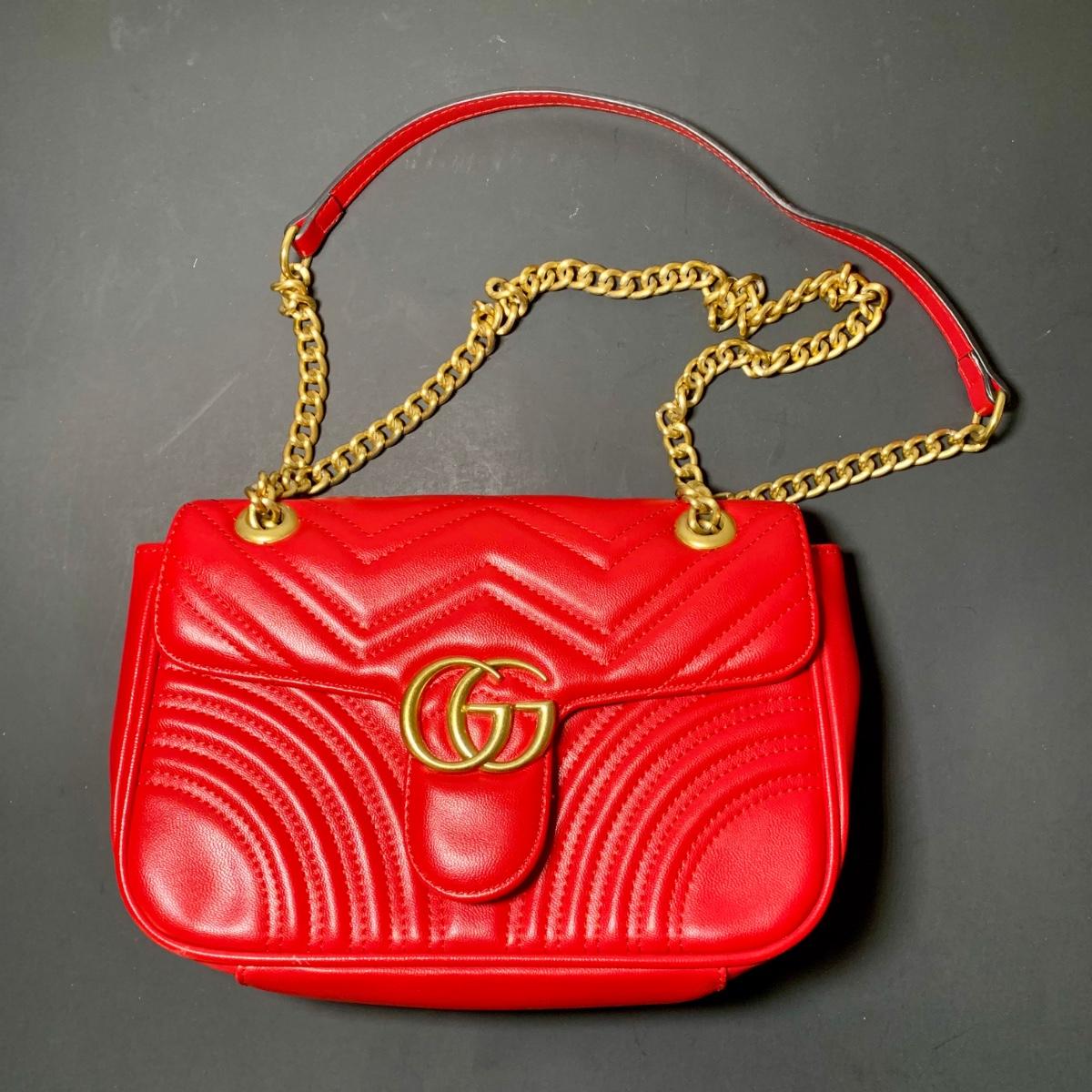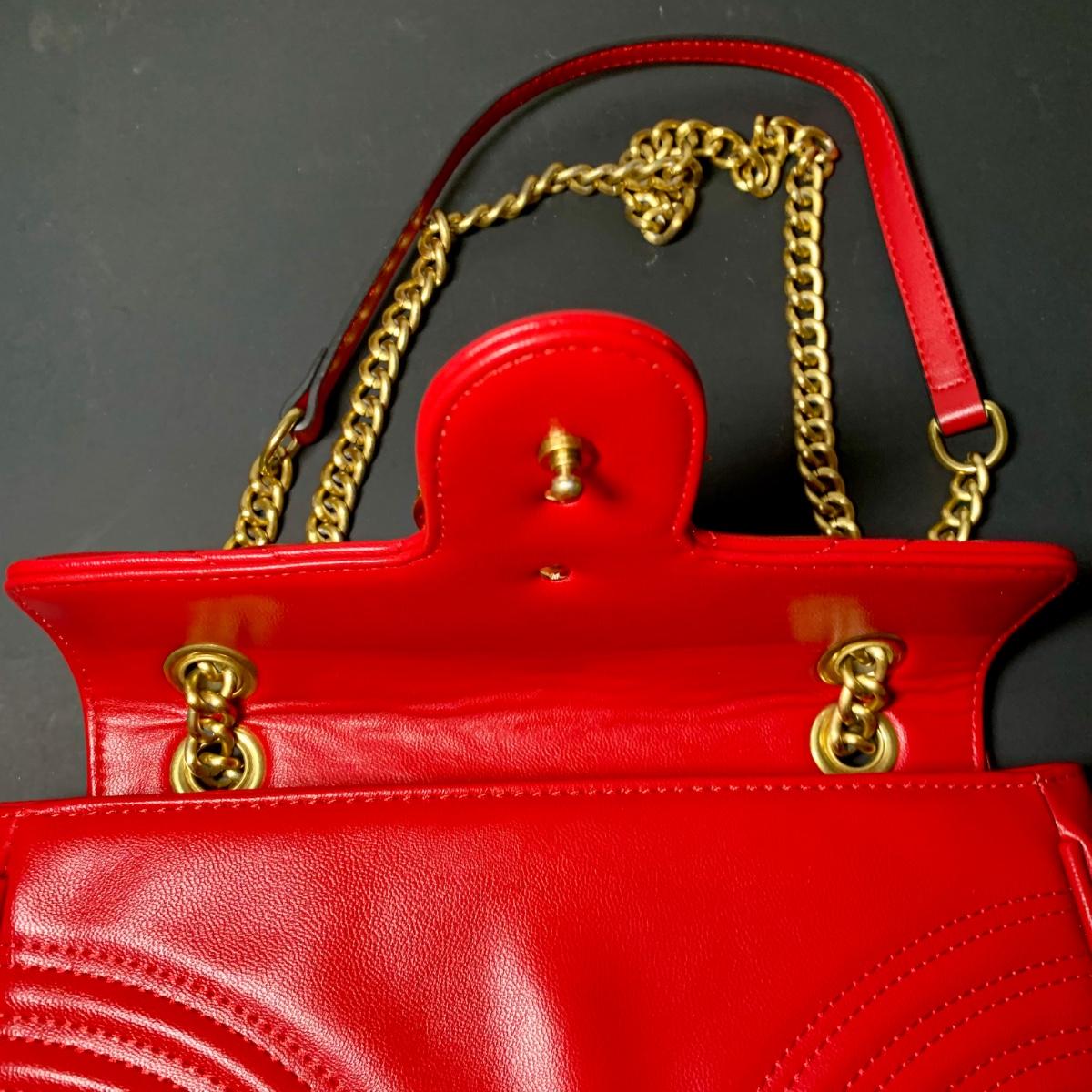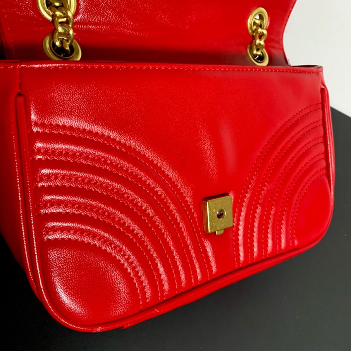 LOT 21 L: Gucci Red Marmont Matelase Shoulder Bag in Hibiscus Red Calfskin Leather w/ Suede Interior