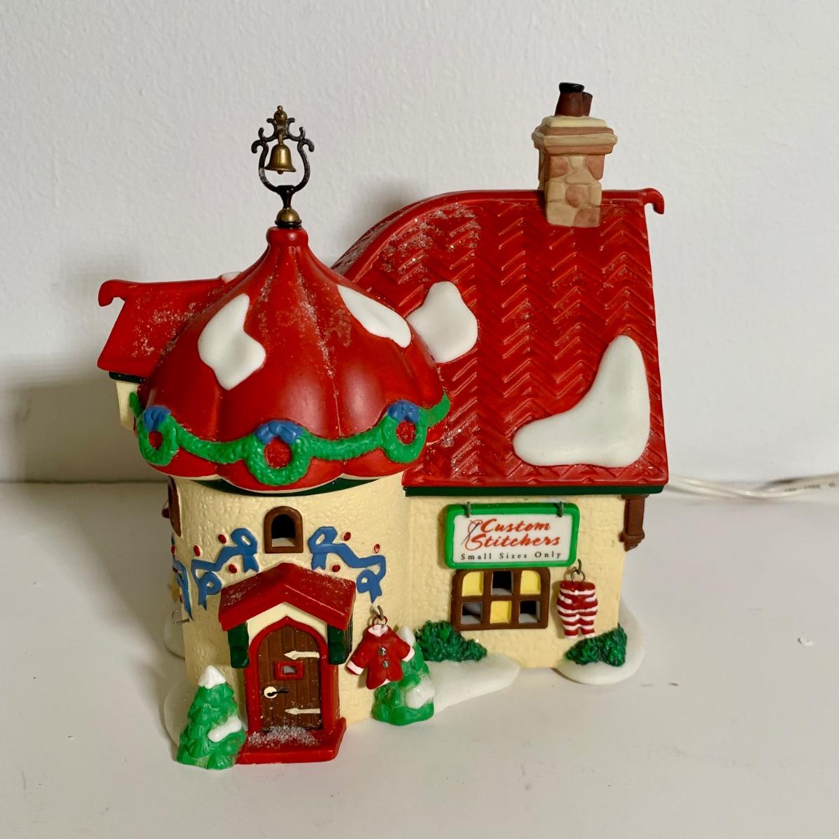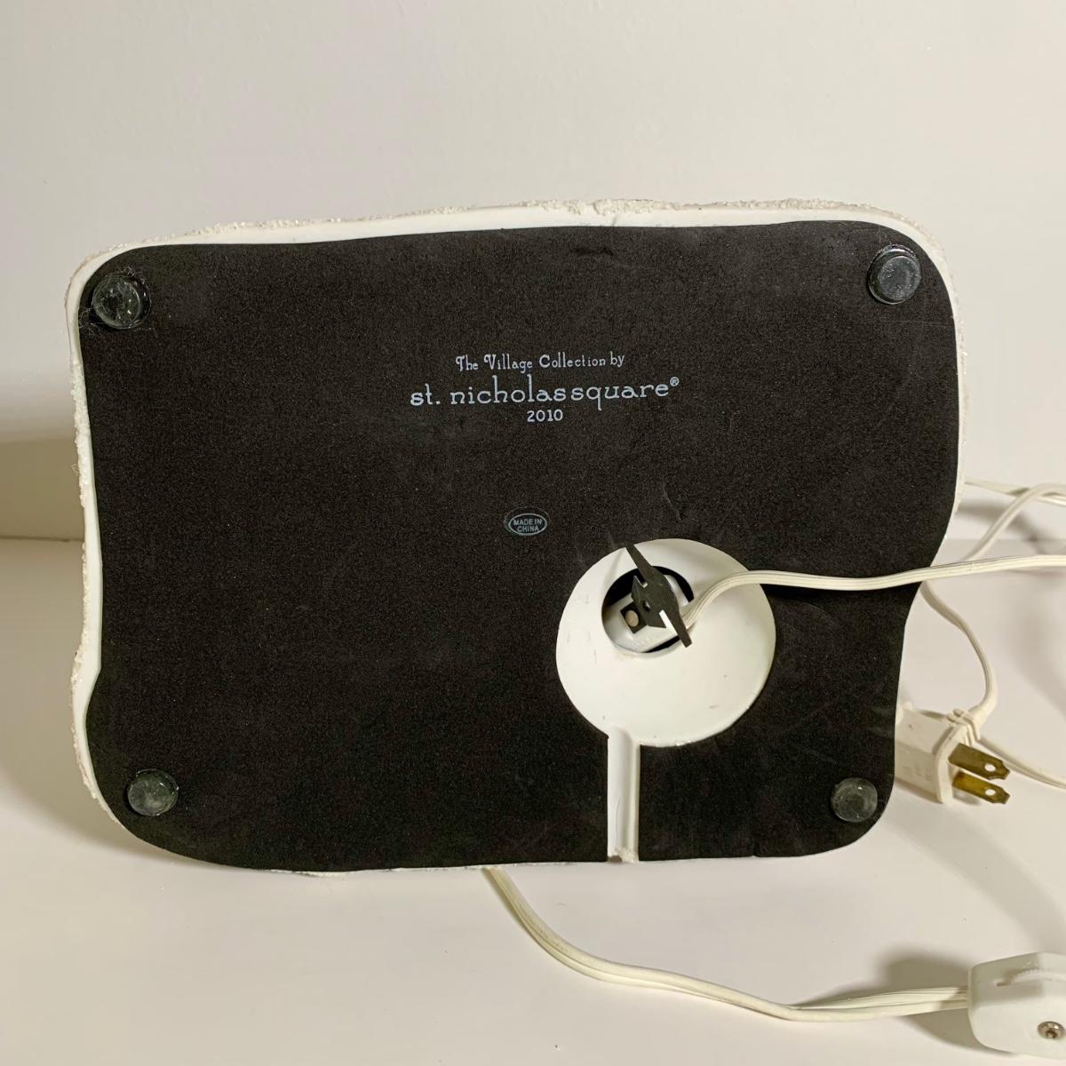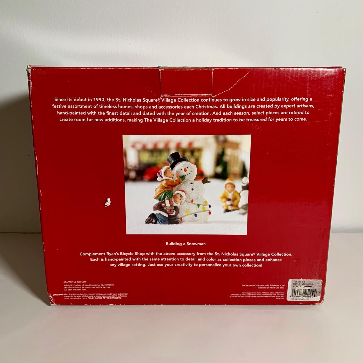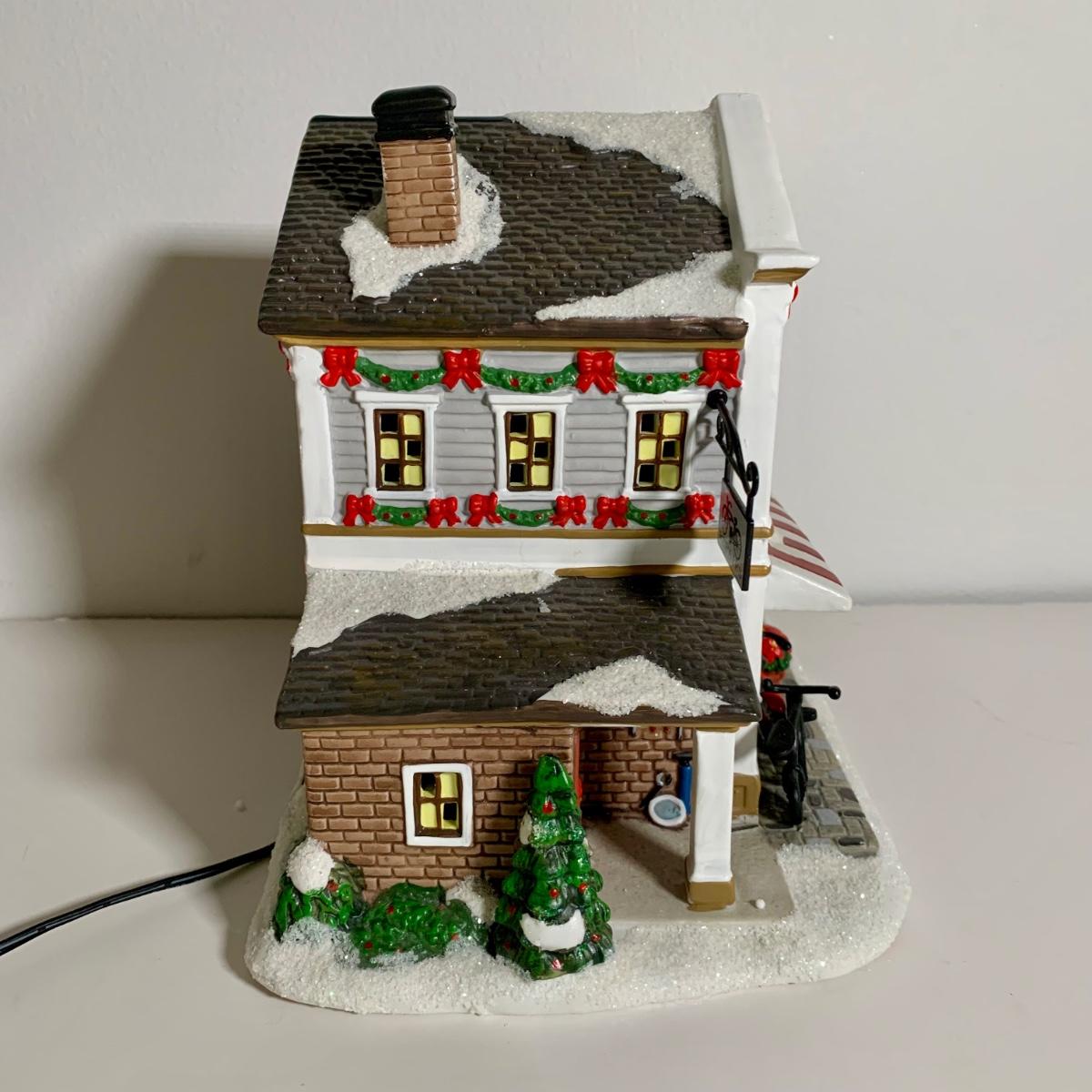 LOT 25 L: St. Nicholas Square Illuminated 2009 "Ryan's Bicycle Shop", 2010 "The Coffee Grounds", Department 56 1992 "Post Office", & 1998 "Custom Stitchers"