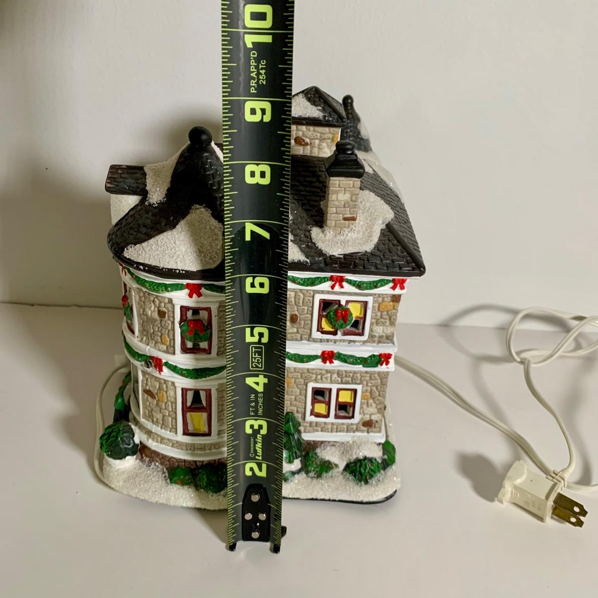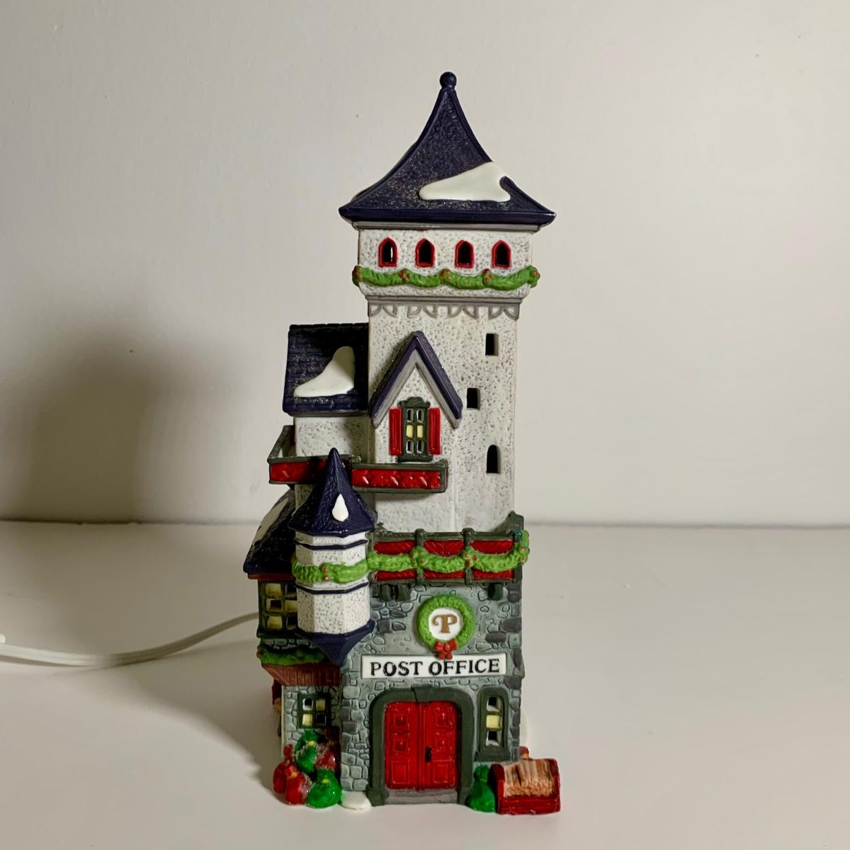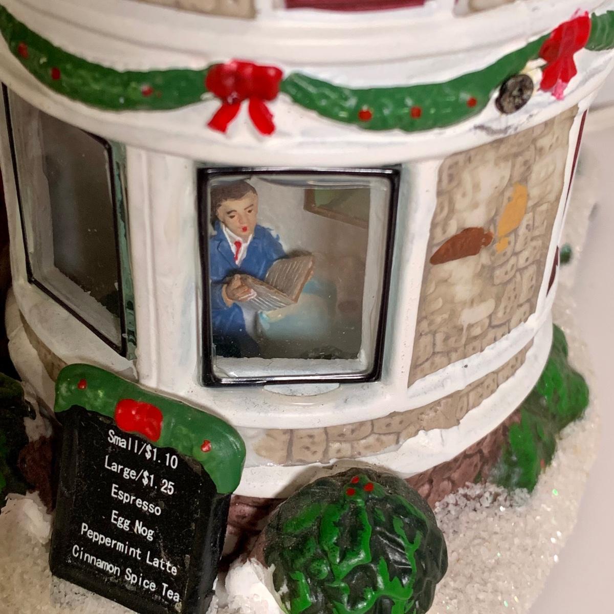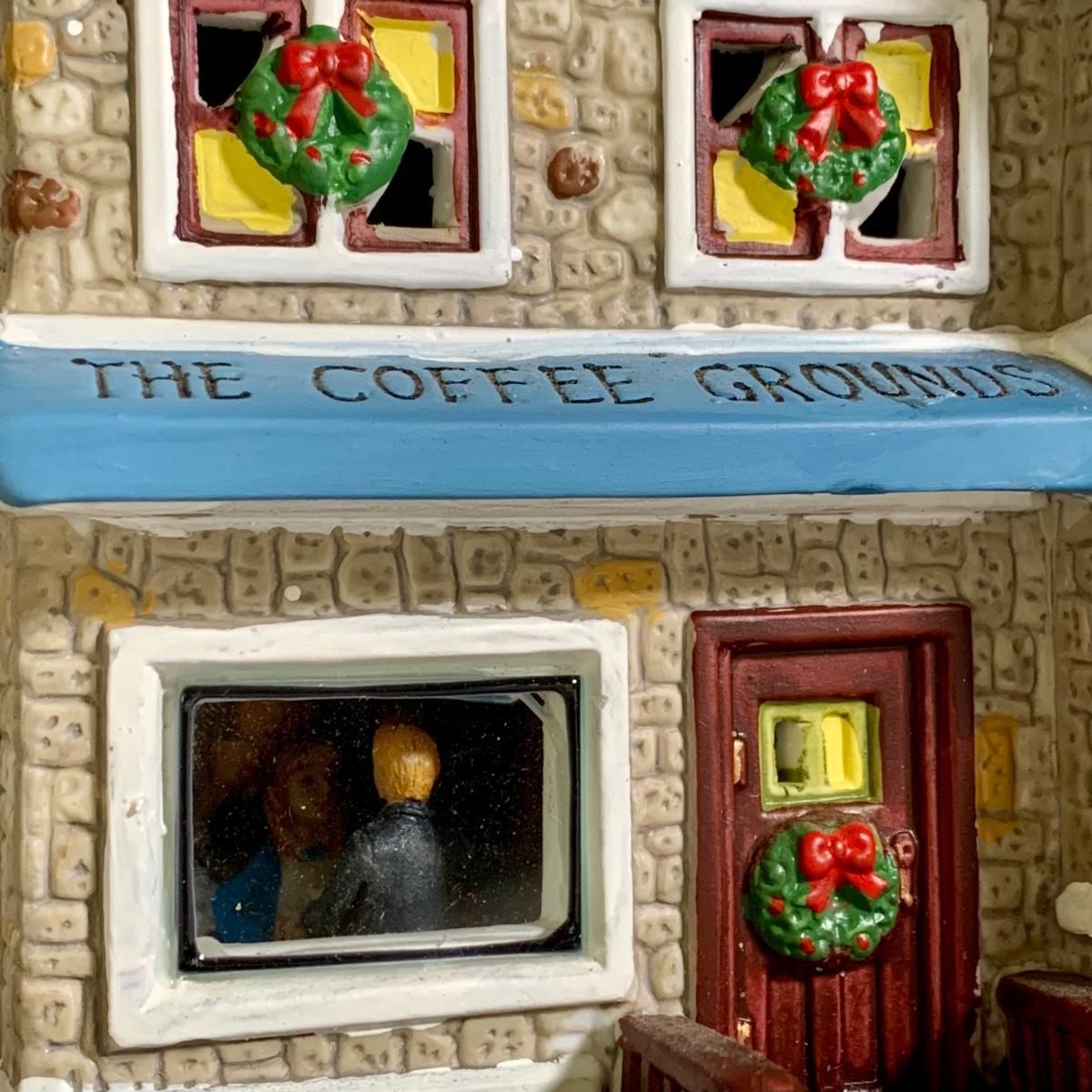 LOT 25 L: St. Nicholas Square Illuminated 2009 "Ryan's Bicycle Shop", 2010 "The Coffee Grounds", Department 56 1992 "Post Office", & 1998 "Custom Stitchers"