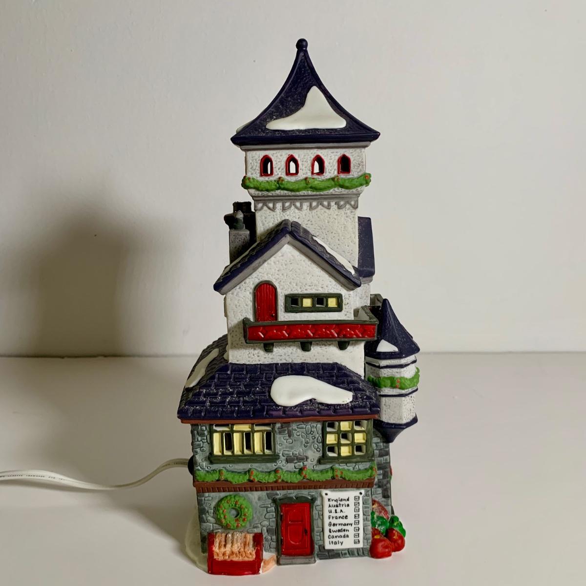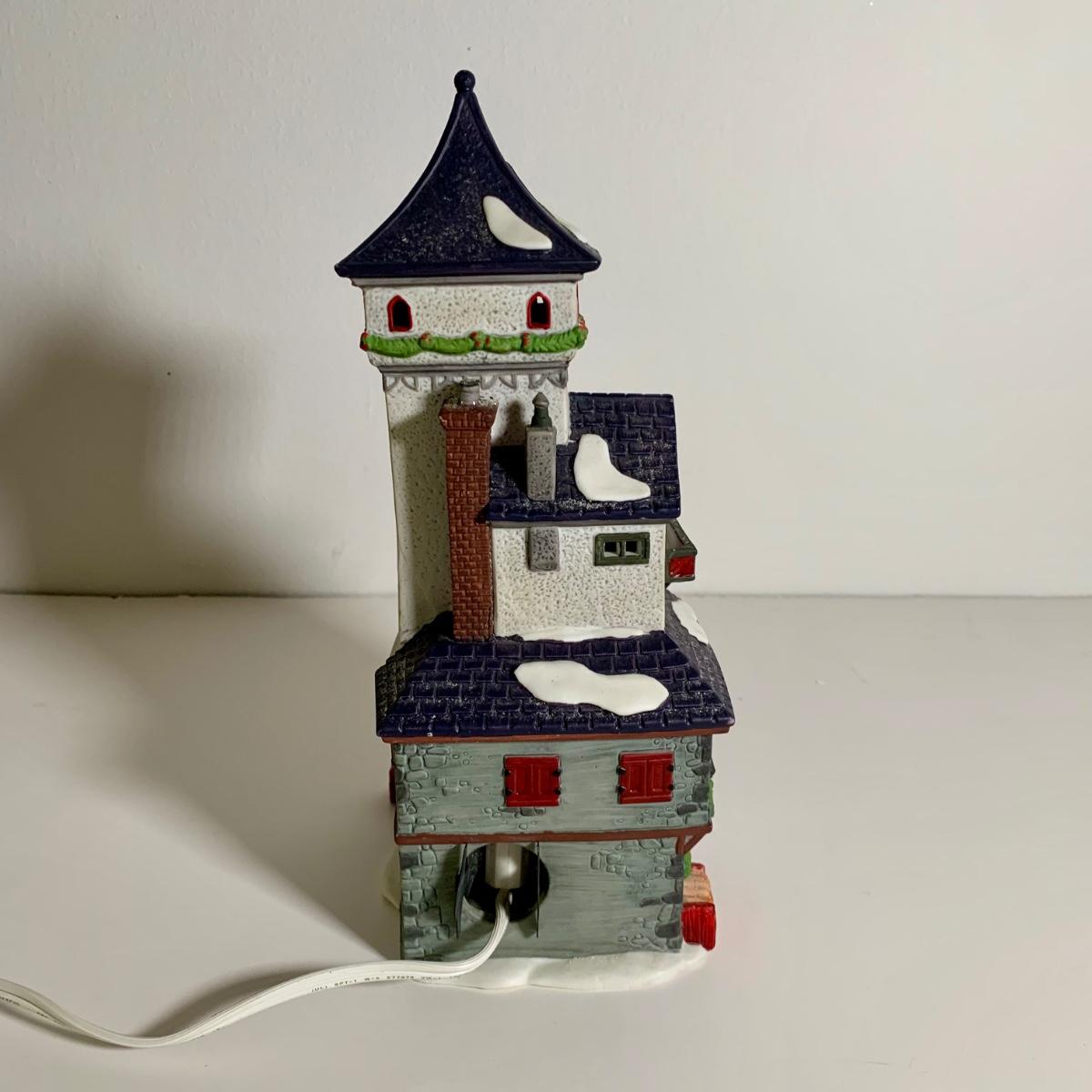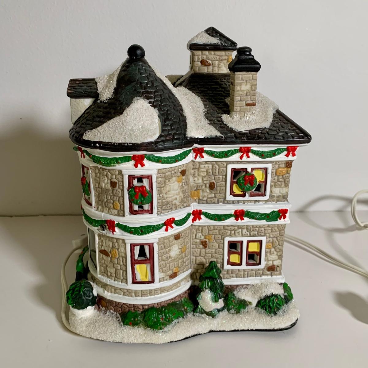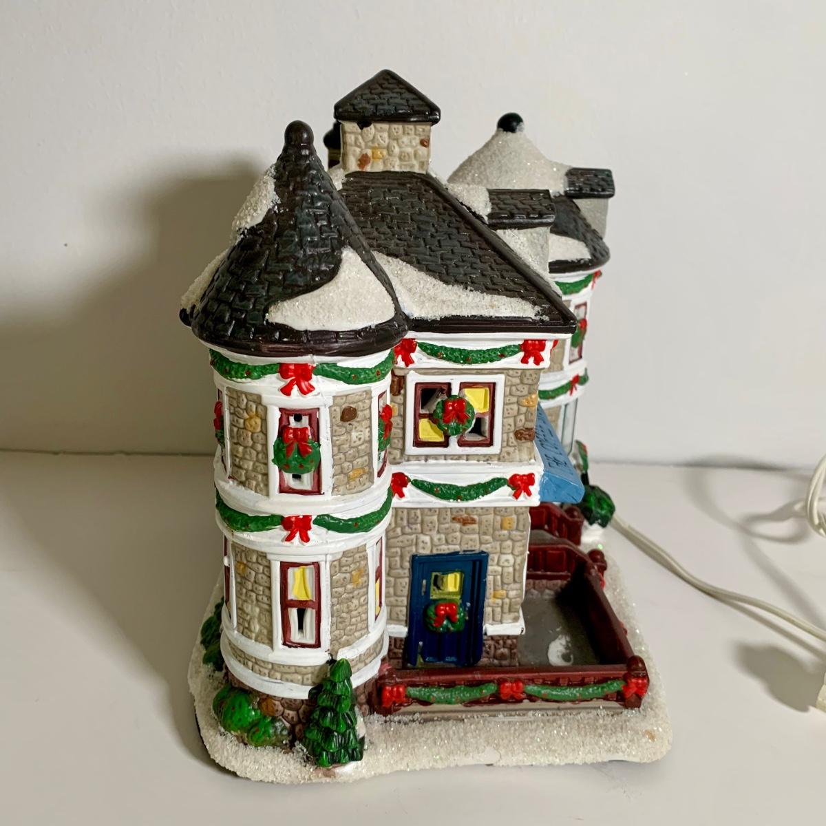 LOT 25 L: St. Nicholas Square Illuminated 2009 "Ryan's Bicycle Shop", 2010 "The Coffee Grounds", Department 56 1992 "Post Office", & 1998 "Custom Stitchers"