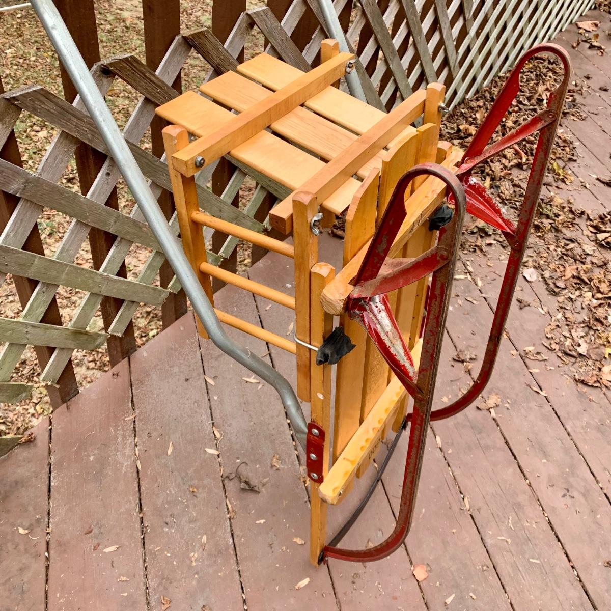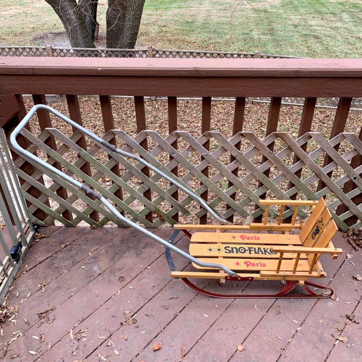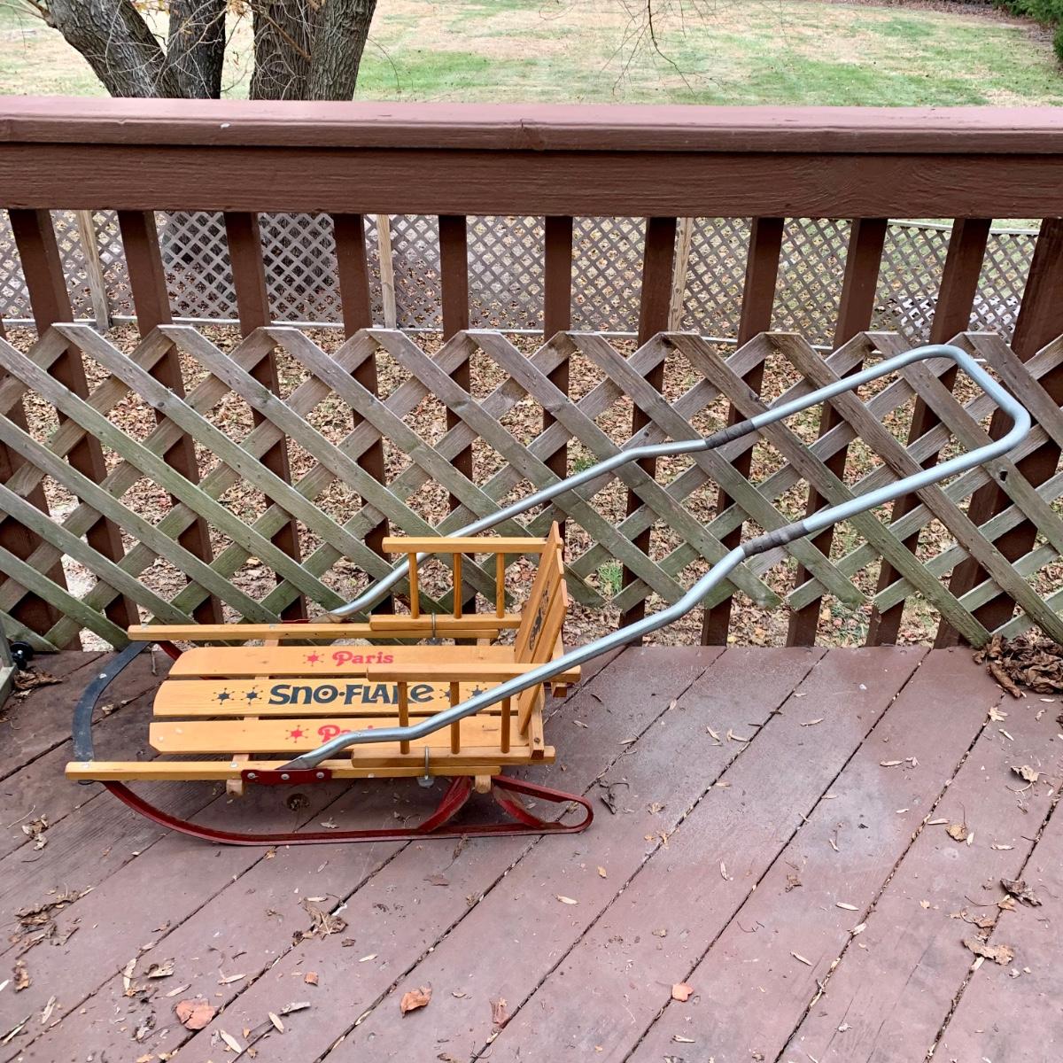 LOT 33 L: Vintage Paris Sno-Flake Wooden Children's Sled w/ Aluminium Handle