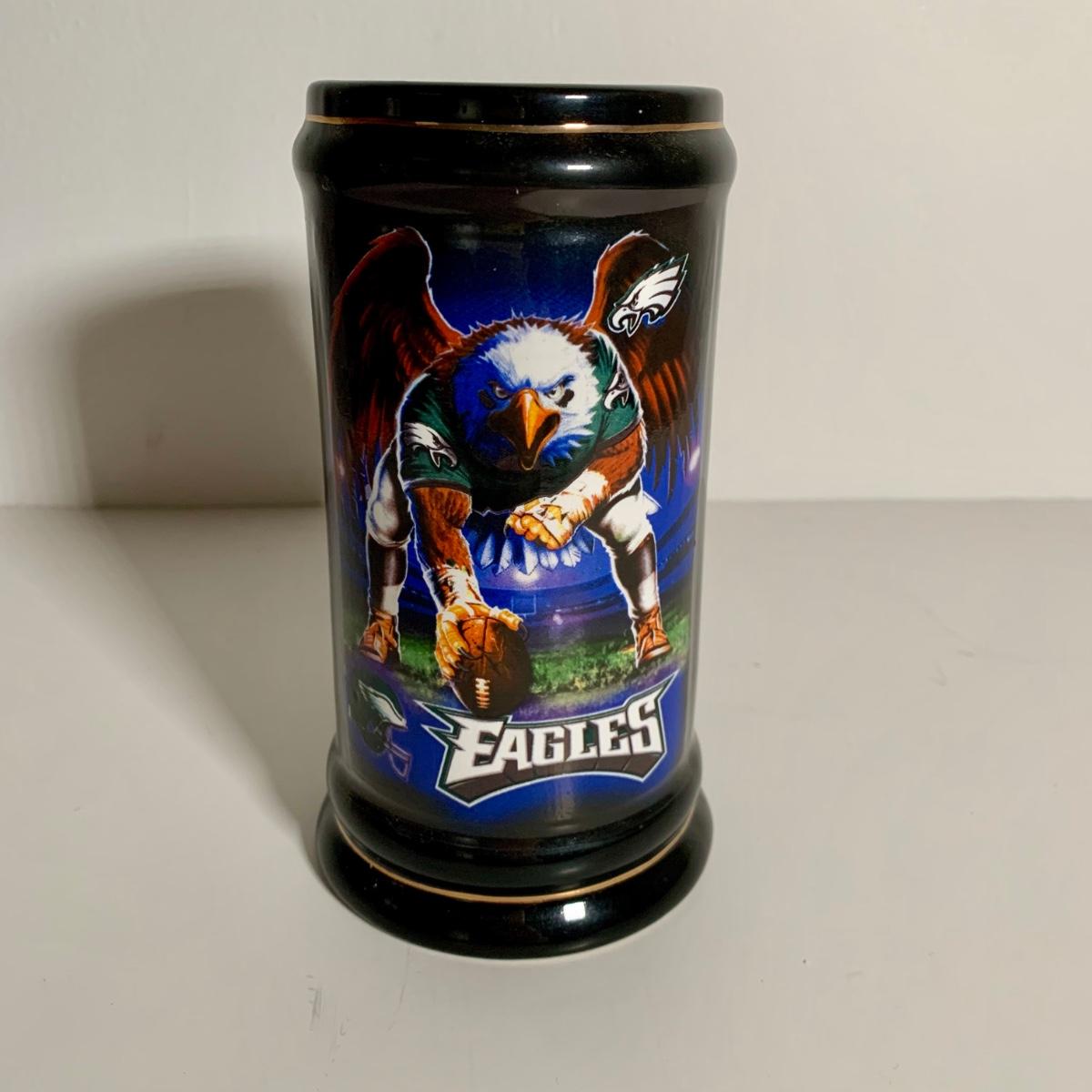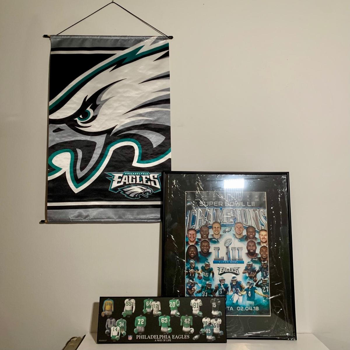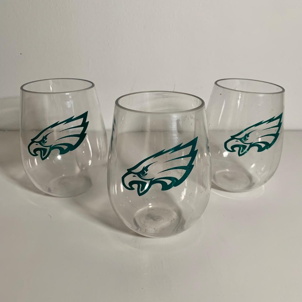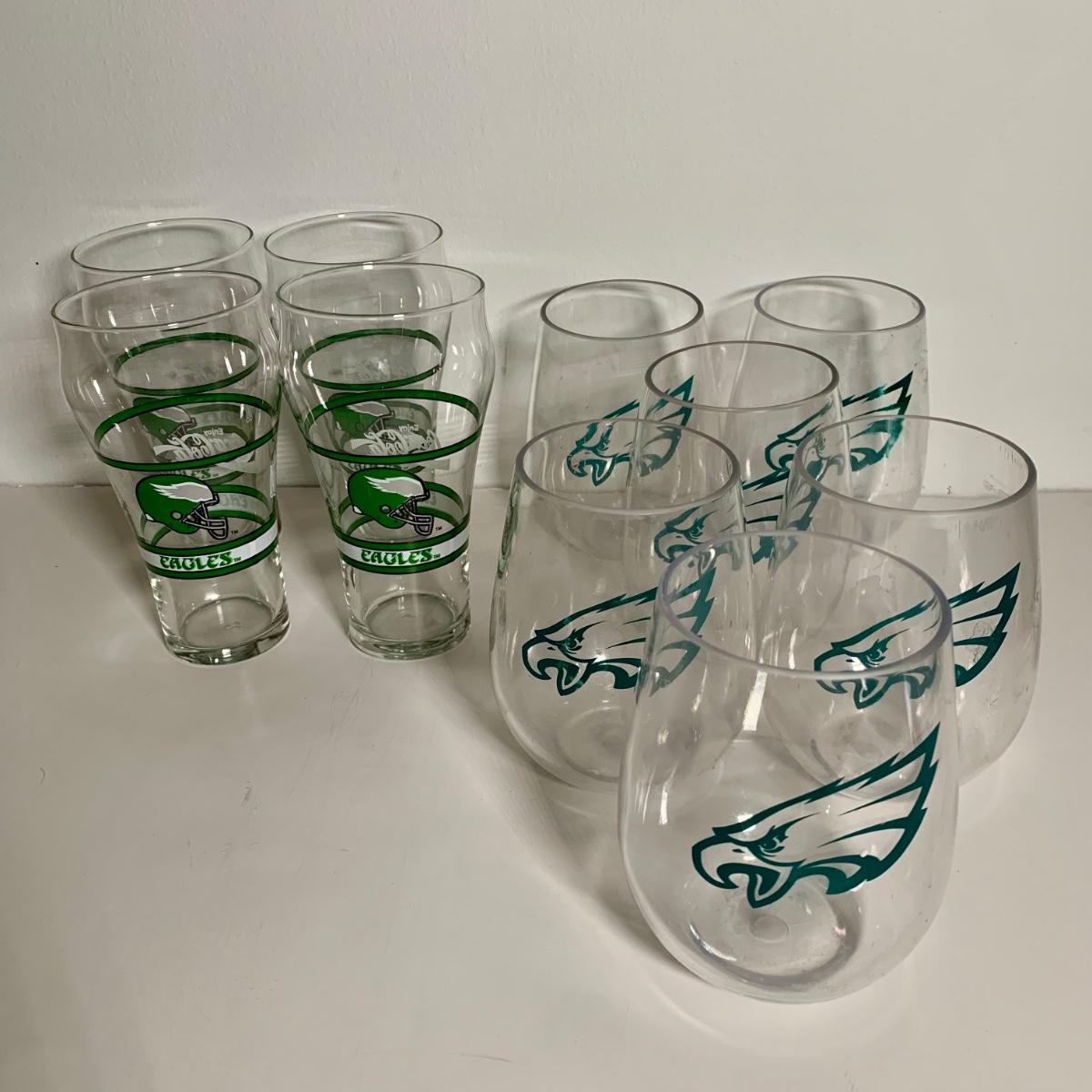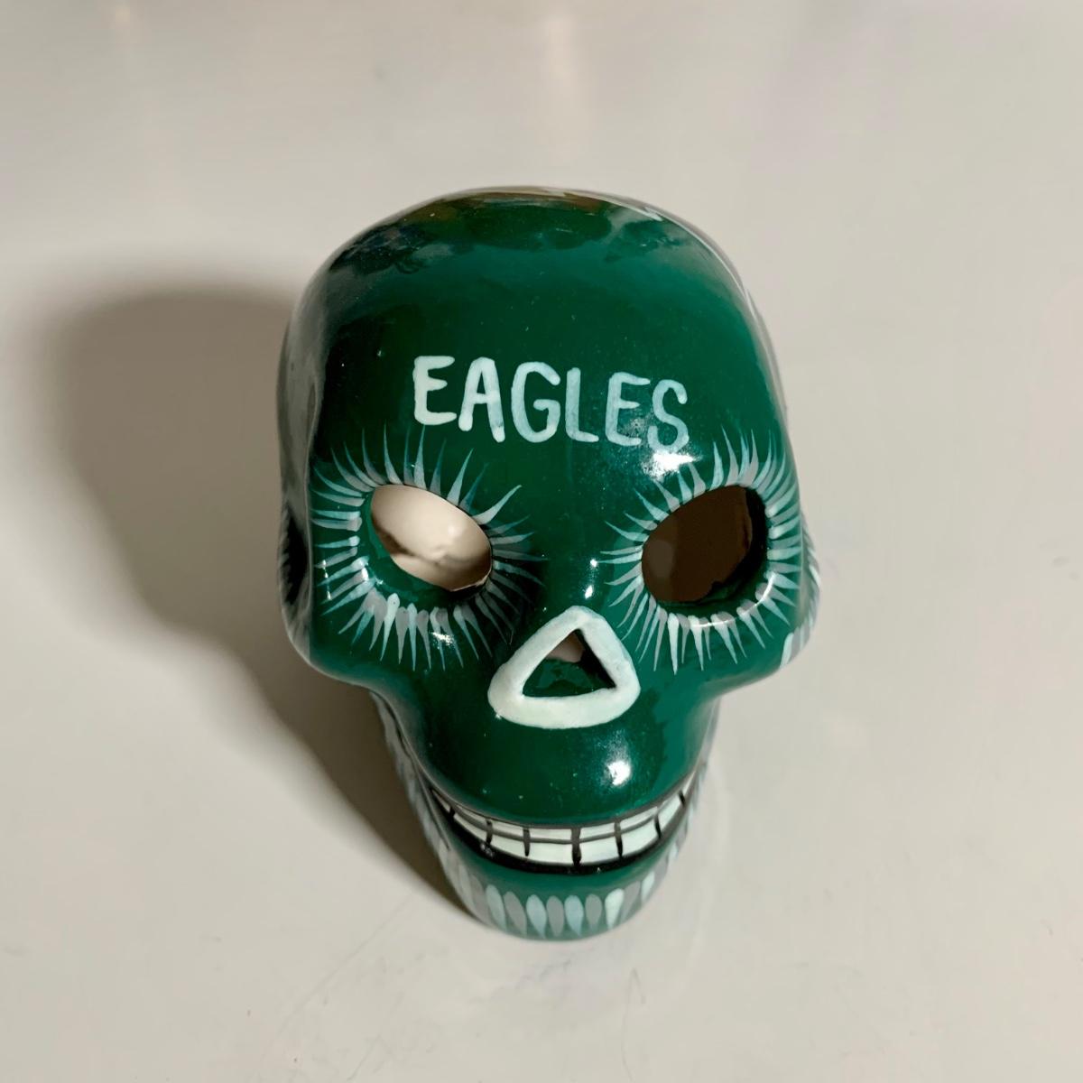 LOT 38 L: NFL Philadelphia Eagles Collection: Glass & Plastic Drinking Glasses, Hand Painted Sugar Skull, Glitter Lamp, & More