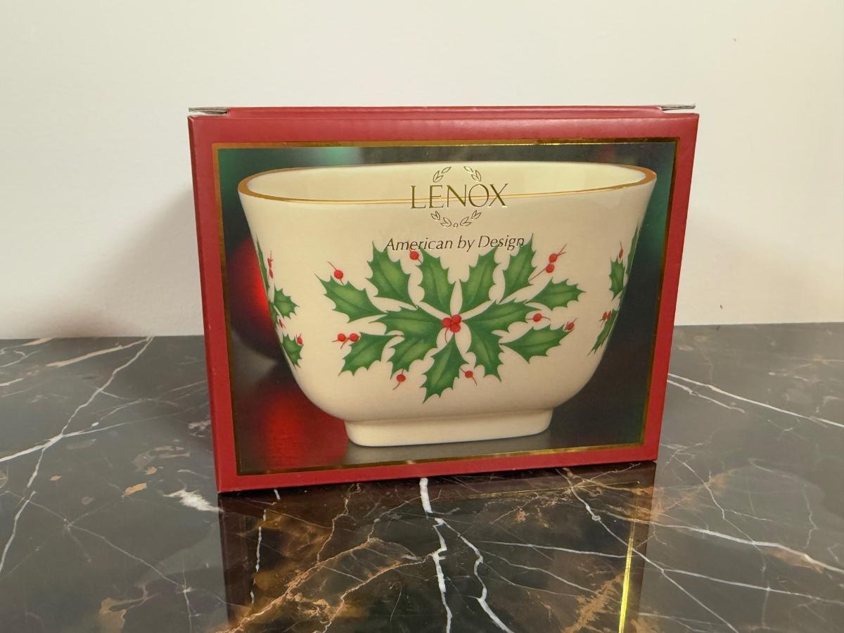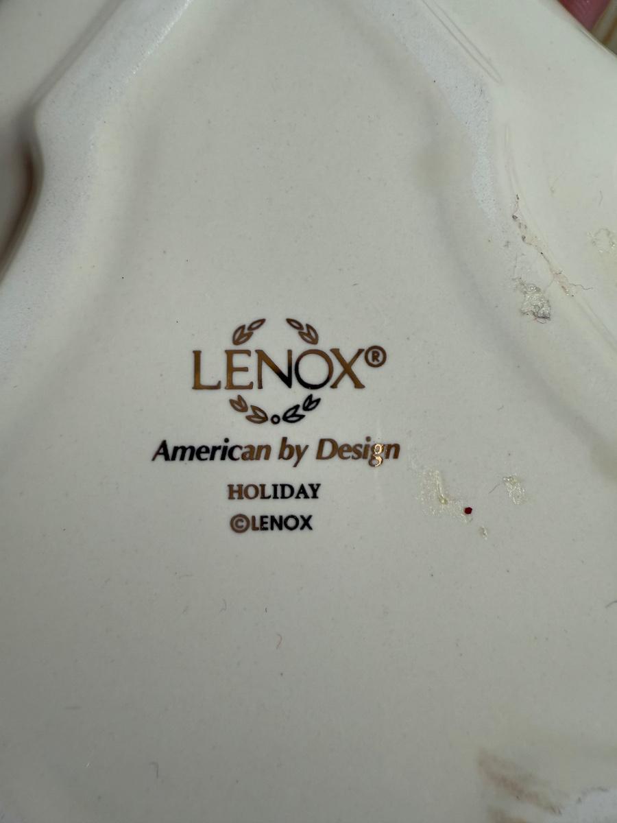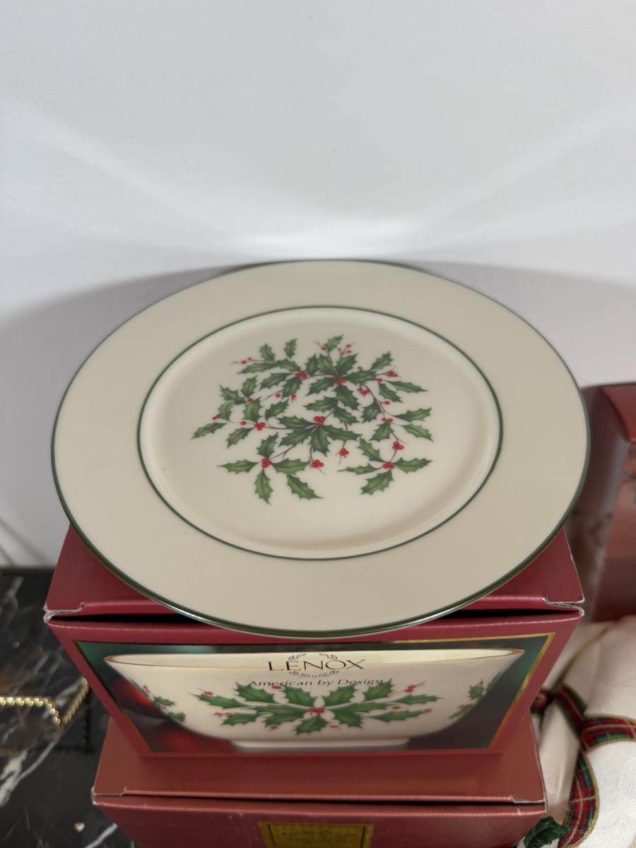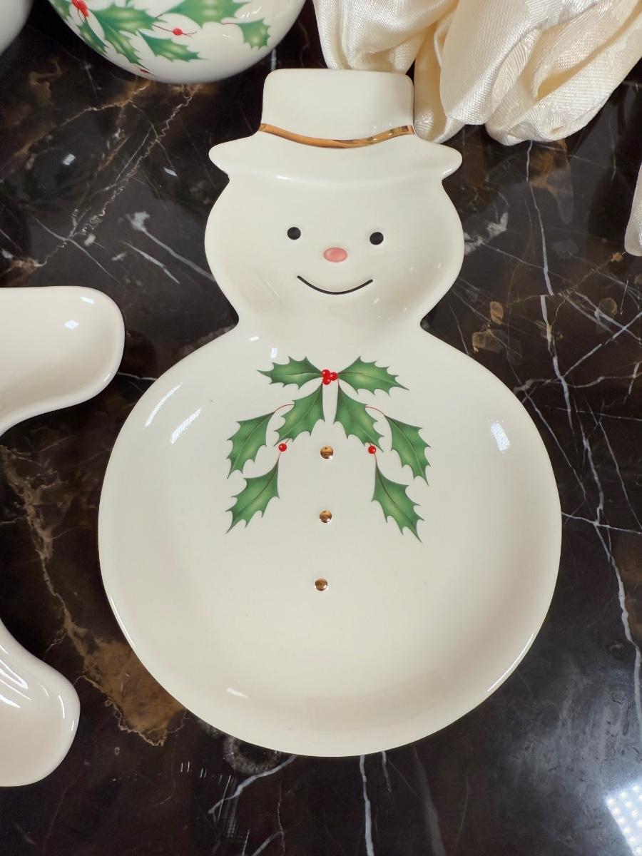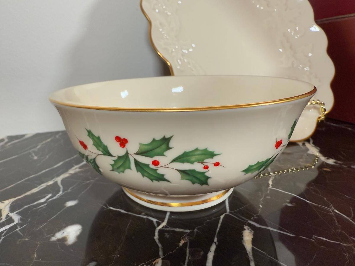 LOT 53D: Lenox Holiday Hostess Dish, Special Plate, Say it With Silk Cups, Holly Bowls & Shaped Treat Trays
