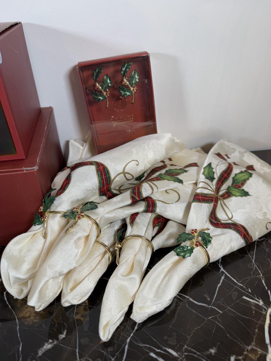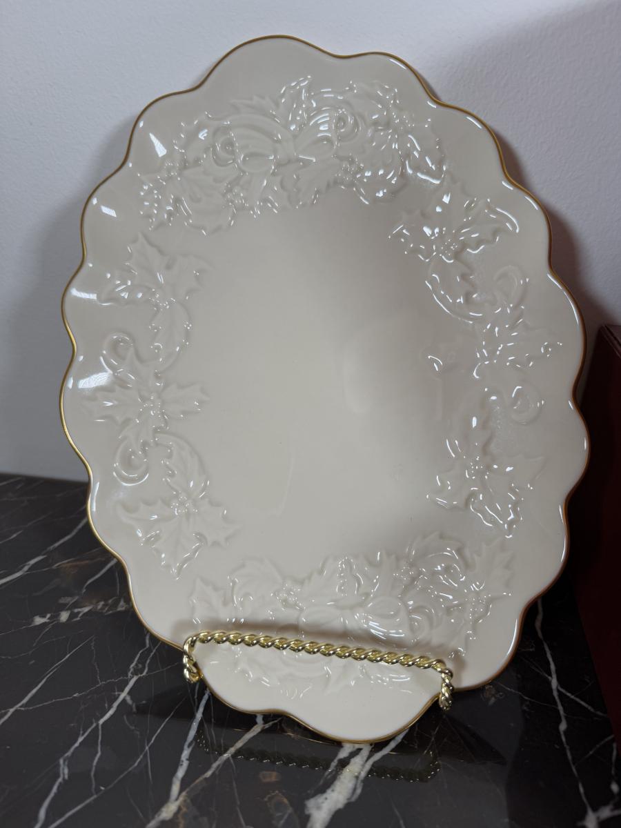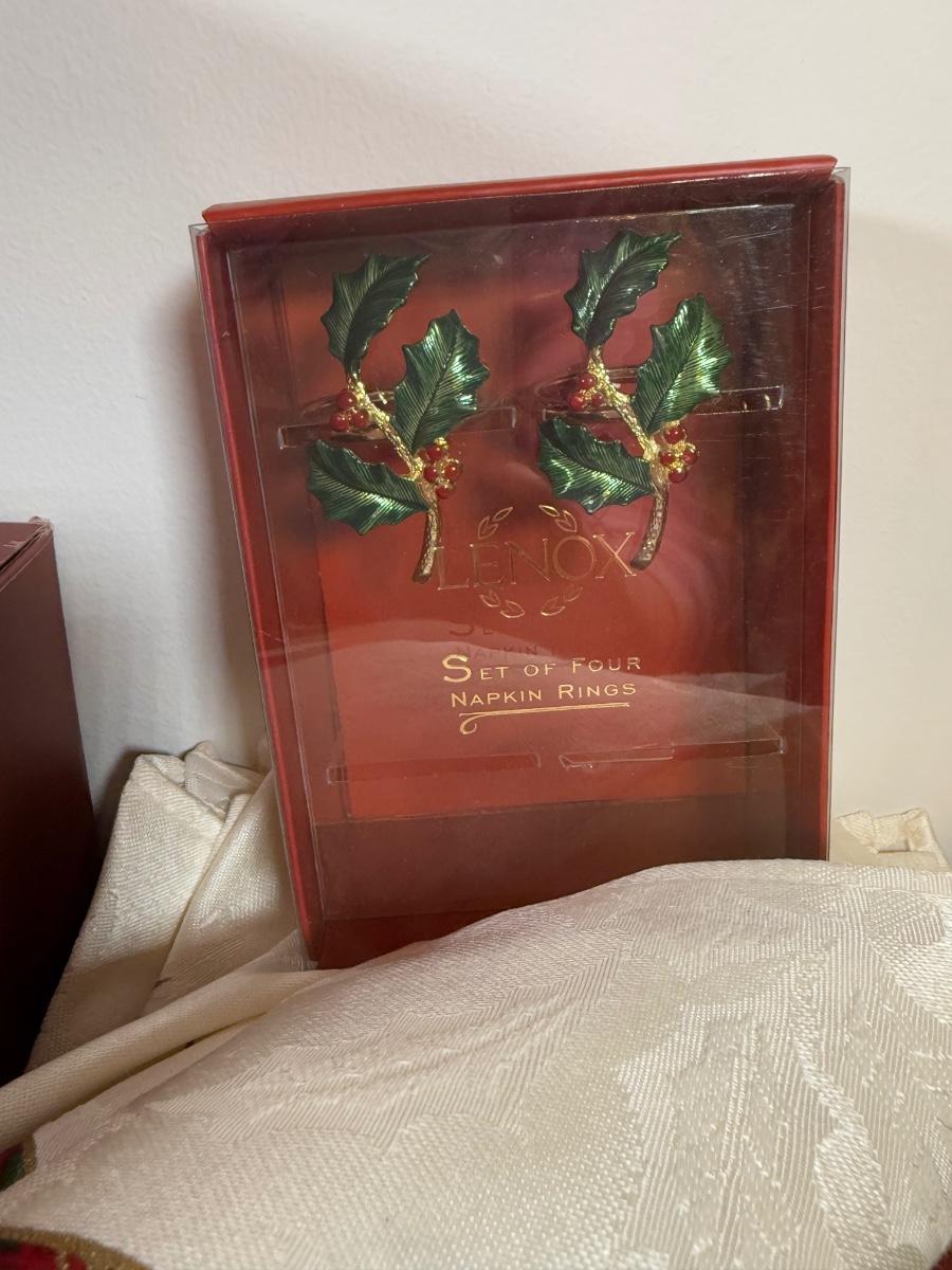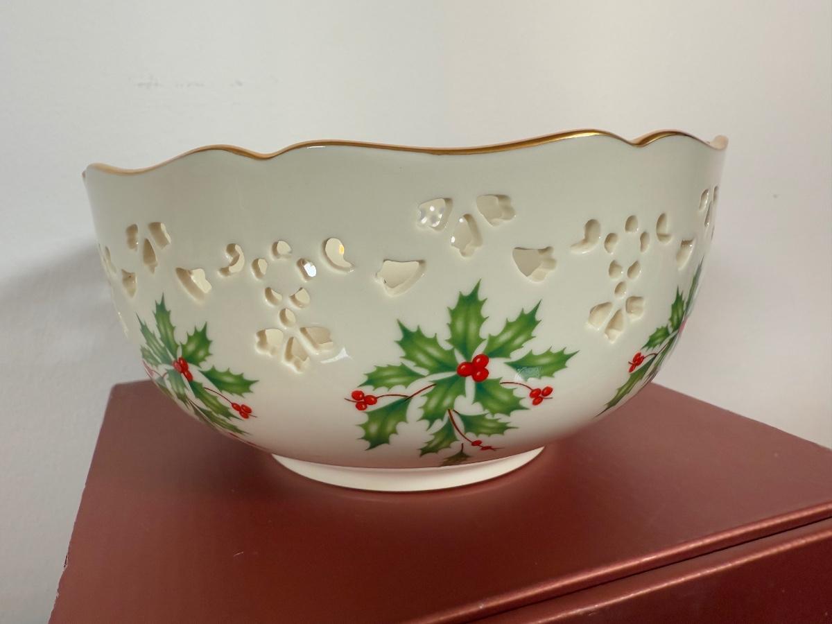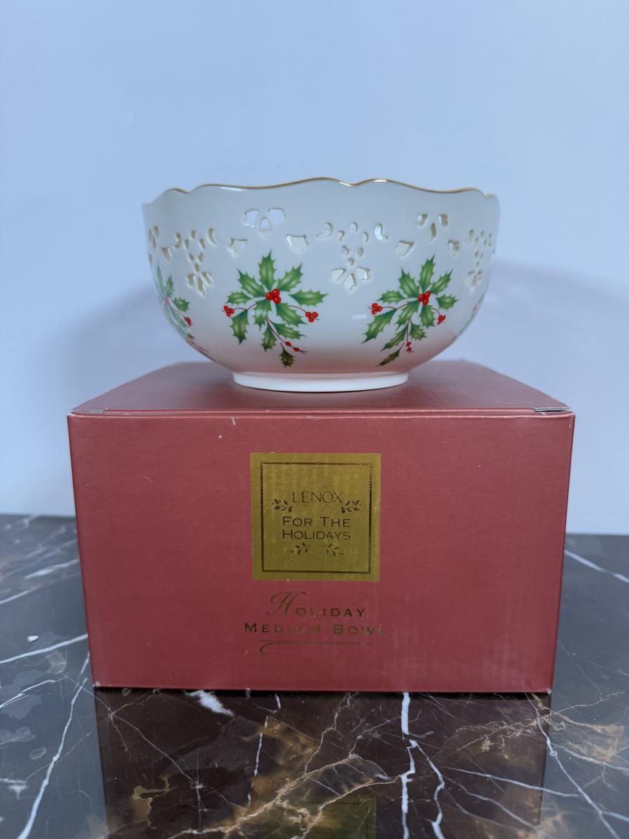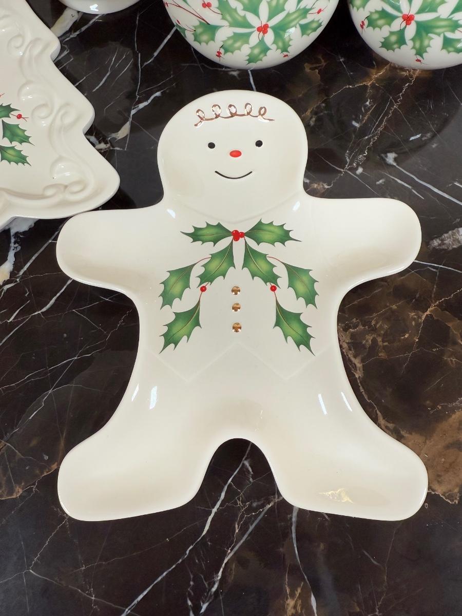 LOT 53D: Lenox Holiday Hostess Dish, Special Plate, Say it With Silk Cups, Holly Bowls & Shaped Treat Trays