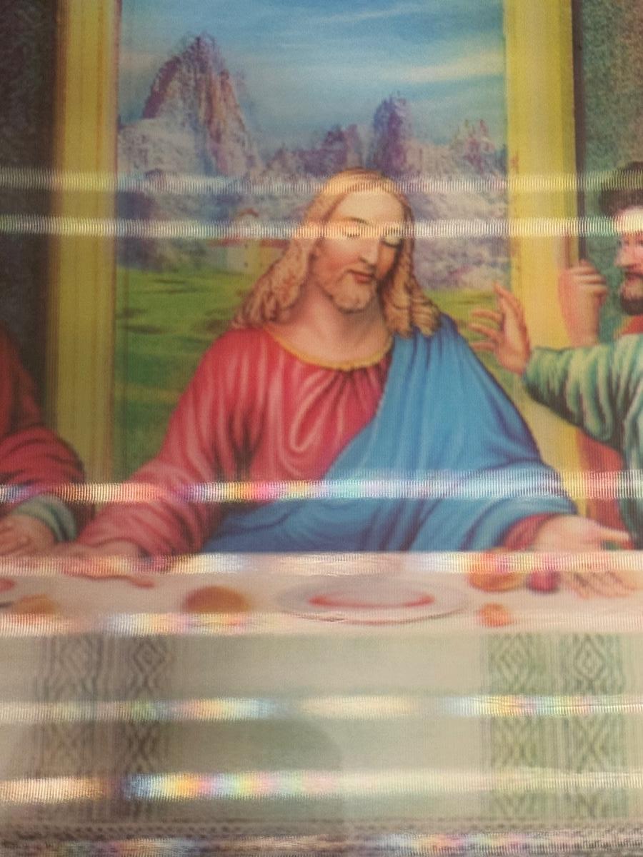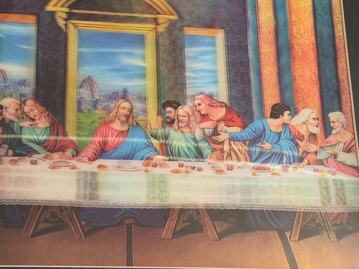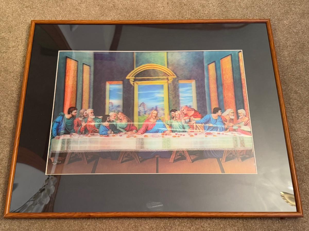 LOT 68F: Oleg Cassini Crystal Cross, Holographic Framed Last Supper & Glass Lit Church Decor