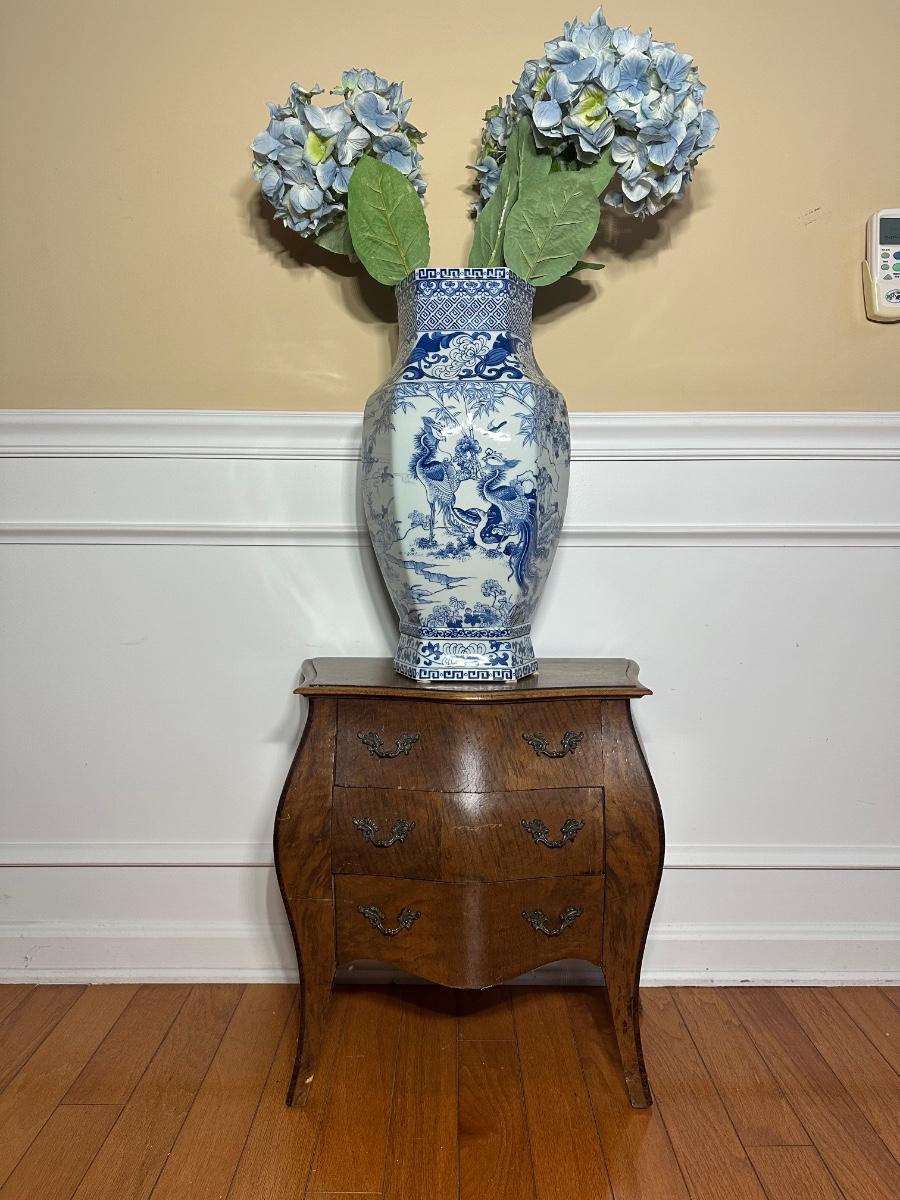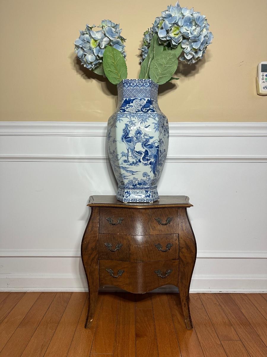 LOT 218: Vintage 3 Drawer Dresser w/ Vase & Faux Flowers