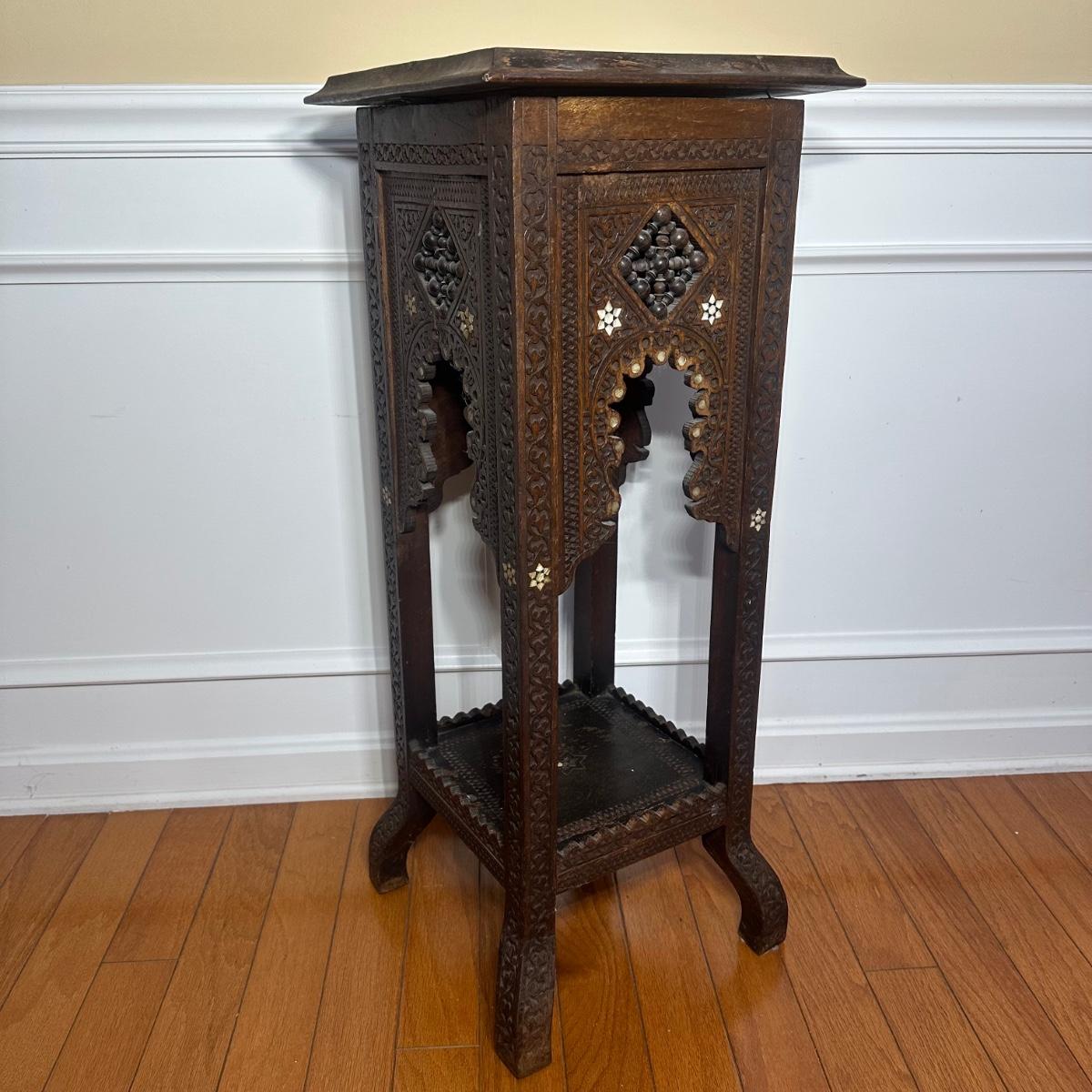 LOT Vintage Wooden Inlaid Pedestal