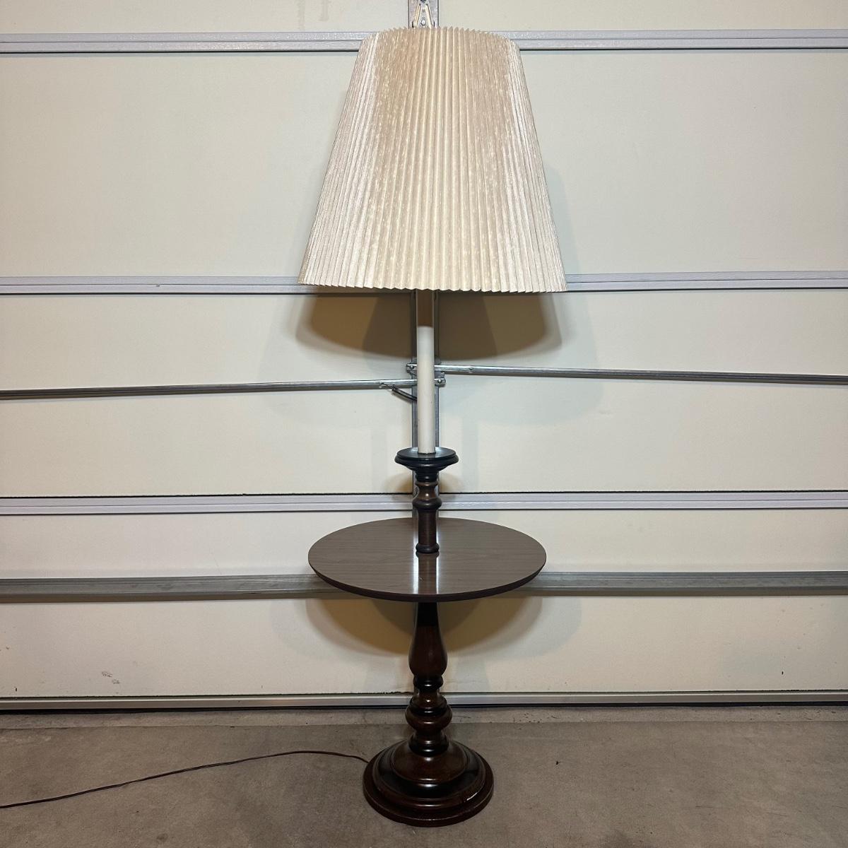 LOT 242: Vintage Wooden Side Table Floor Lamp