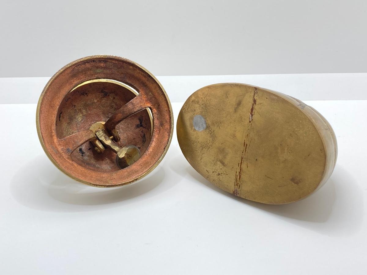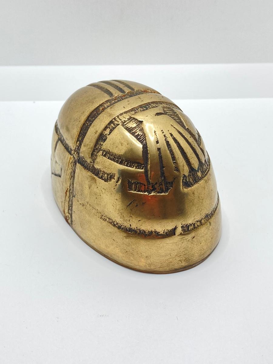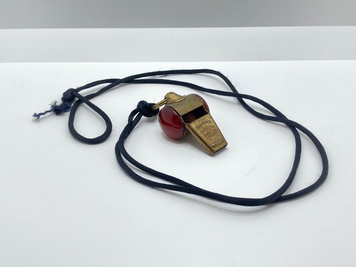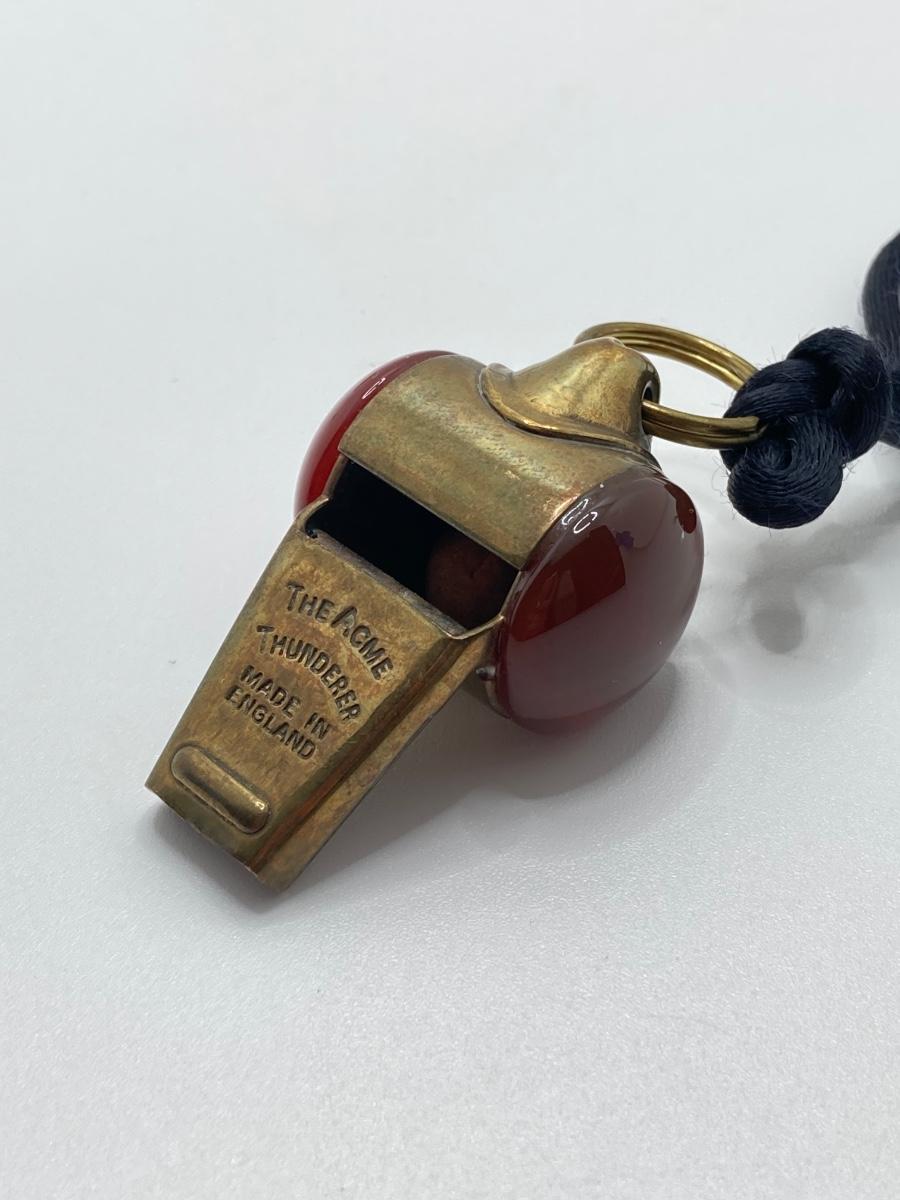 LOT 251: Vintage Brass Collection - Scarab Paper Weight, Service Desk Bell and The Acme Thunderer Made in England Whistle