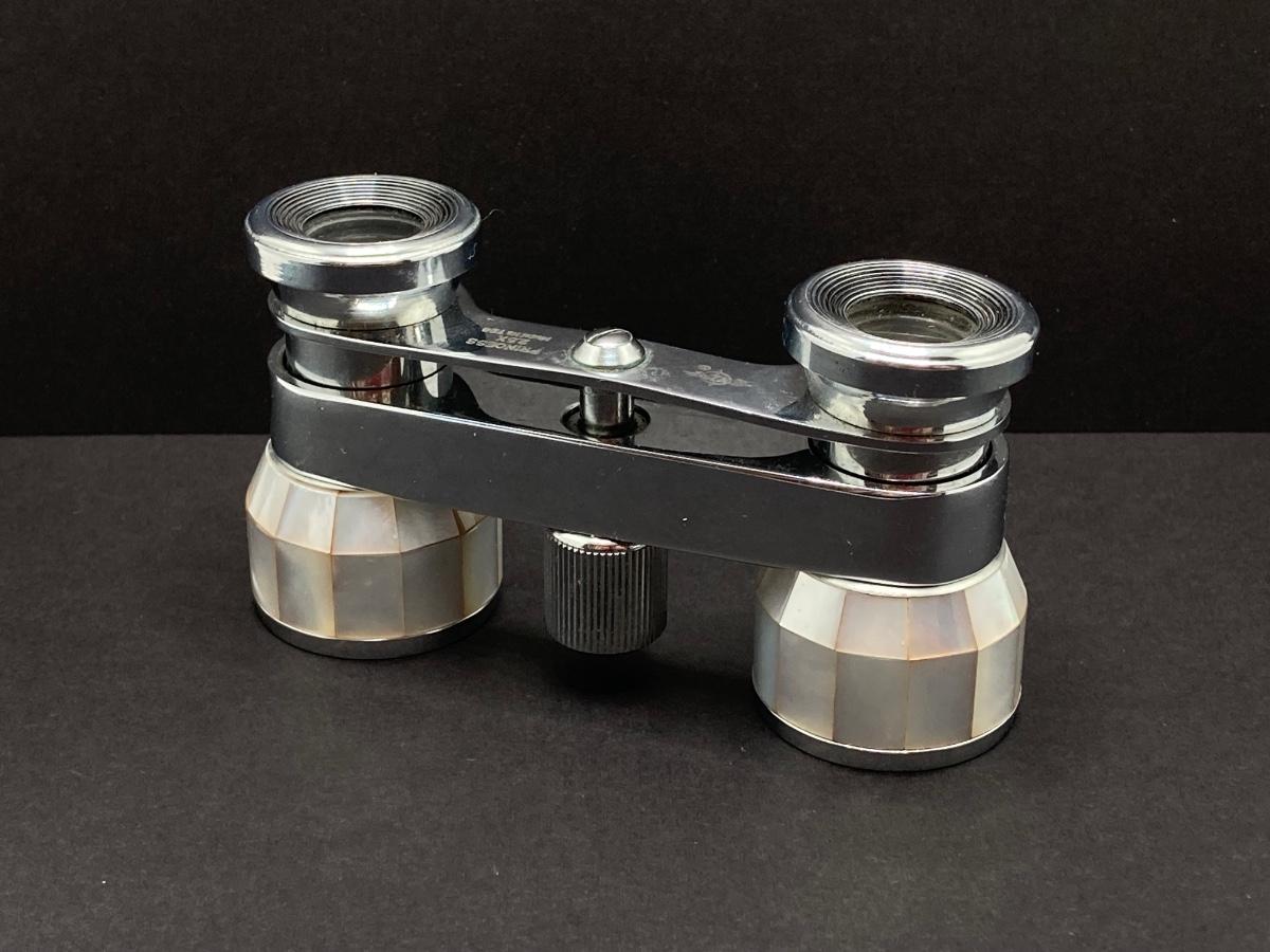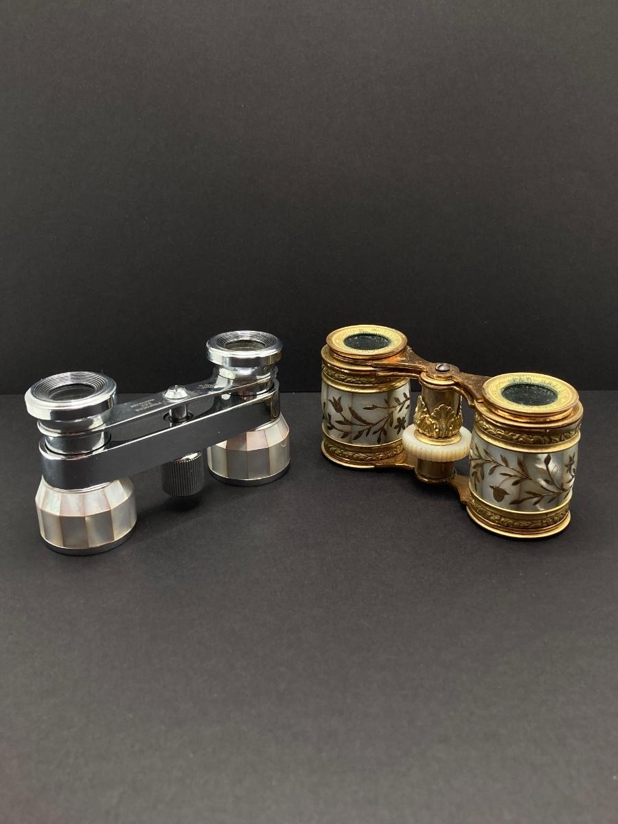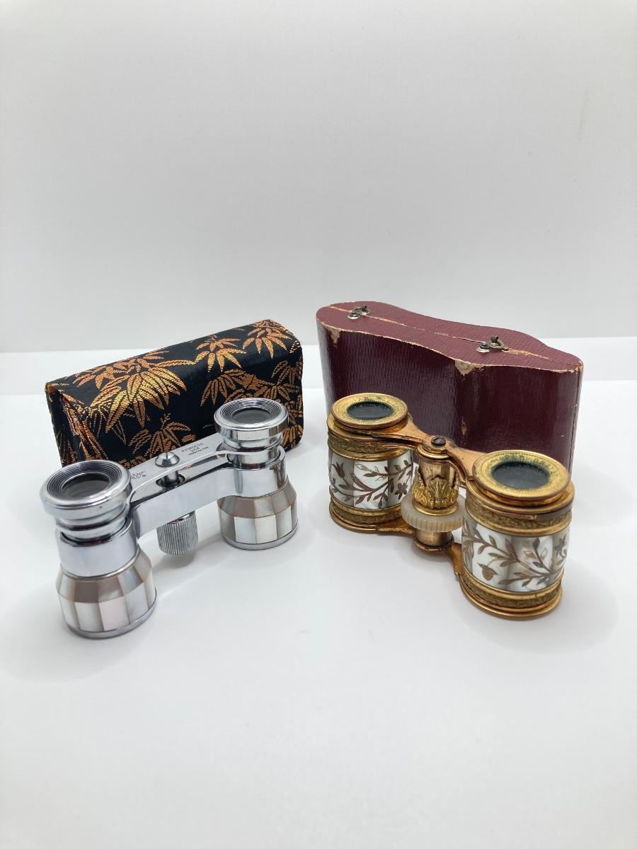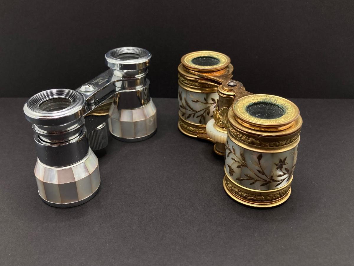 LOT 252: Pair of Stunning Mother of Pearl Opera Glasses with Cases - French Par Brevet Dinvention and Swift Princess 25X Model No 726